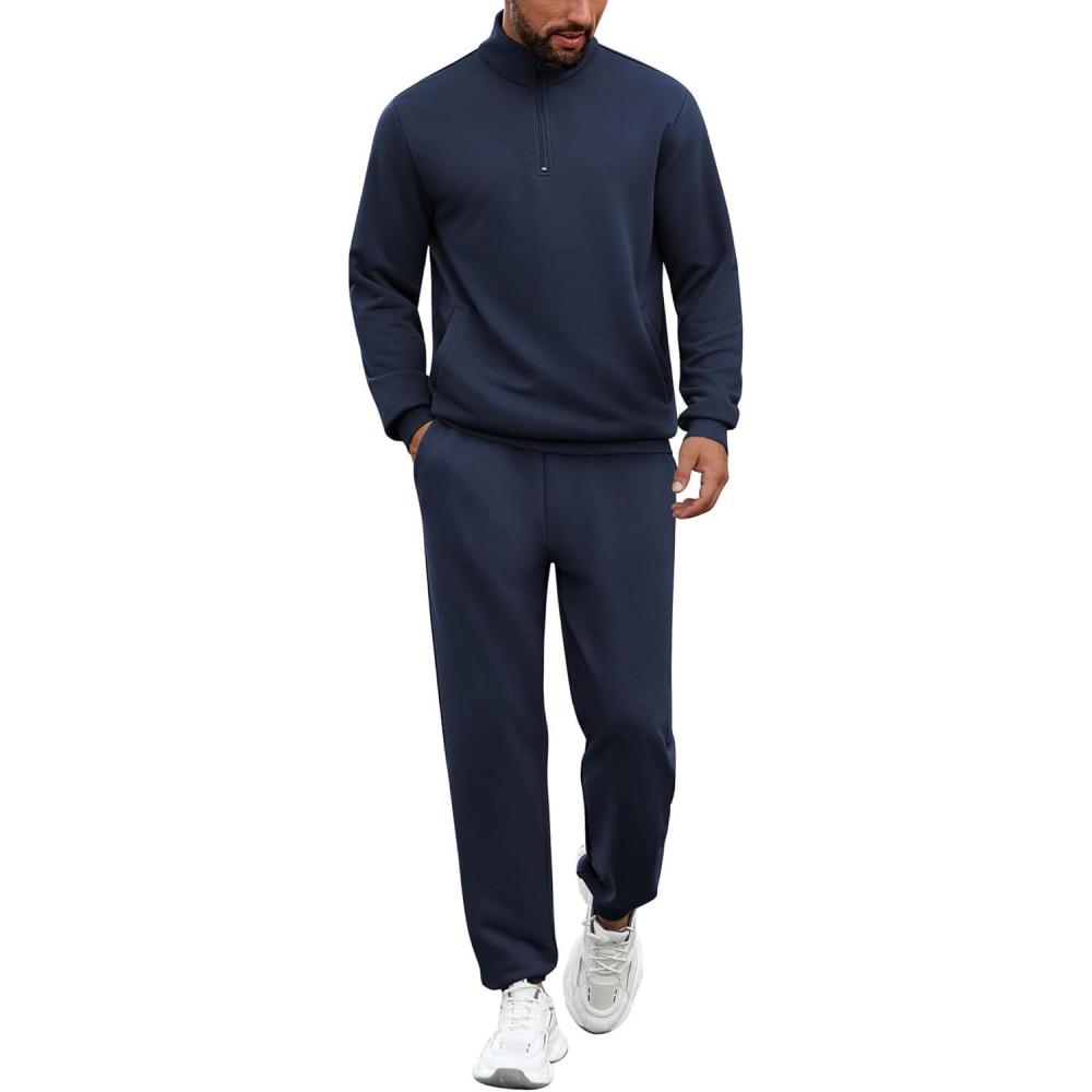 COOFANDY 2 Piece Set for Men Casual 1/4 Zip Track Suits Set Long Sleeve Quarter Pullover Jogging Suits 2025 Fashion Outfits(Navy Blue)