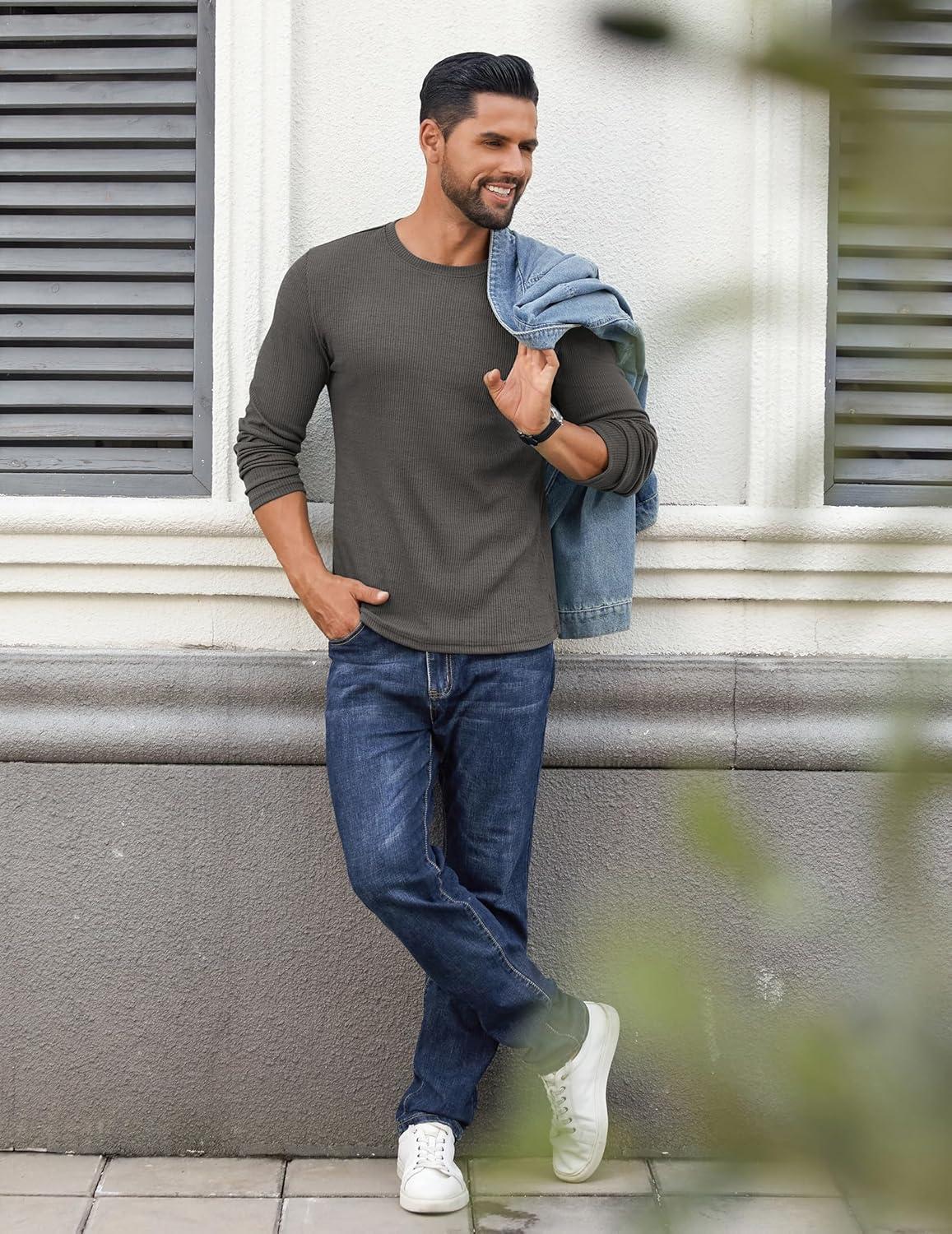 COOFANDY Crewneck Sweaters for Men Slim Fit Long Sleeve Pullover Sweater Ribbed Knitted Lightweight Tops(Dark Grey)