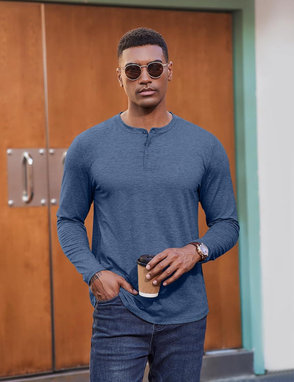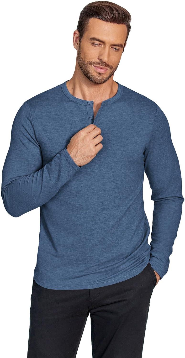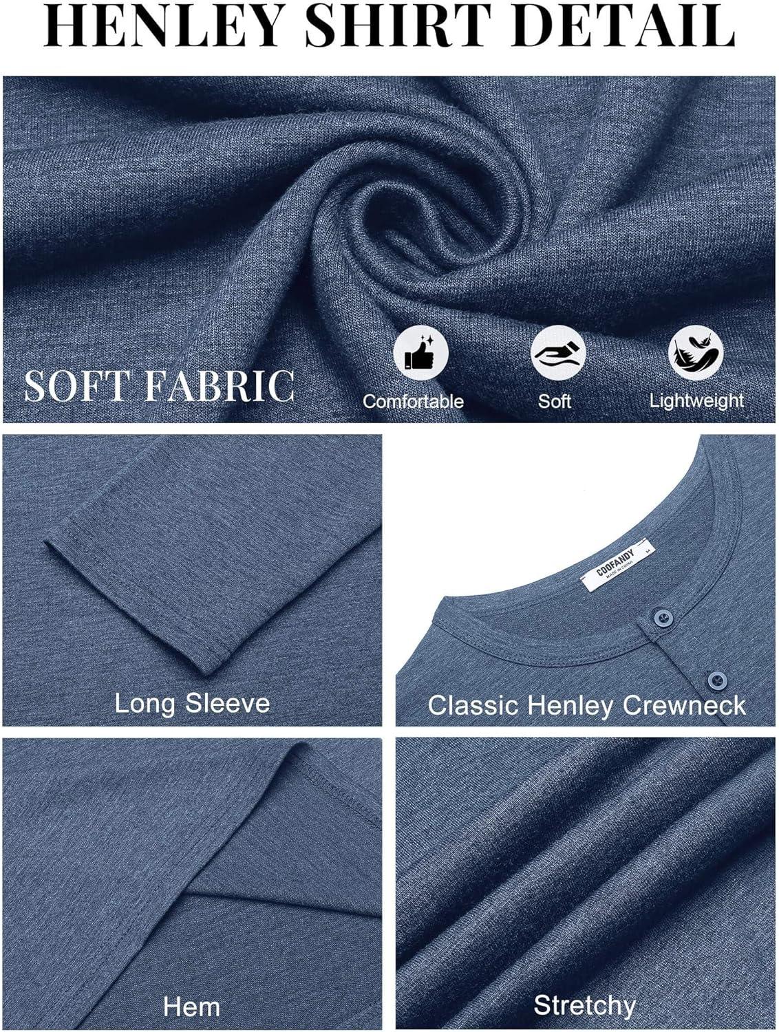 COOFANDY Henley Shirts for Men Long Sleeve T Shirts Textured Casual Stretch Fashion Pullover Lightweight Fall Tops(Navy)
