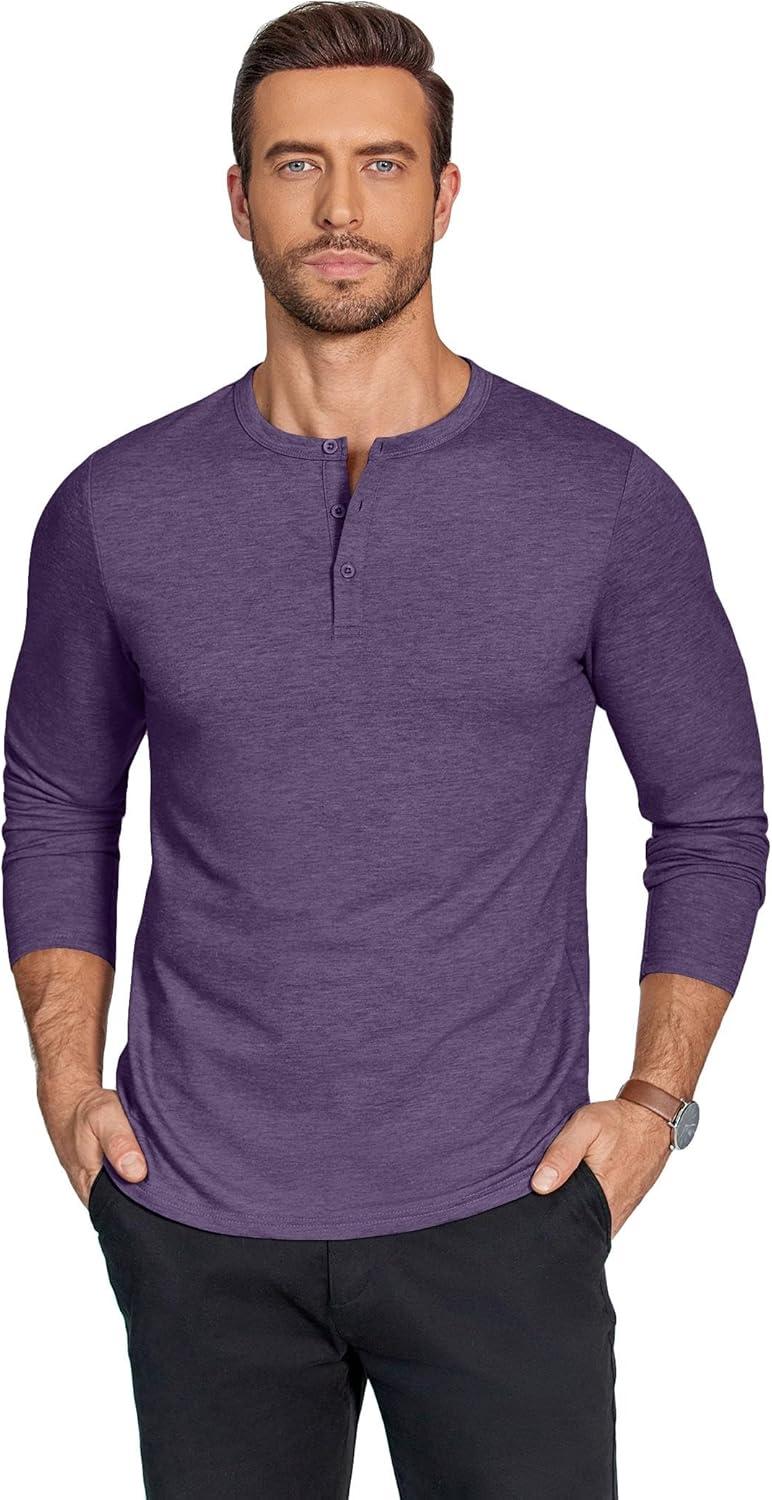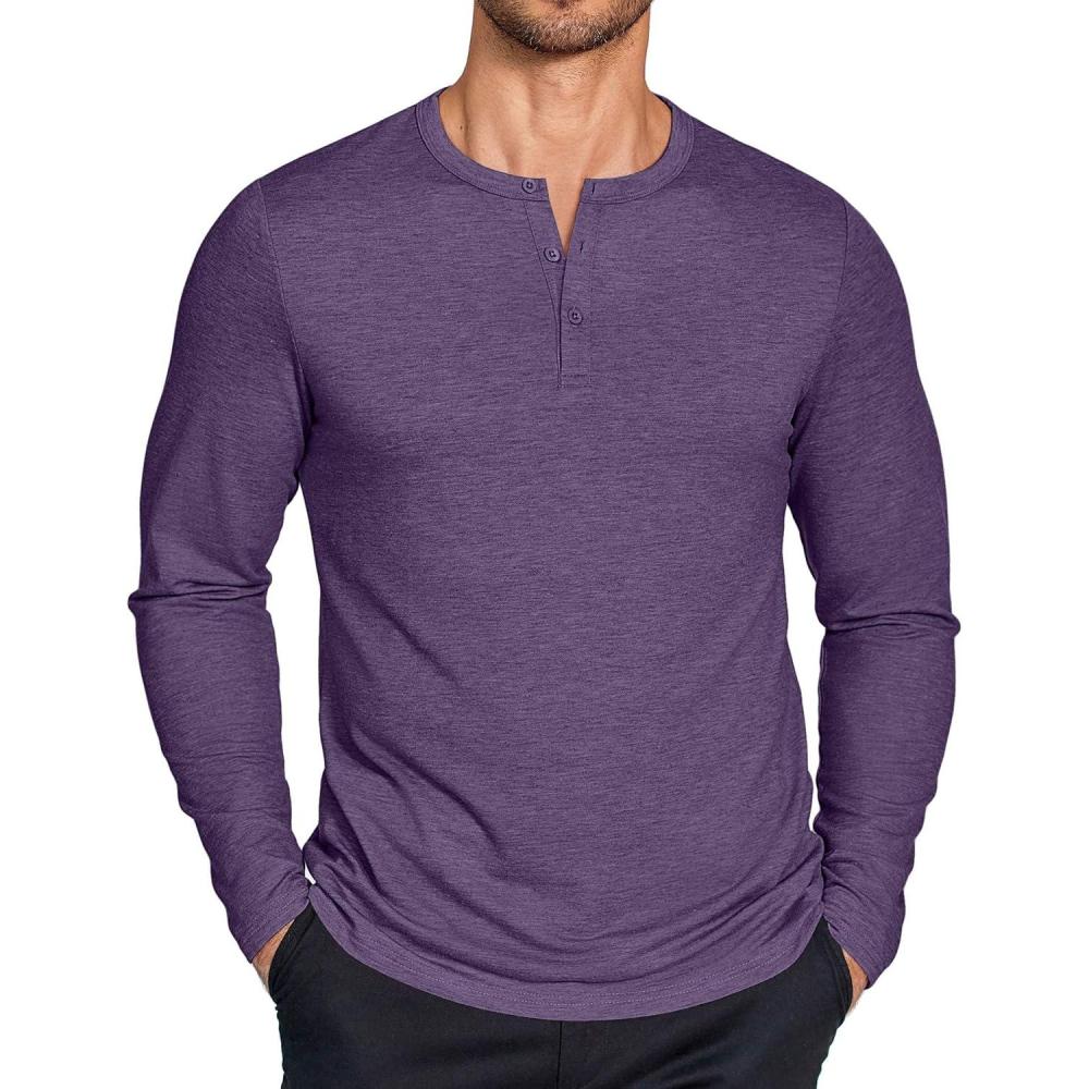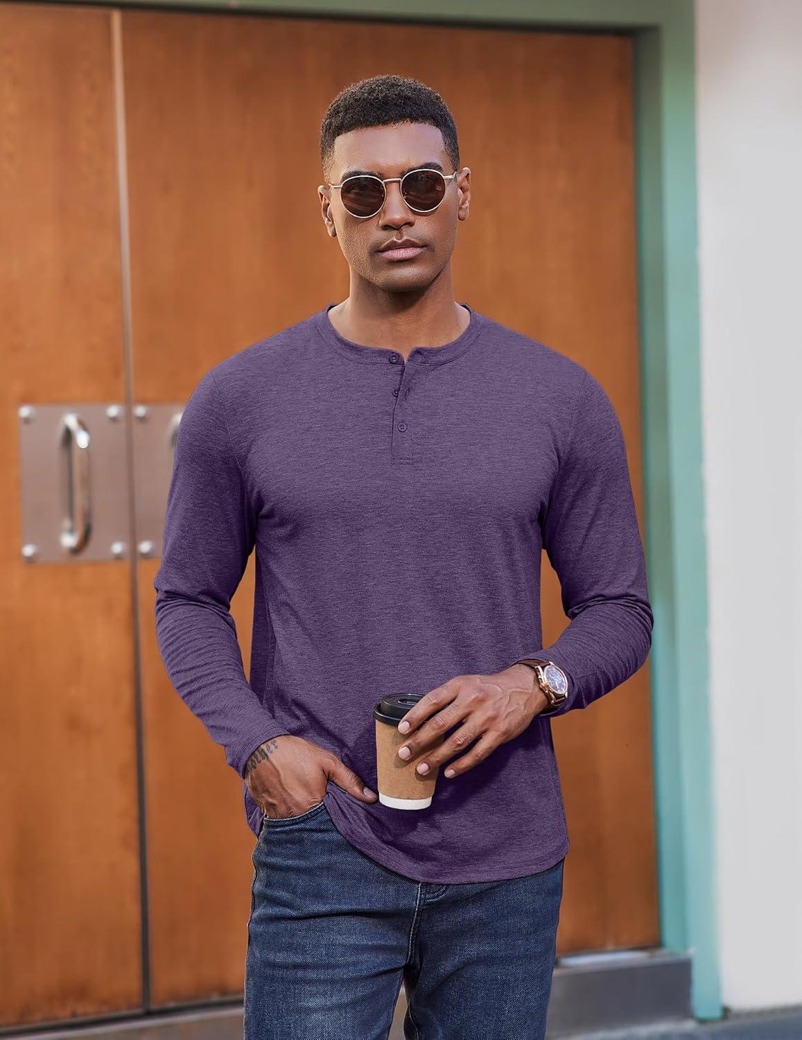 COOFANDY Henley Shirts for Men Long Sleeve T Shirts Textured Casual Stretch Fashion Pullover Lightweight Fall Tops(Purple)
