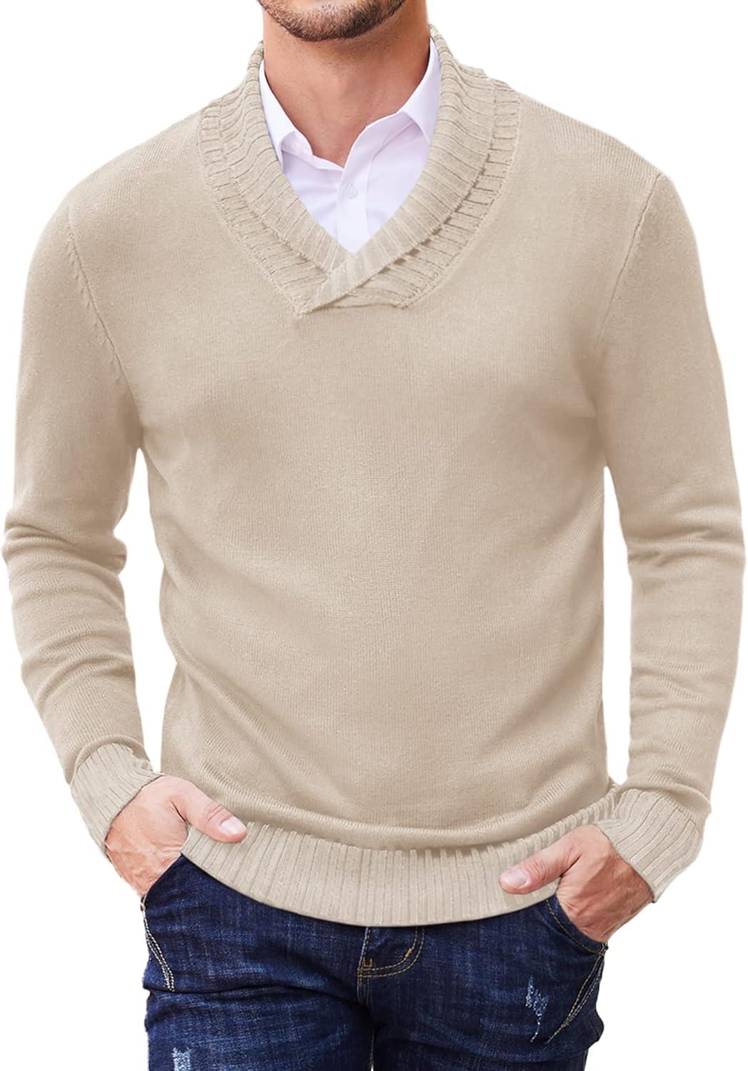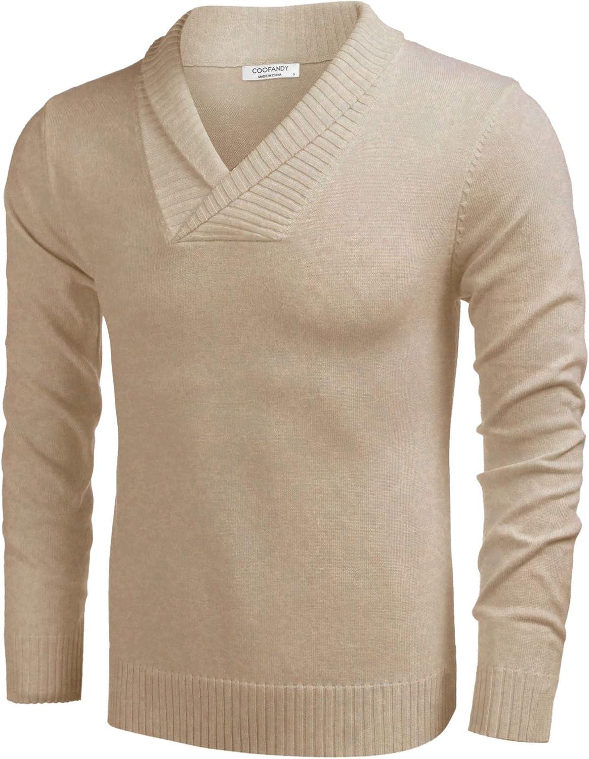 Coofandy Mens Ribbed Slim Fit Knitted Pullover Shawl Collar Sweater