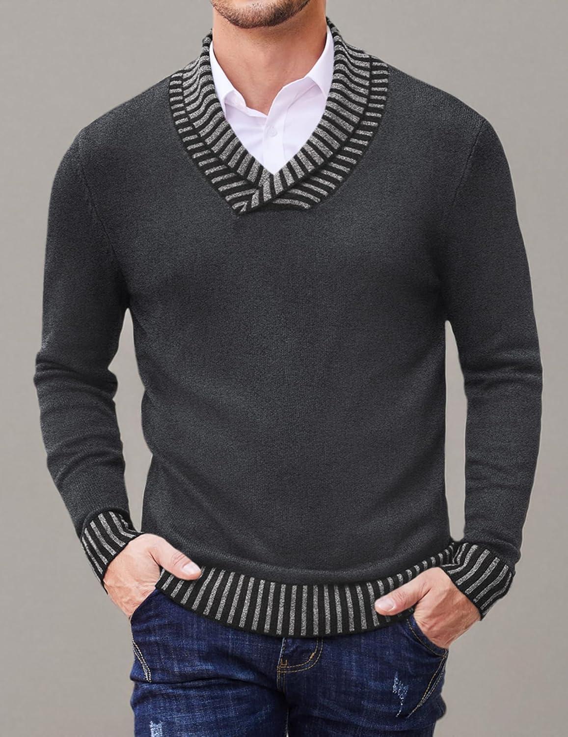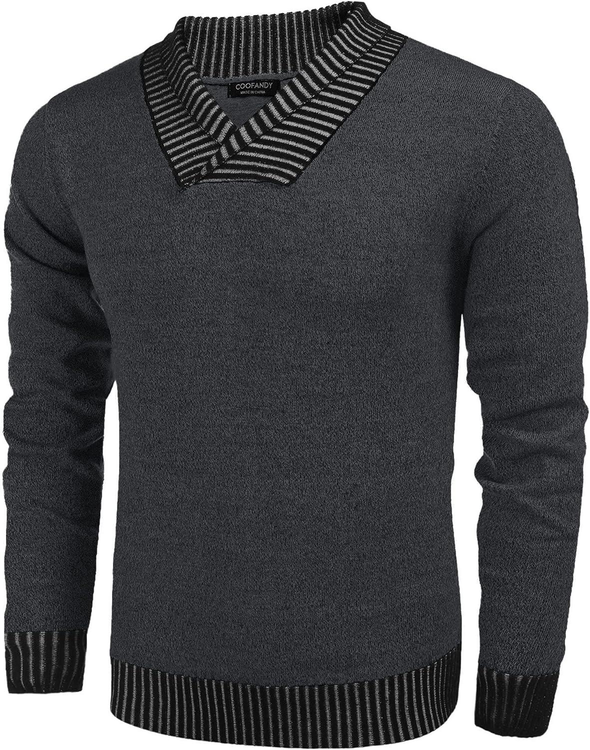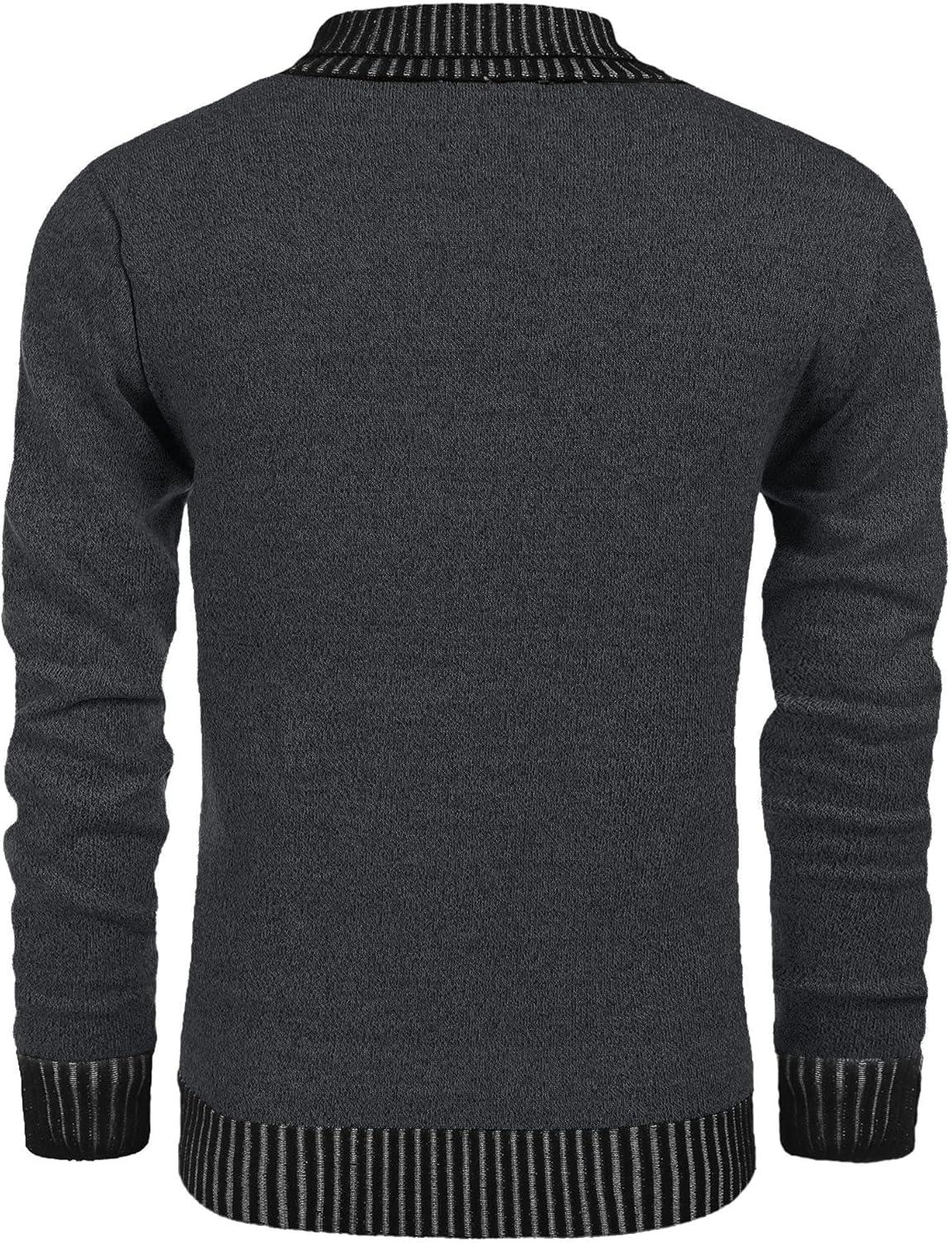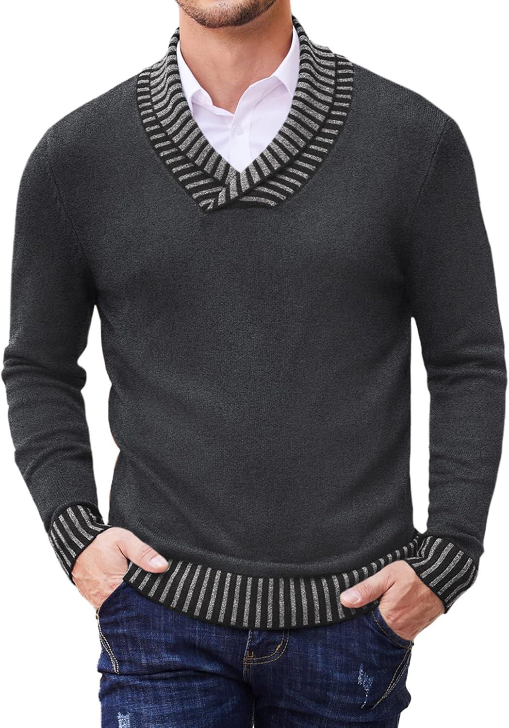 Coofandy Mens Ribbed Slim Fit Knitted Pullover Shawl Collar Sweater