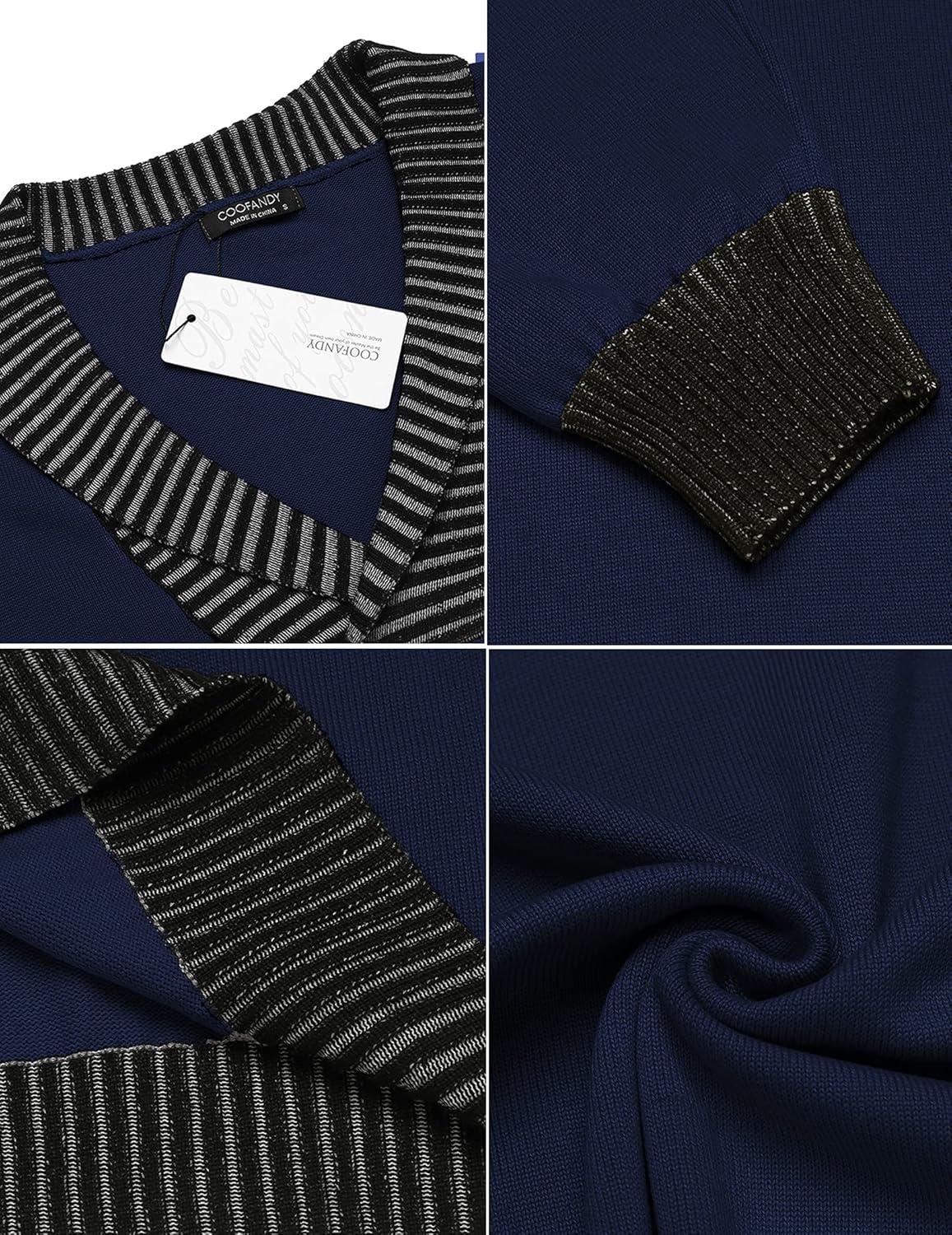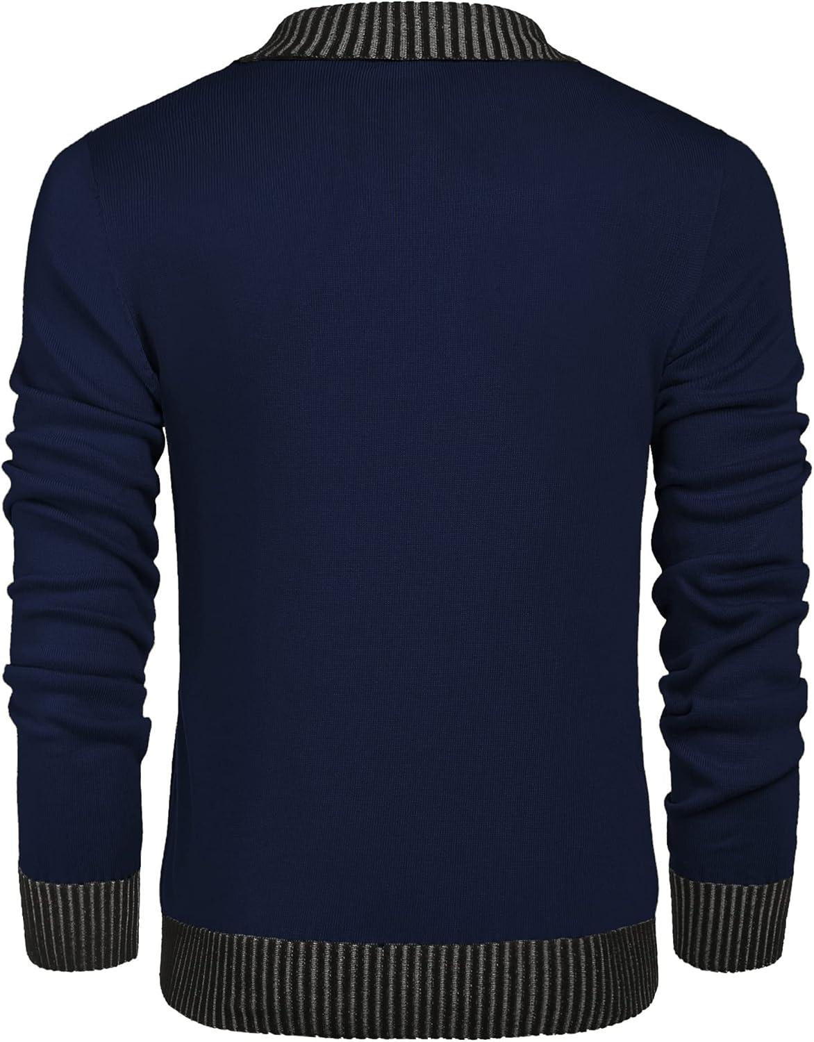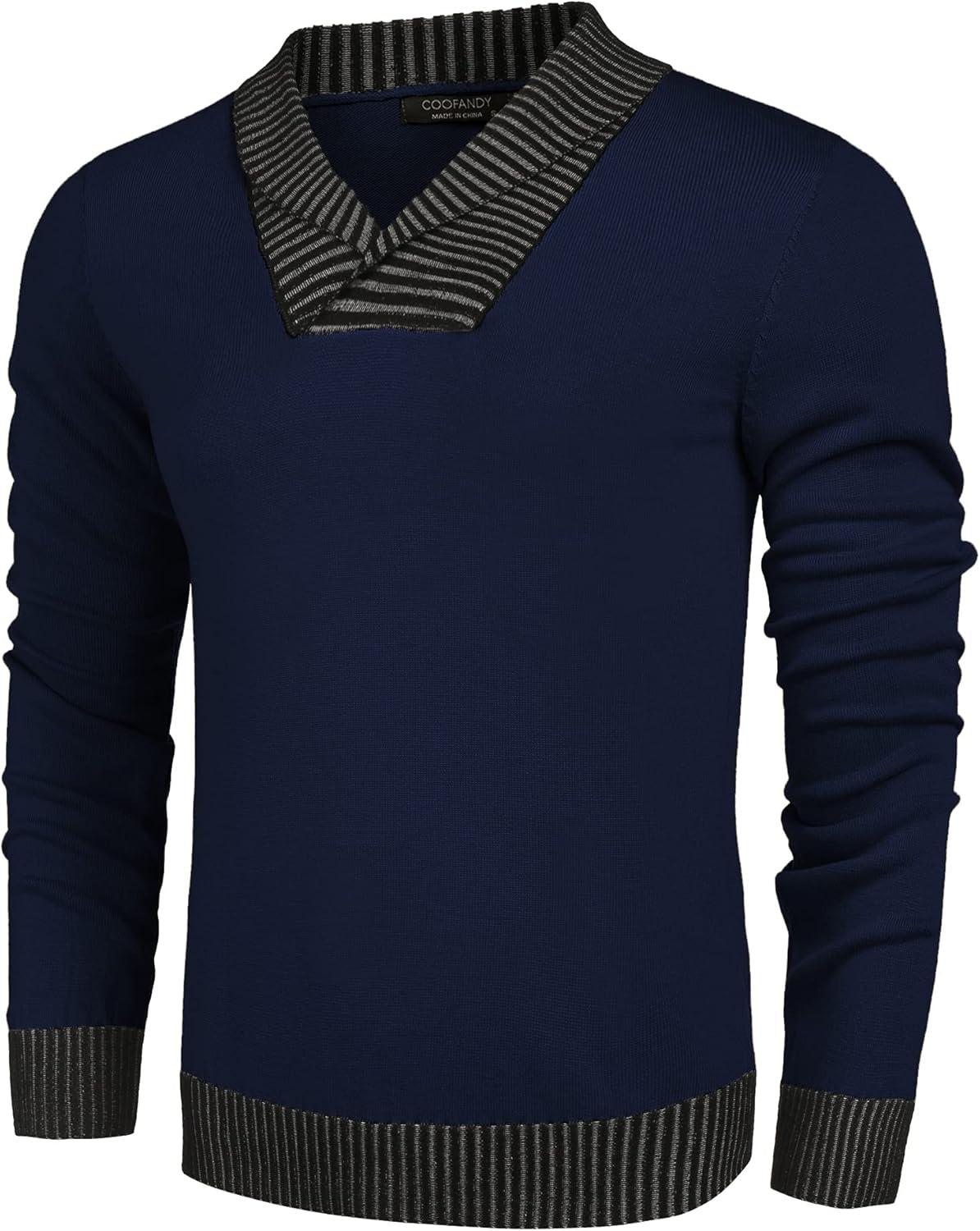 COOFANDY Men Casual Knitted Sweaters Shawl Collar Dress Sweater Long Sleeve V-Neck Pullover Tops(Navy Blue)