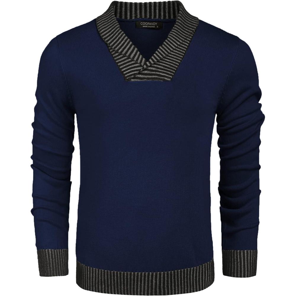 Coofandy Mens Ribbed Slim Fit Knitted Pullover Shawl Collar Sweater
