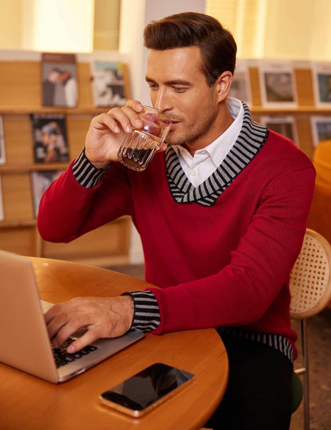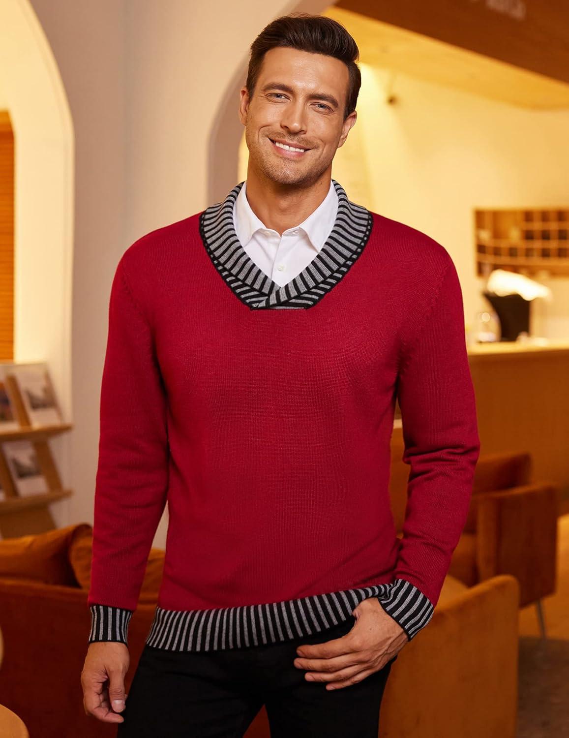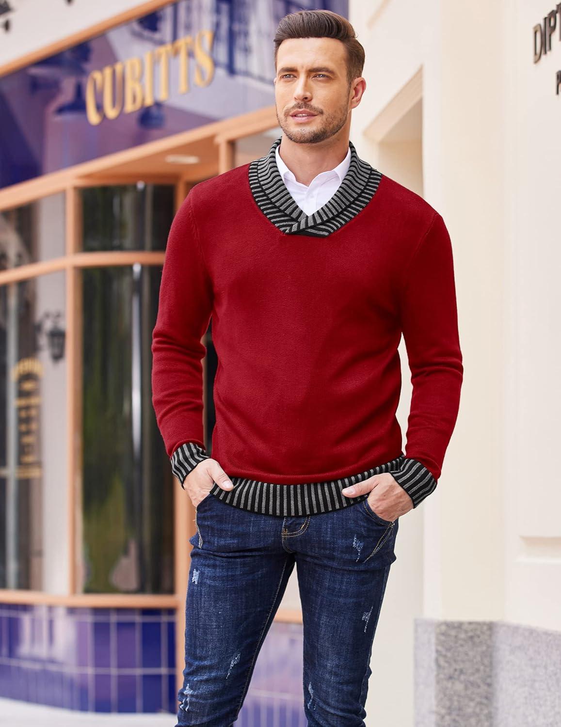 Save big on COOFANDY Men Casual Knitted Sweaters Shawl Collar Dress Sweater Long Sleeve V-Neck Pullover Tops(Red) and accessories during our BOGO sale. Buy one, get one 50% off!