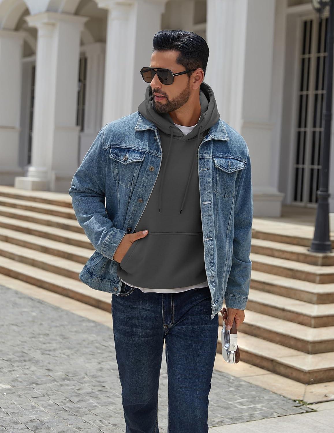COOFANDY Men Cotton Fleece Hooded Sweatshirt Casual Long Sleeve Hoodies Pullover Fashion Drawstring Hoodie with Kanga Pocket(Dark Gray)