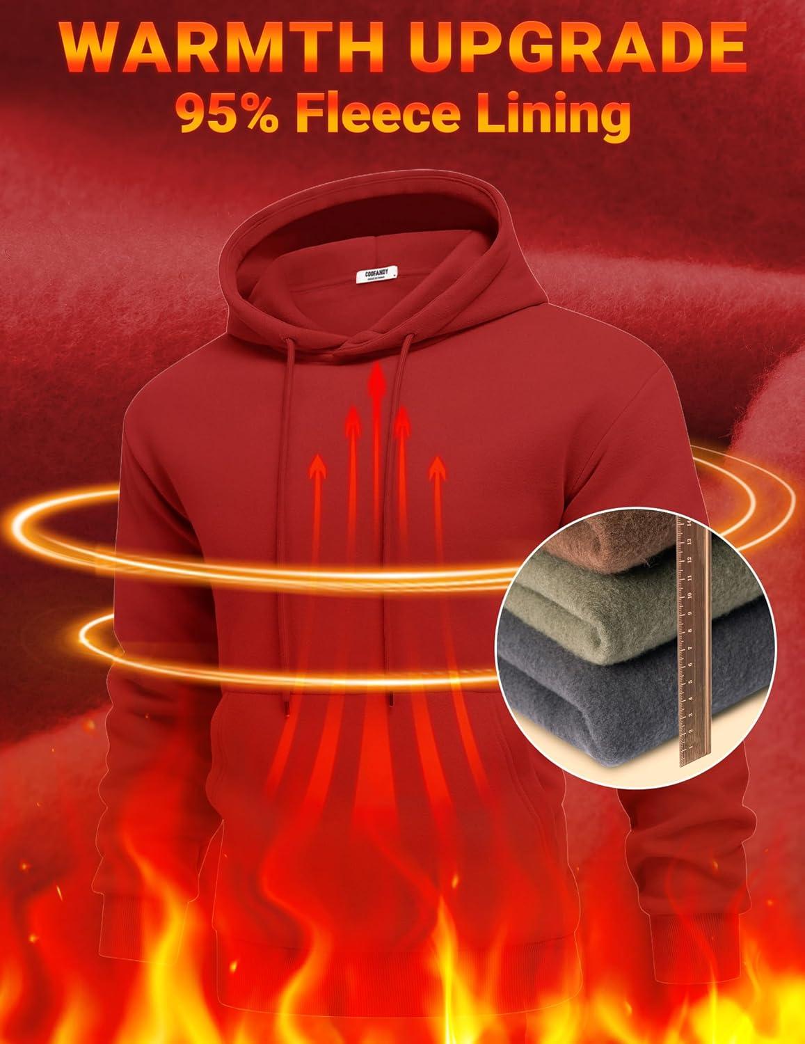 COOFANDY Men Cotton Fleece Hooded Sweatshirt Casual Long Sleeve Hoodies Pullover Fashion Drawstring Hoodie with Kanga Pocket(Red)