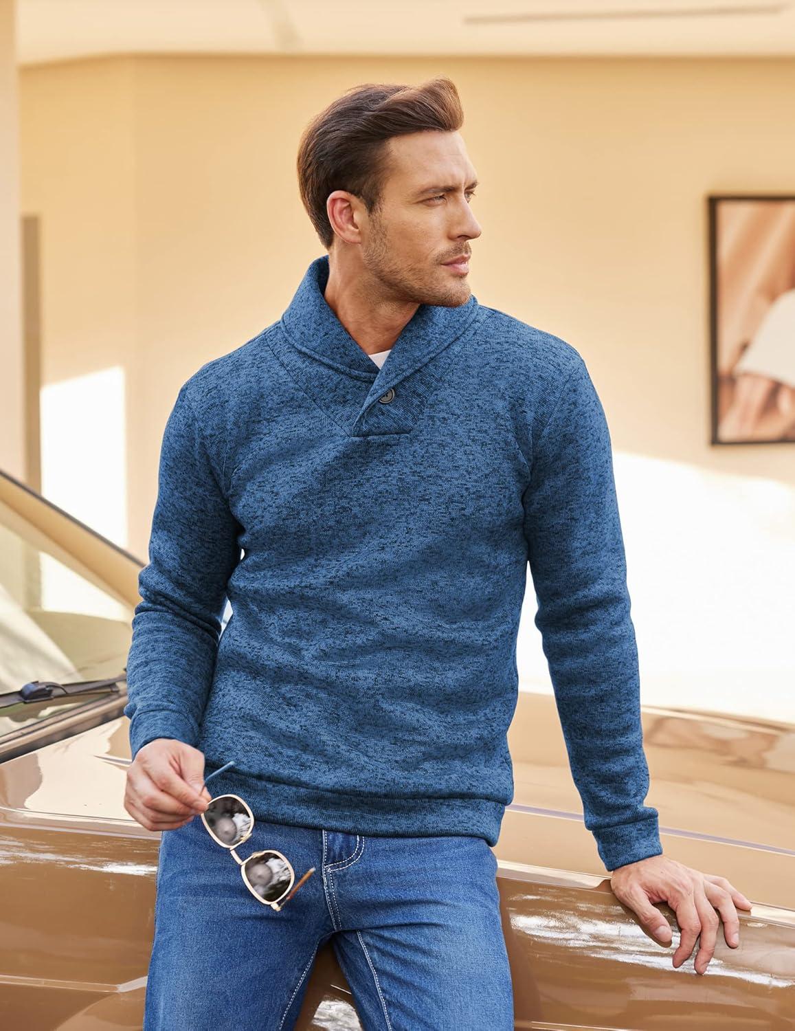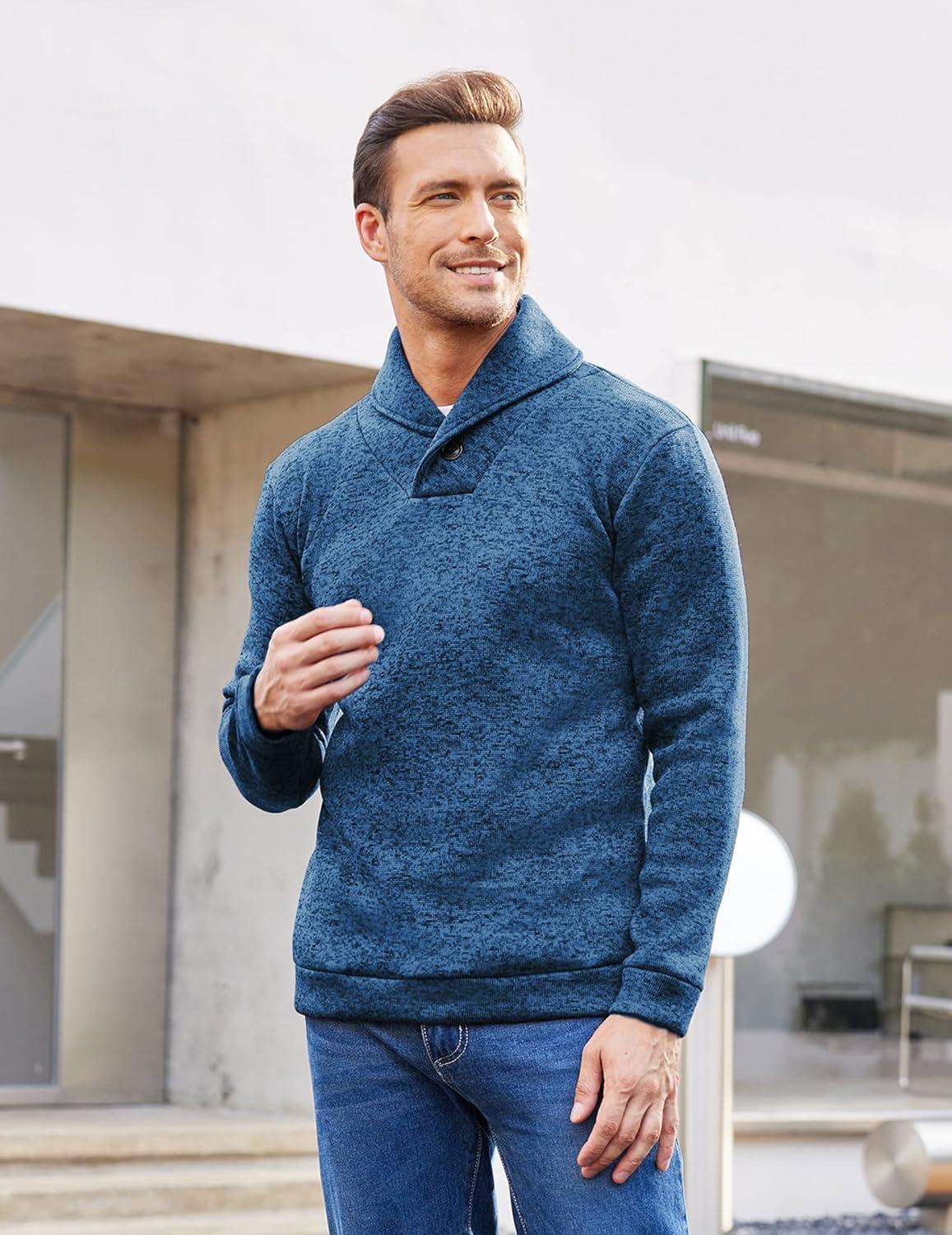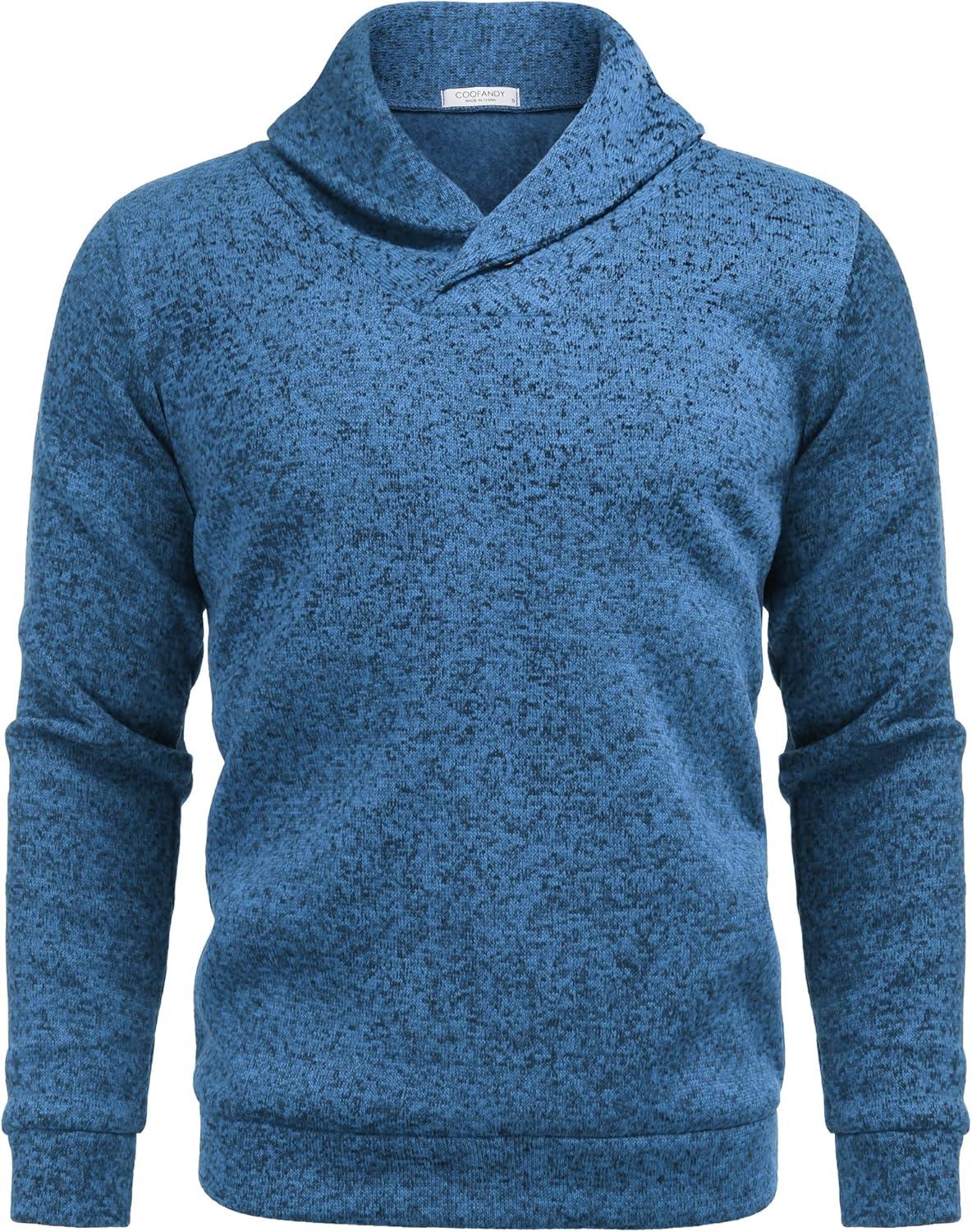 COOFANDY Men Dress Sweater Shawl Collar Sweatshirt Fashion Light Fleece Sweatshirt Dark Blue(Sky Blue)