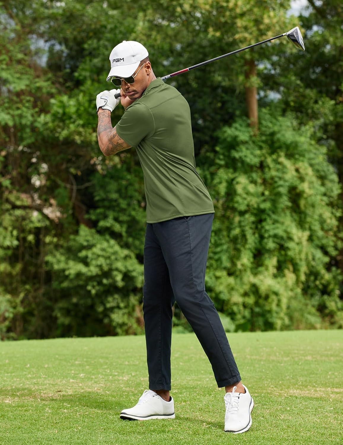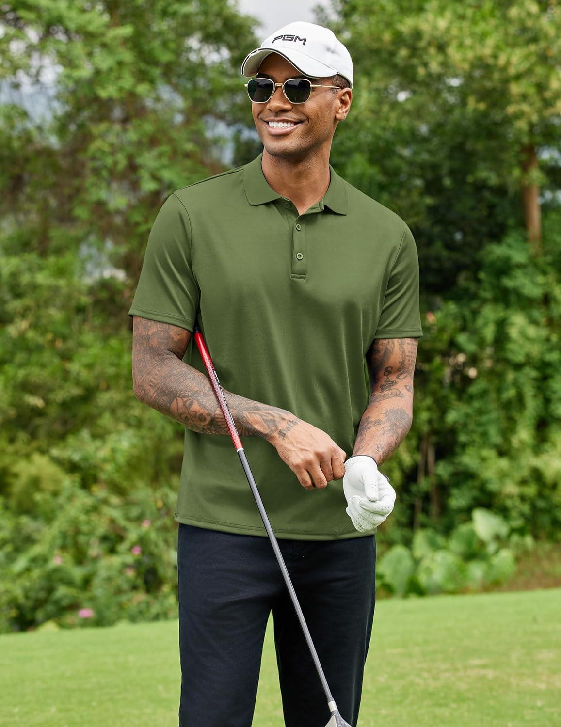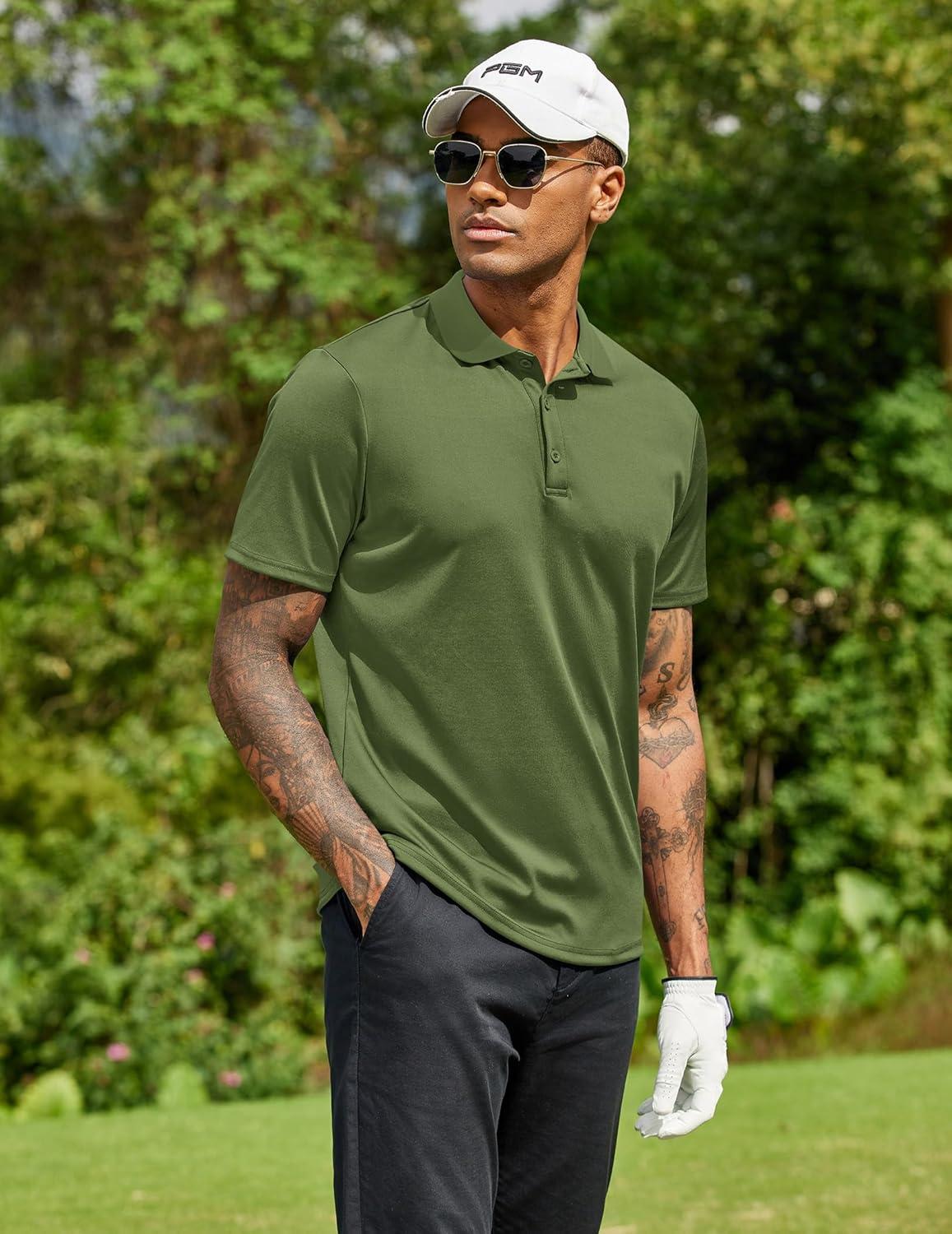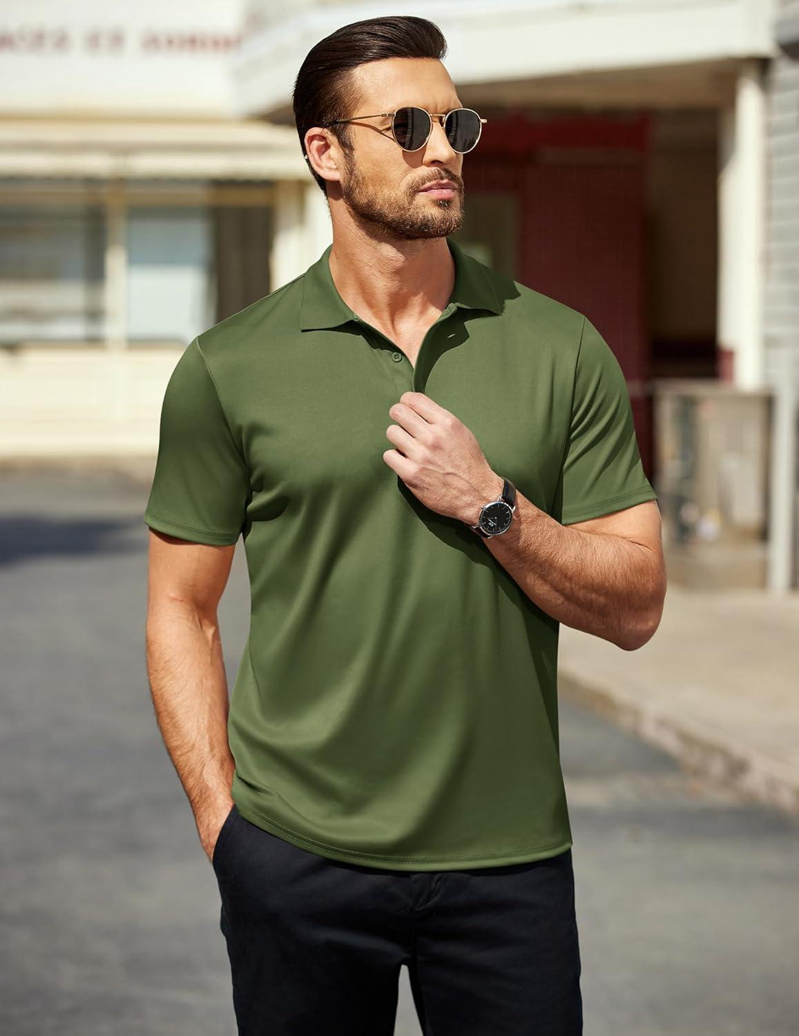 COOFANDY Men Polo Shirts Short Sleeve Quick Drying Athletic Collared Golf Shirts Moisture Wicking Tees(Army Green)