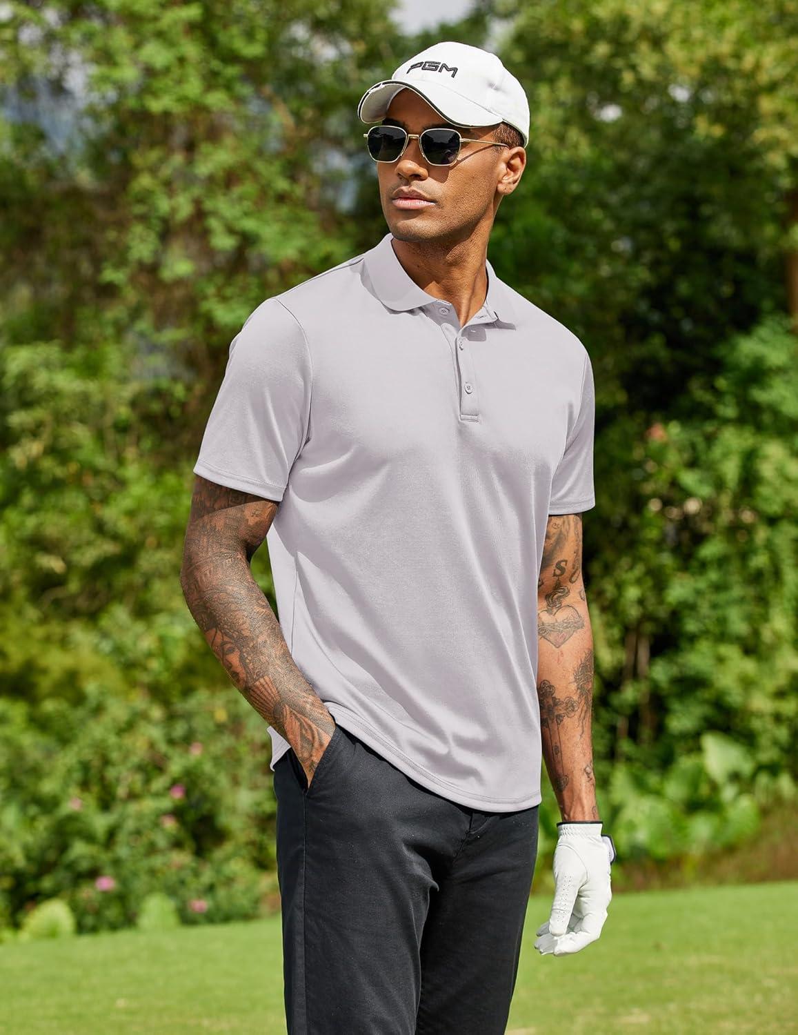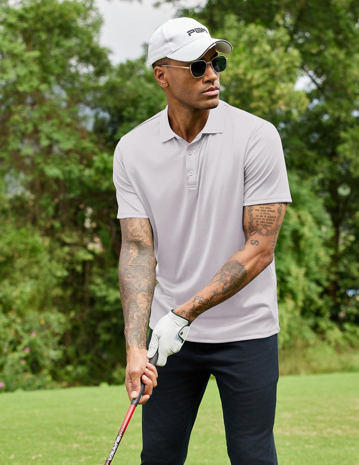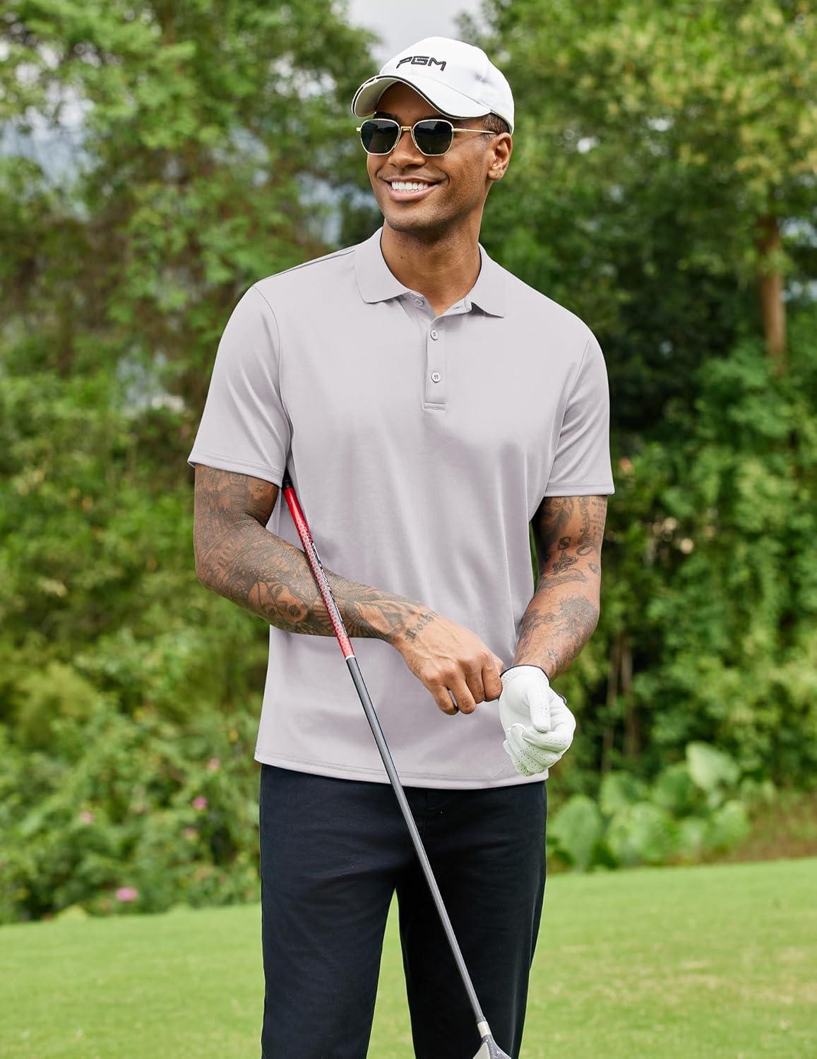 COOFANDY Men Polo Shirts Short Sleeve Quick Drying Athletic Collared Golf Shirts Moisture Wicking Tees(Light Grey)