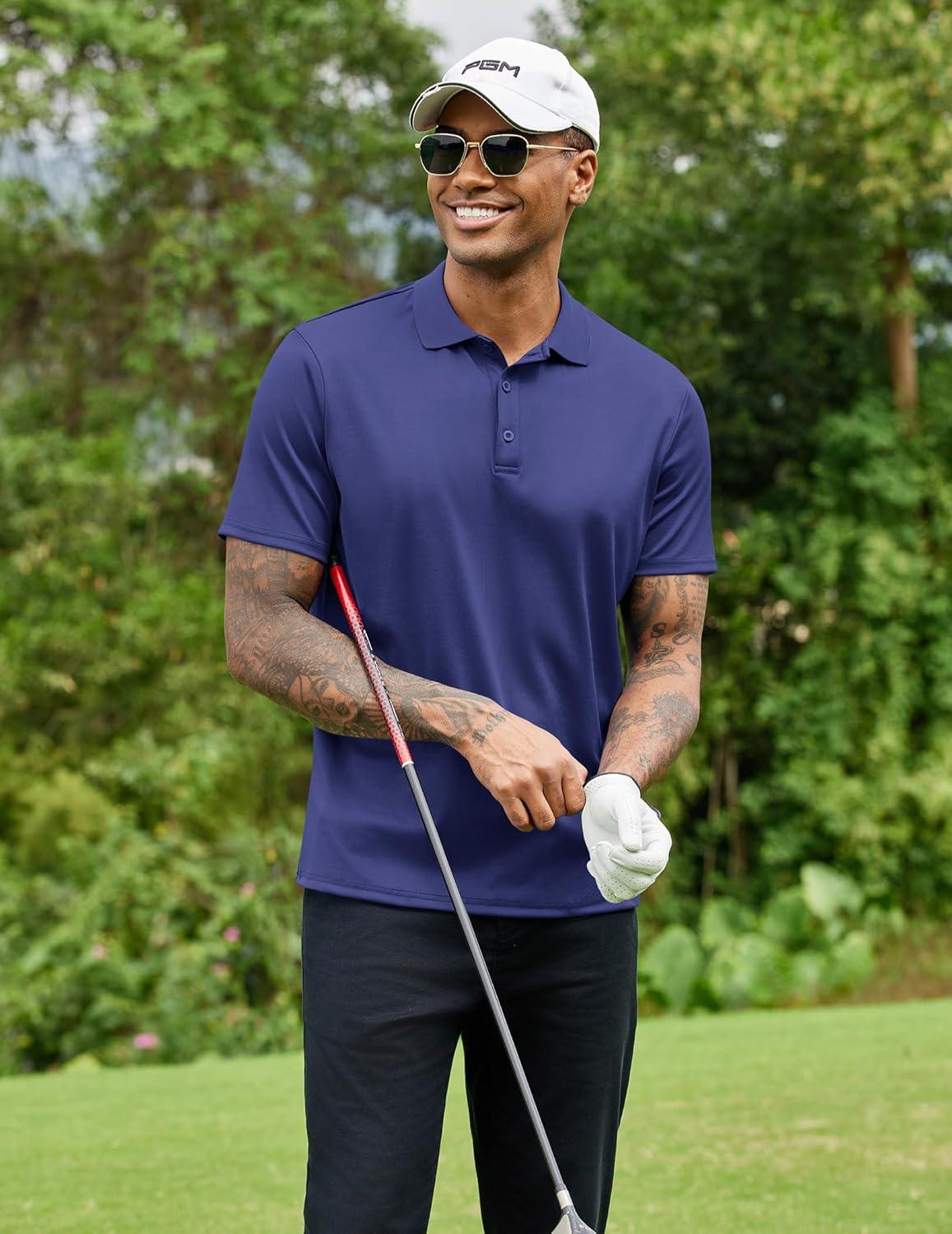 COOFANDY Men Polo Shirts Short Sleeve Quick Drying Athletic Collared Golf Shirts Moisture Wicking Tees(Navy Blue)