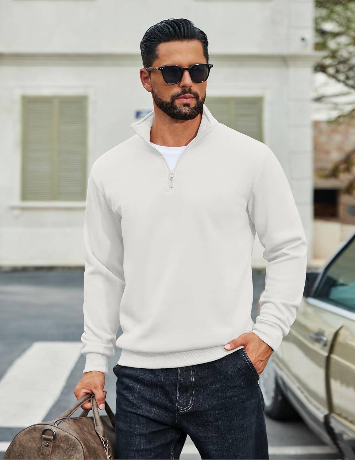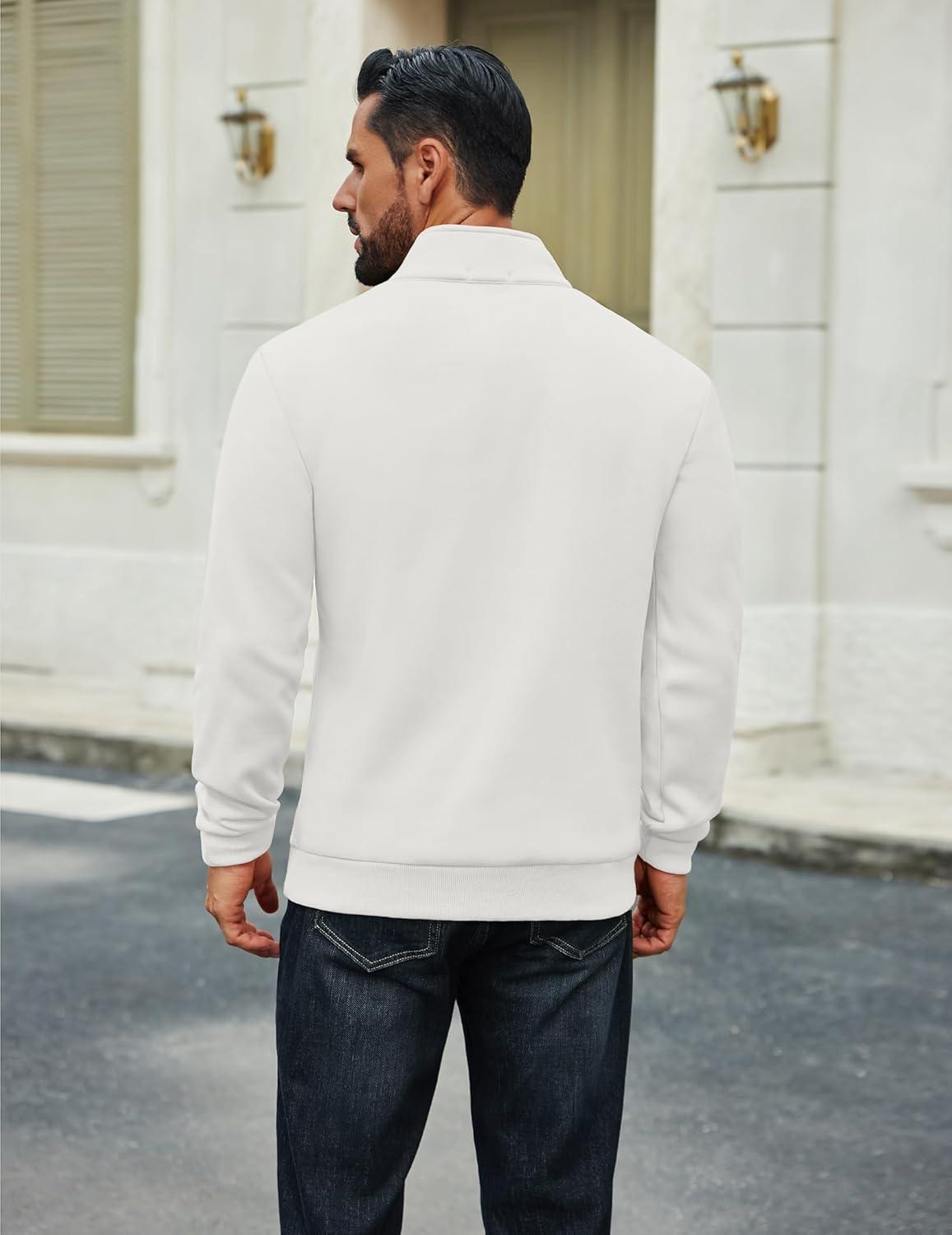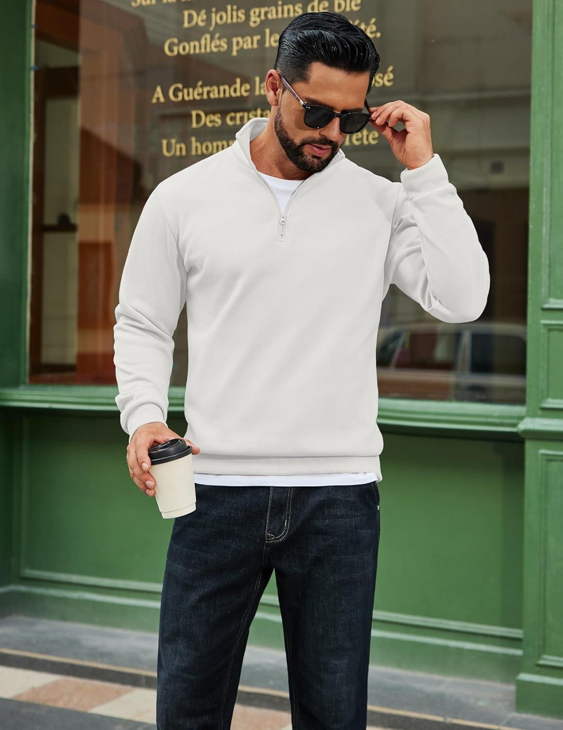 COOFANDY Men Quarter Zip Up Pullover Lightweight Mock Neck Sweatshirt Casual Active Long Sleeve Polo Shirt(White)