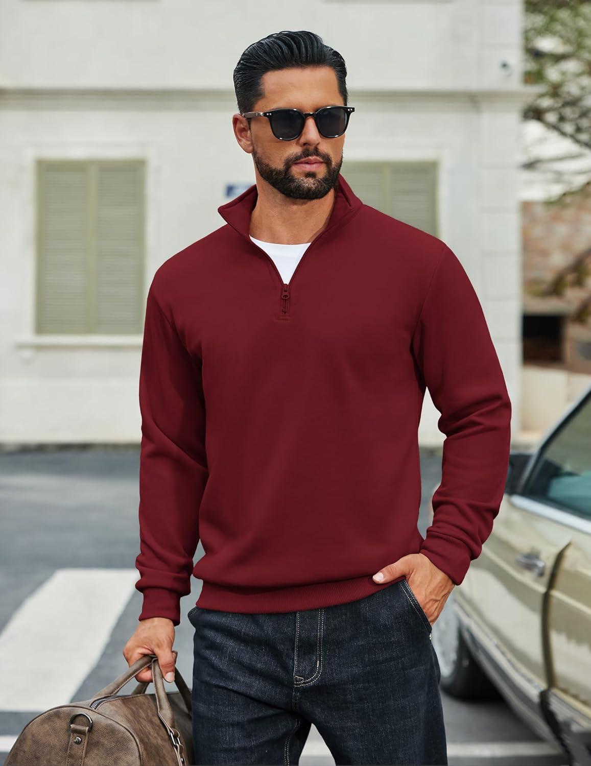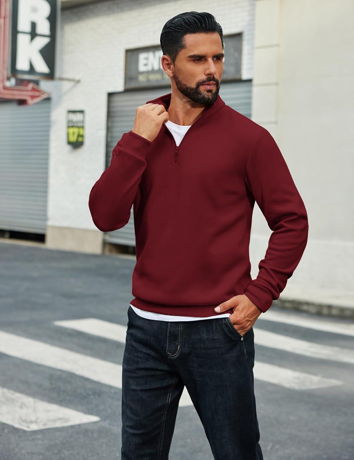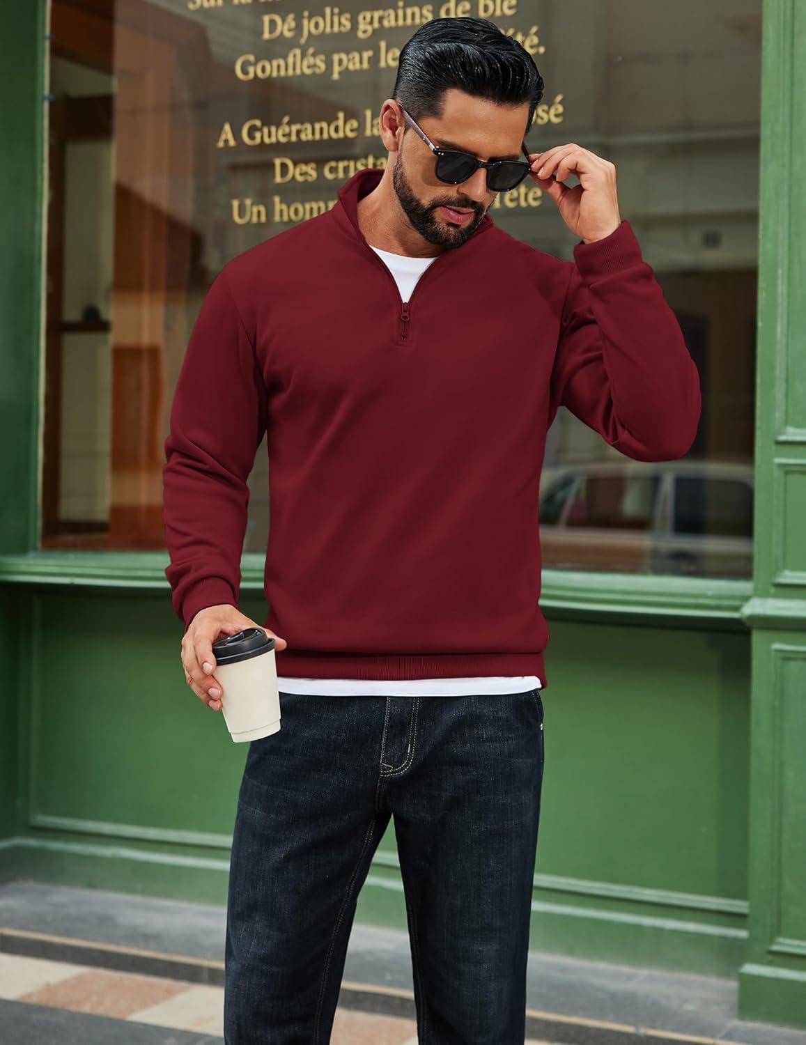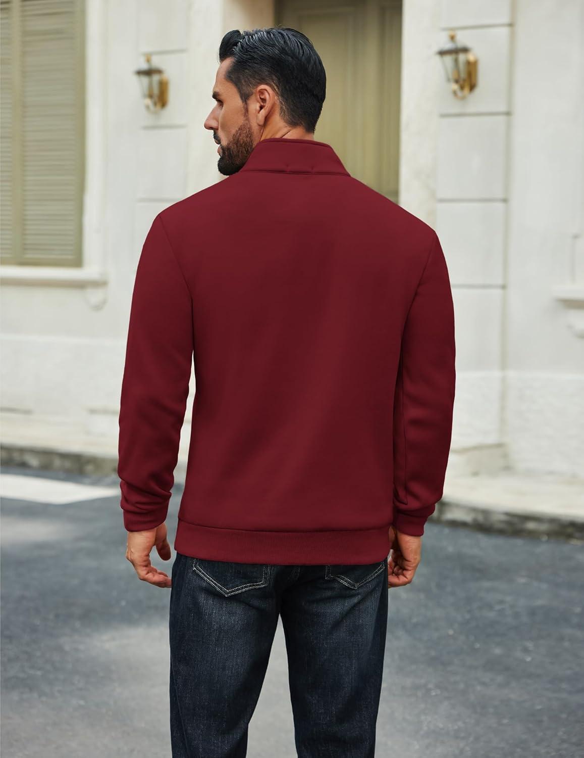 COOFANDY Men Quarter Zip Up Pullover Lightweight Mock Neck Sweatshirt Casual Active Long Sleeve Polo Shirt(Wine Red)