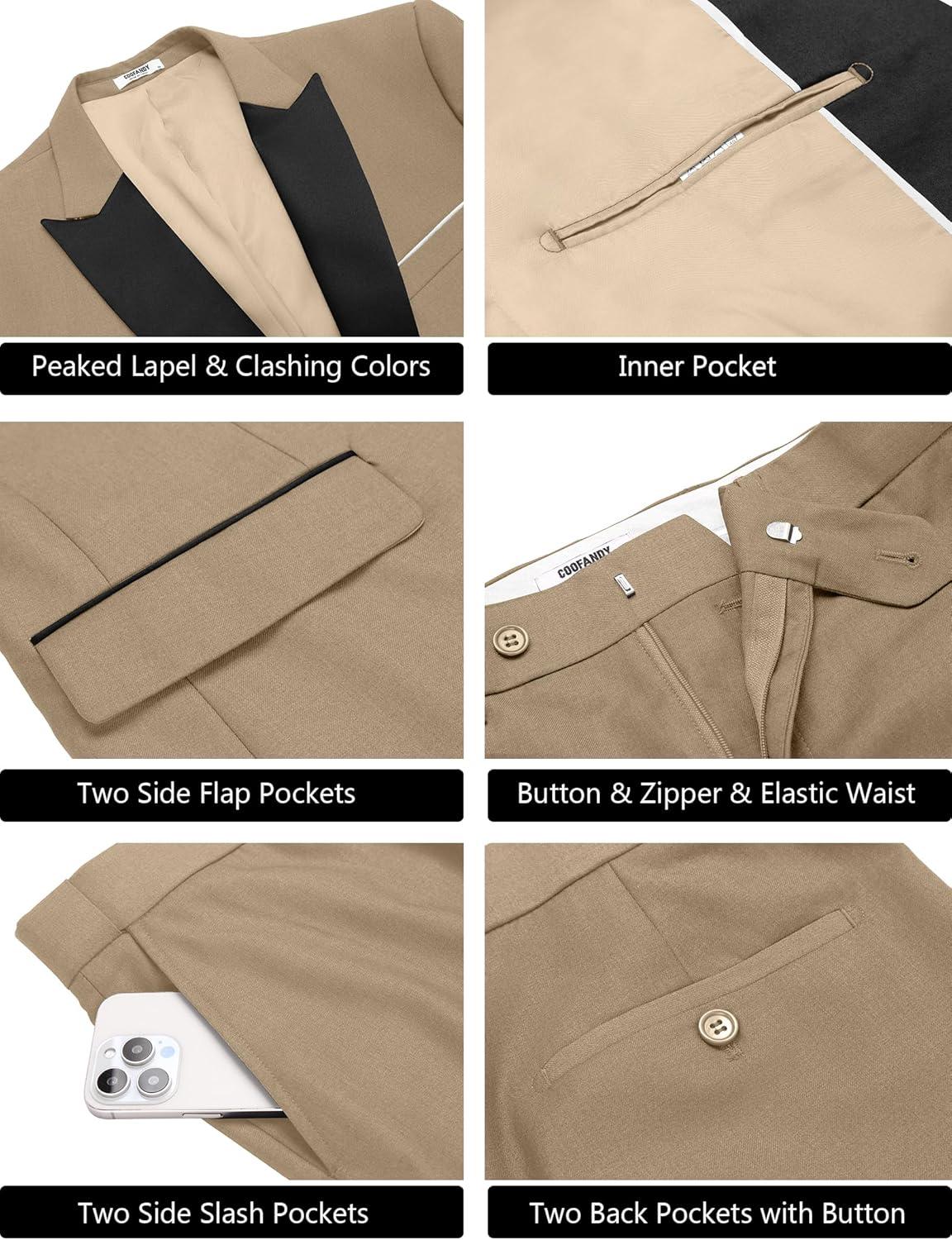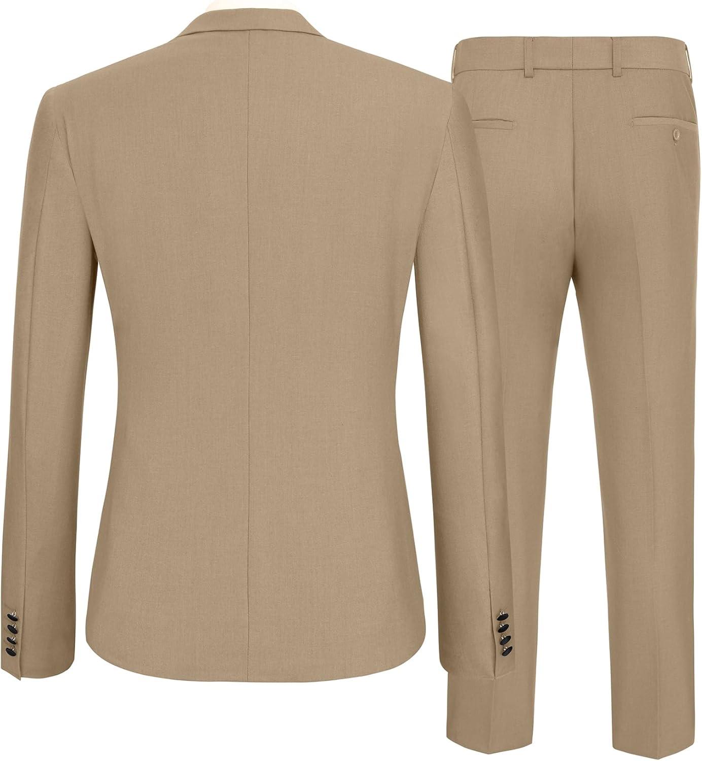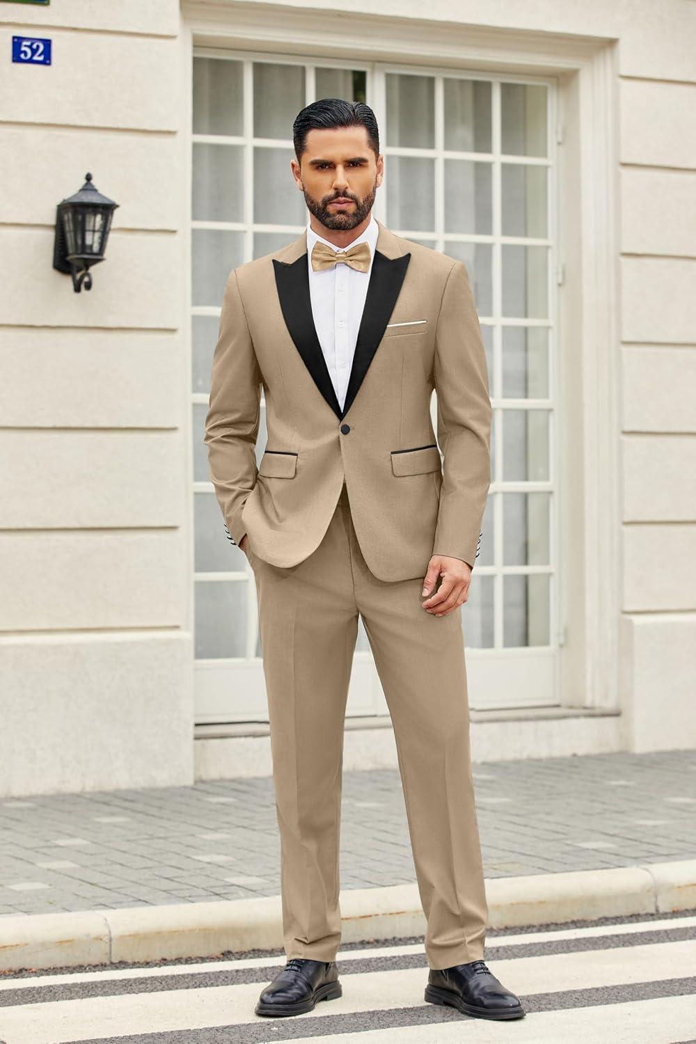 COOFANDY Men’s 2 Piece Suit Slim Fit One Button Tuxedo Jacket Pants for Wedding Prom Business(Khaki)