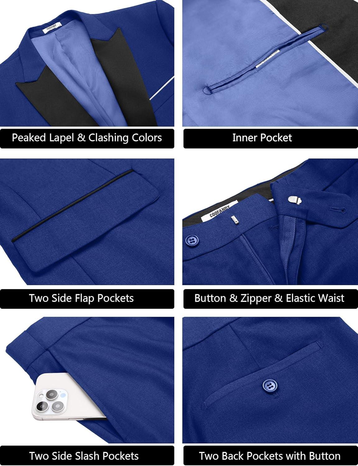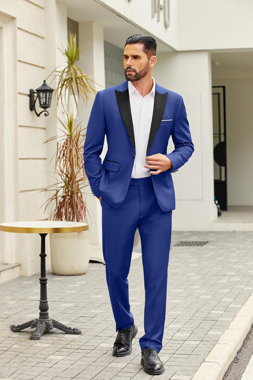 COOFANDY Men’s 2 Piece Suit Slim Fit One Button Tuxedo Jacket Pants for Wedding Prom Business(Royal Blue)
