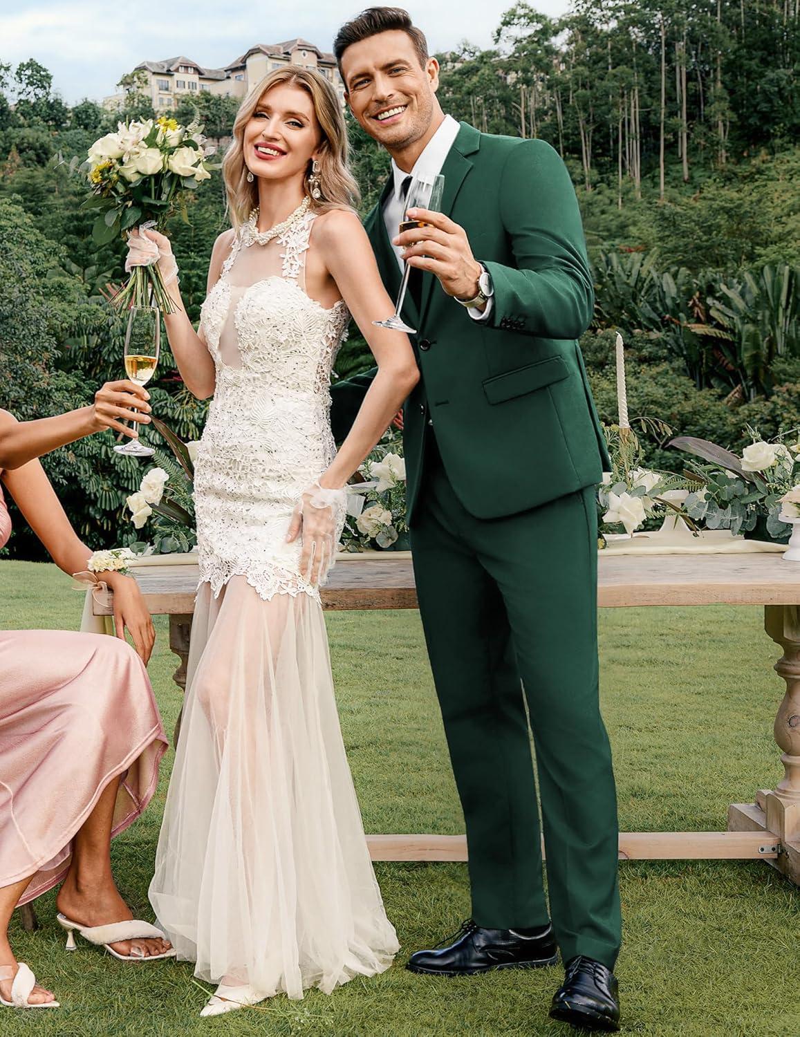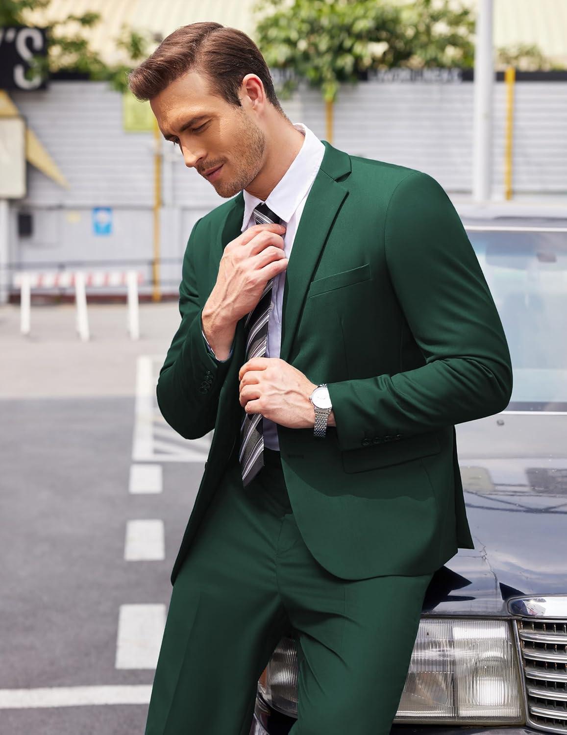 COOFANDY Men’s 2 Piece Suits Classic Fit 2 Button Dress Suits Tuxedo Jacket Blazer for Wedding Business Dinner Prom(Dark Green)