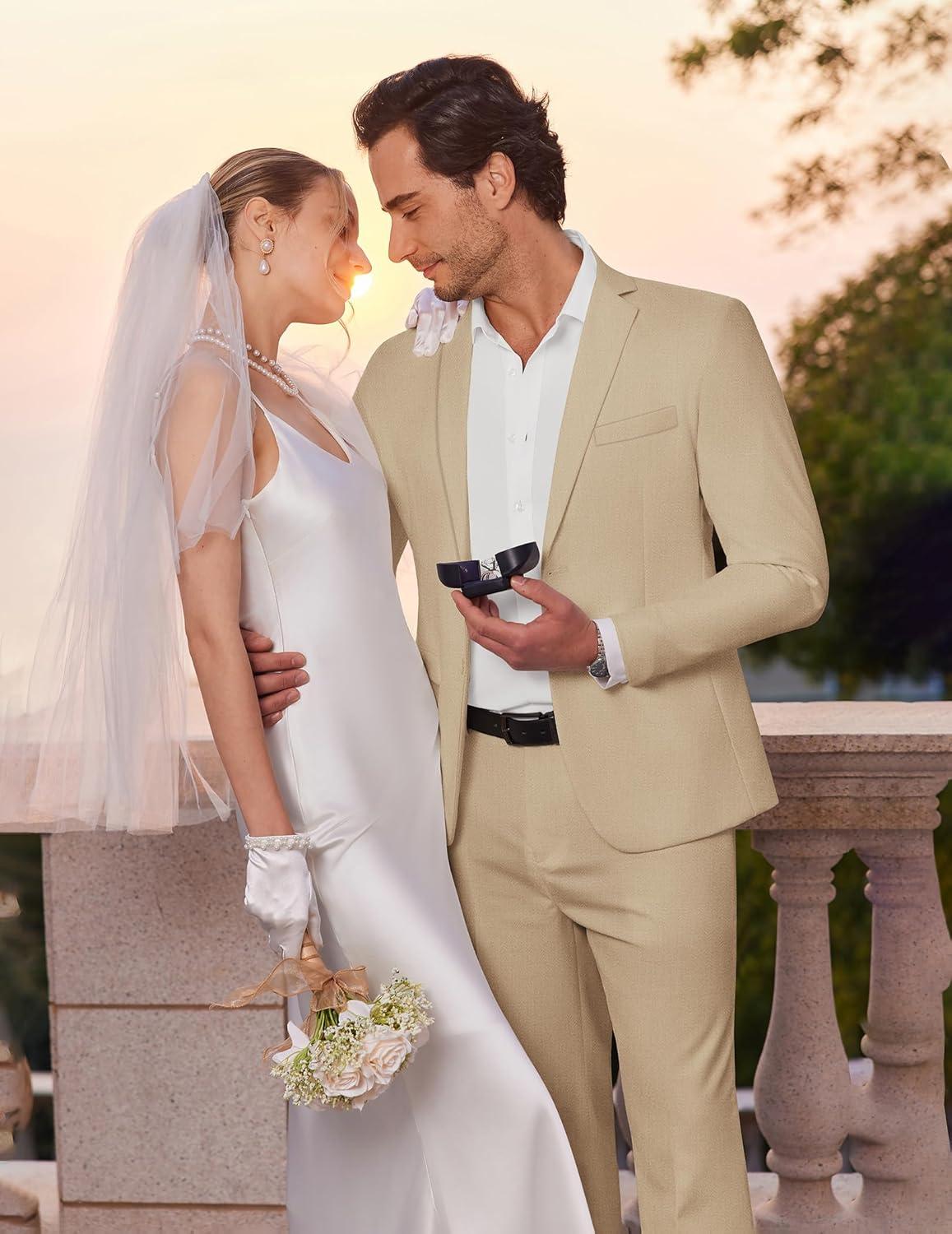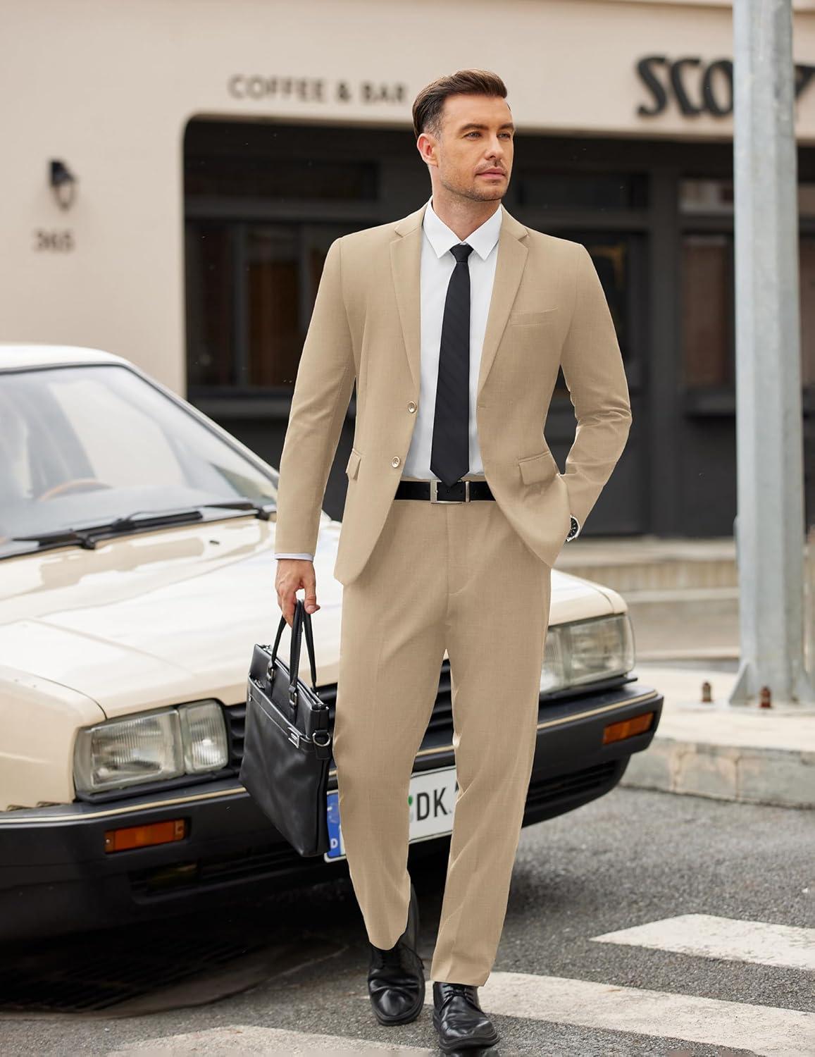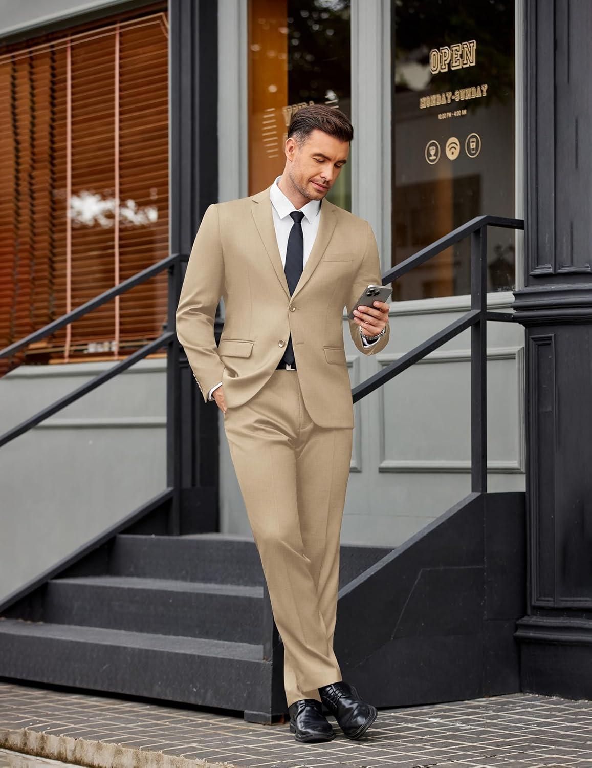 COOFANDY Men’s 2 Piece Suits Classic Fit Suit Set 2 Button Blazer Jacket and Dress Pants for Wedding Business Prom(Khaki)