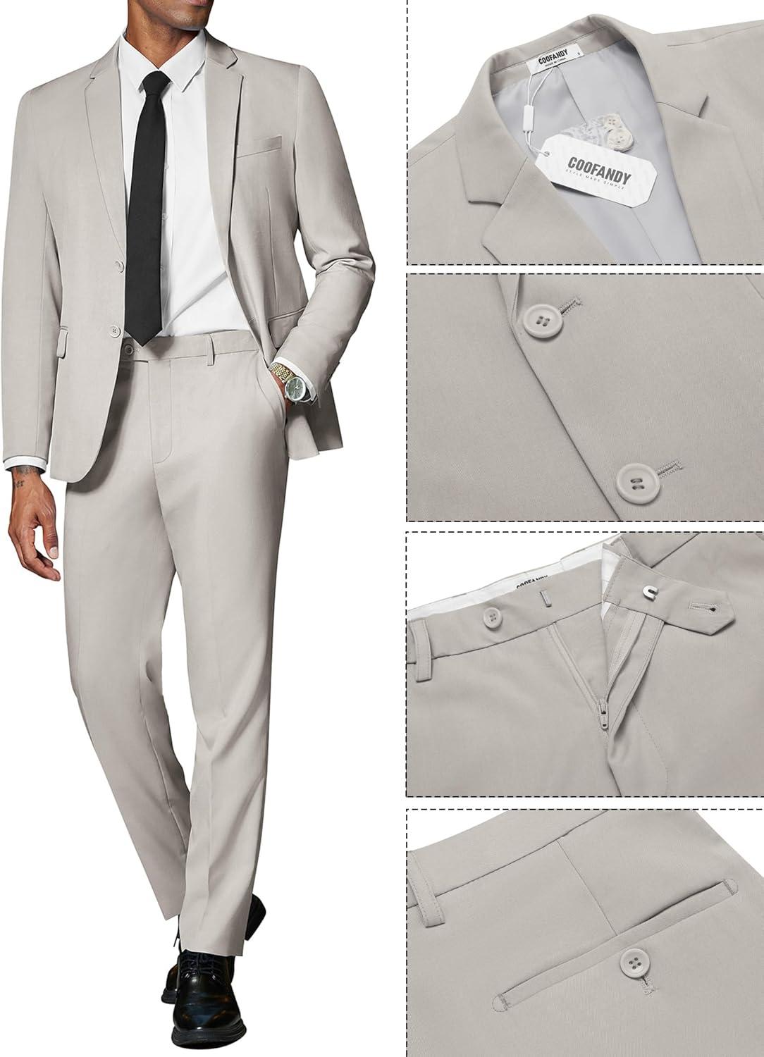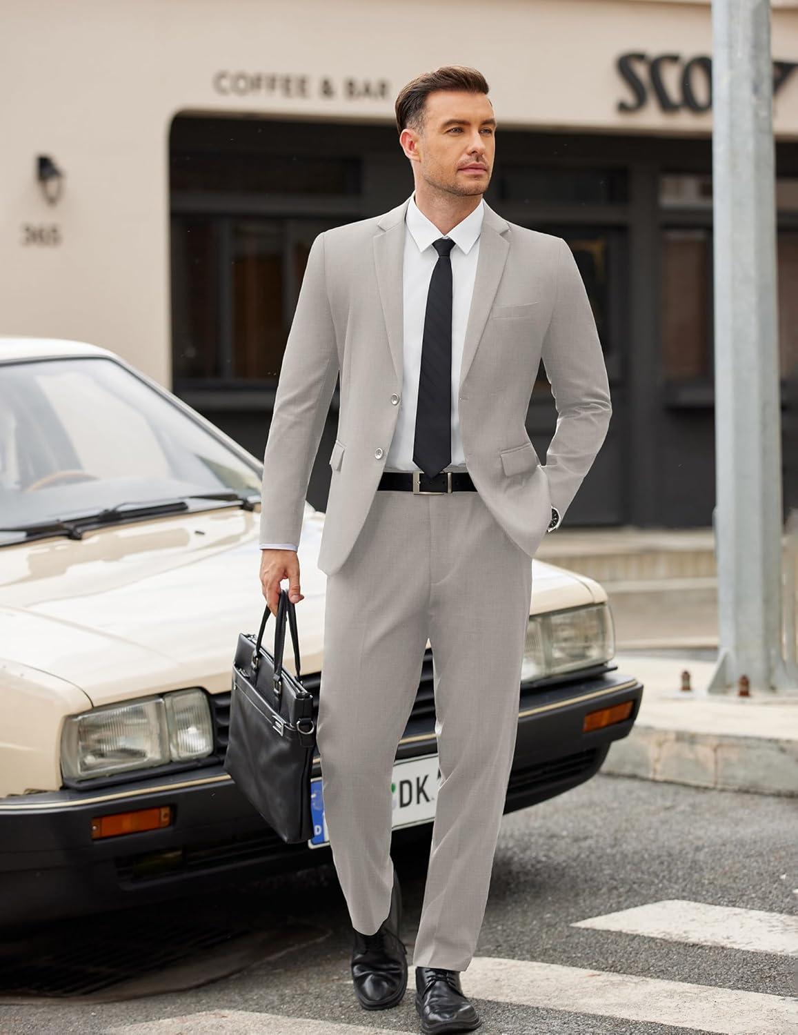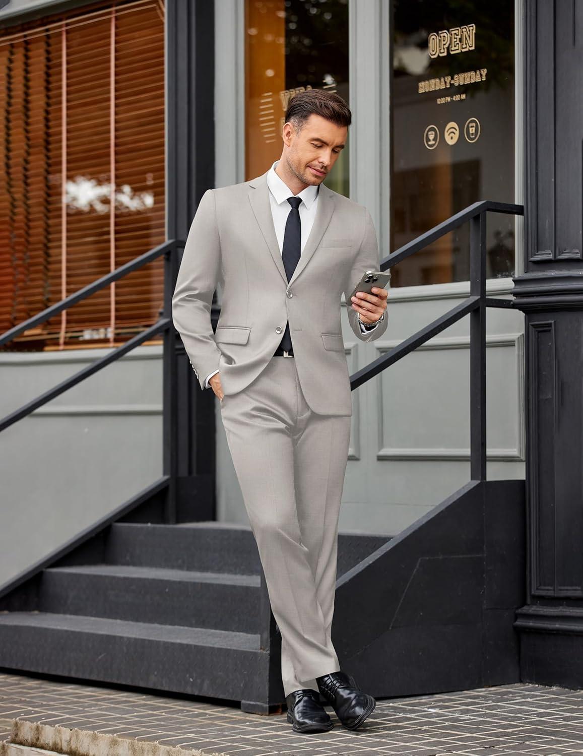 COOFANDY Men’s 2 Piece Suits Classic Fit Suit Set 2 Button Blazer Jacket and Dress Pants for Wedding Business Prom(Light Grey)