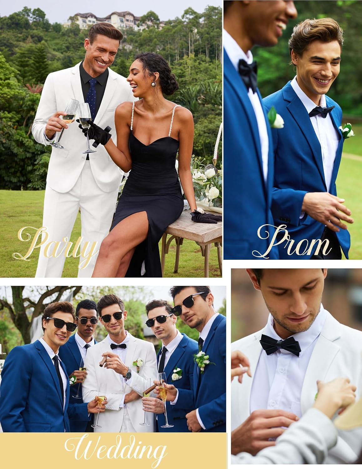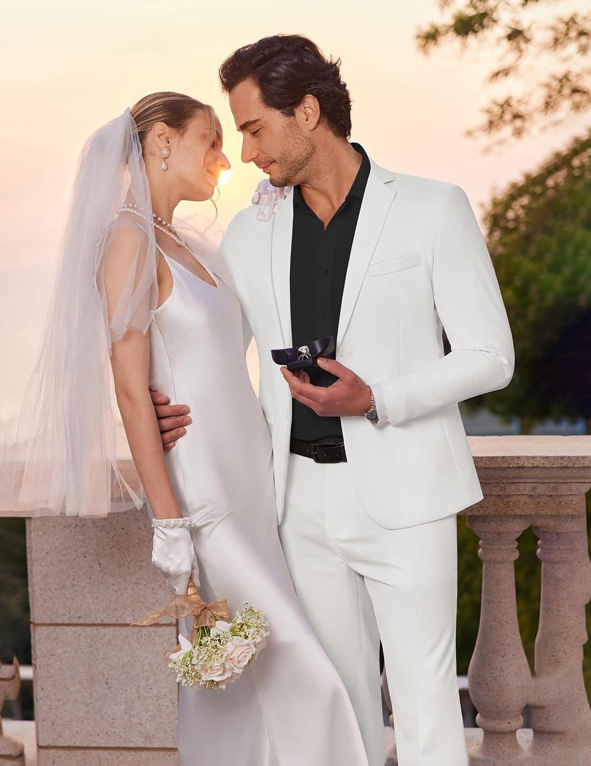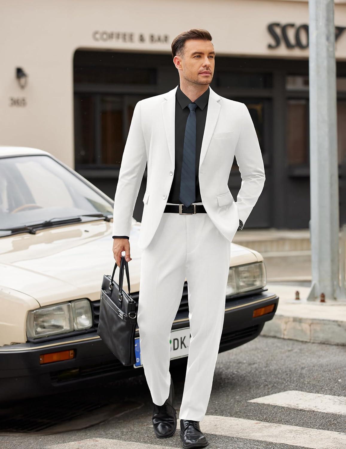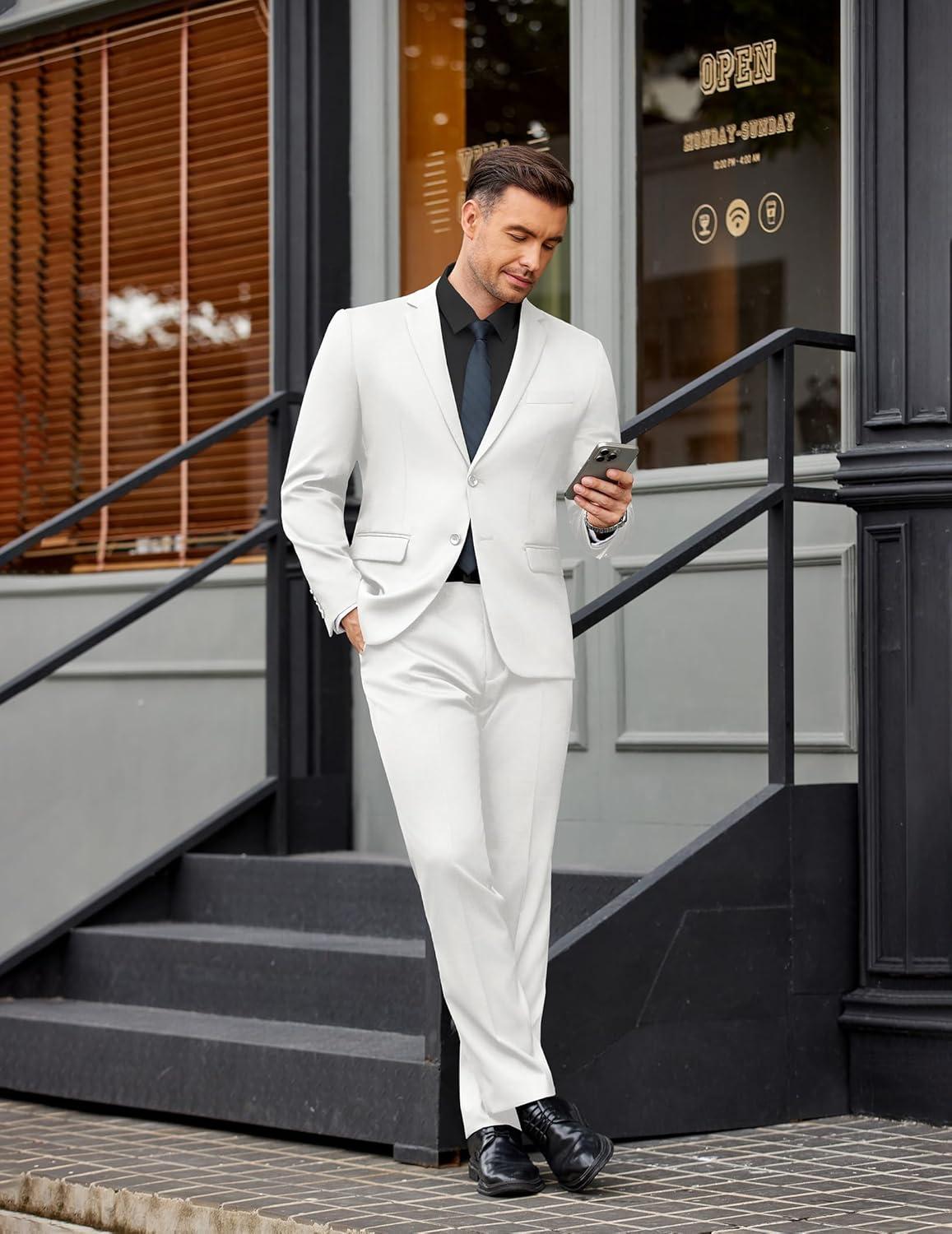 COOFANDY Men’s 2 Piece Suits Classic Fit Suit Set 2 Button Blazer Jacket and Dress Pants for Wedding Business Prom(White)
