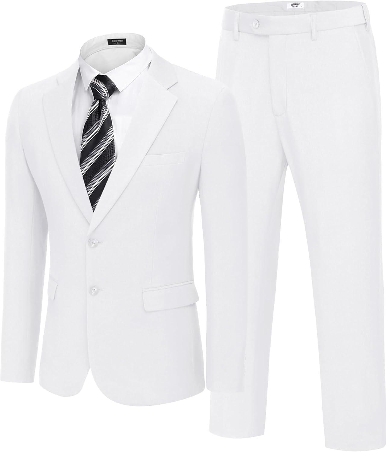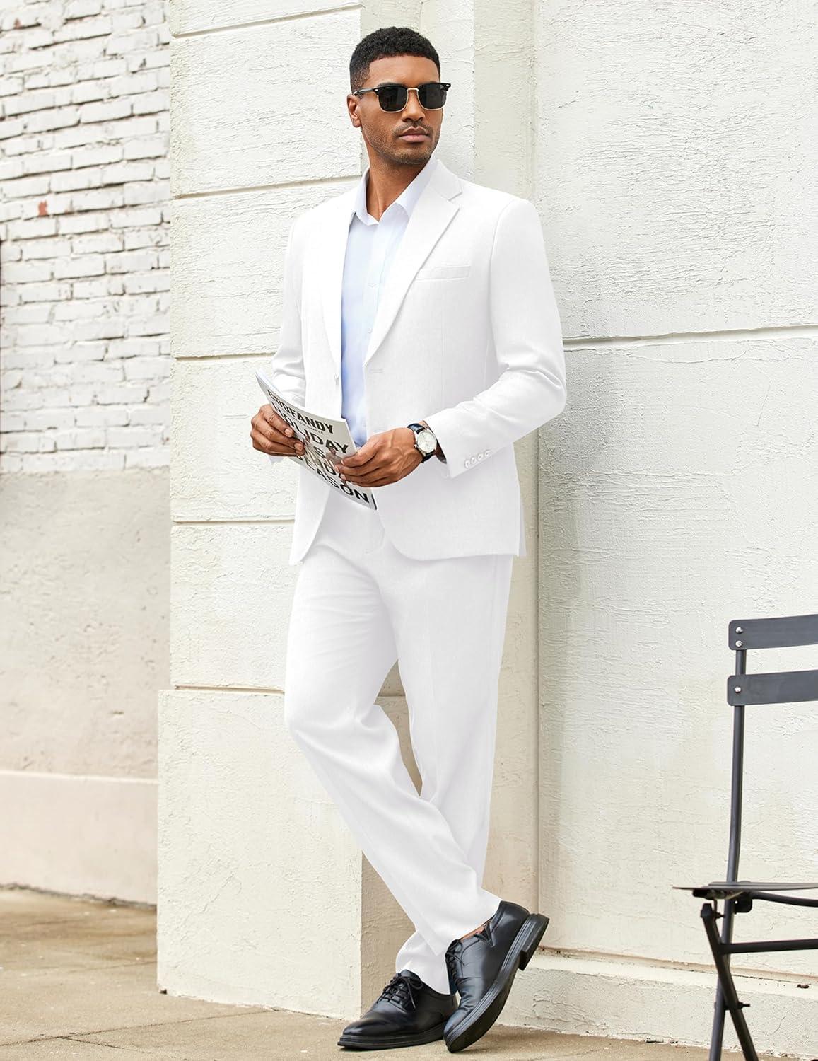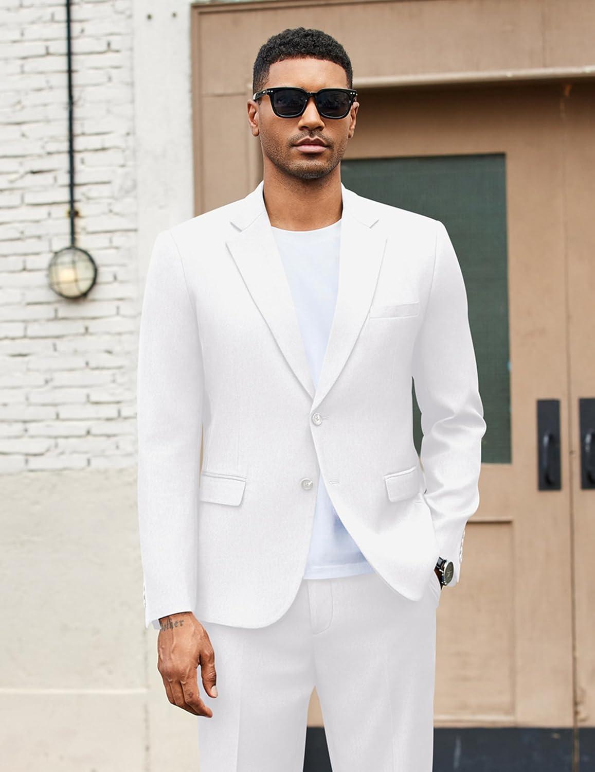 COOFANDY Men’s 2 Piece Suits Slim Fit Two Buttons Casual Blazer Jacket and Pants Set Tuxedo Suit for Wedding Prom Business(White)