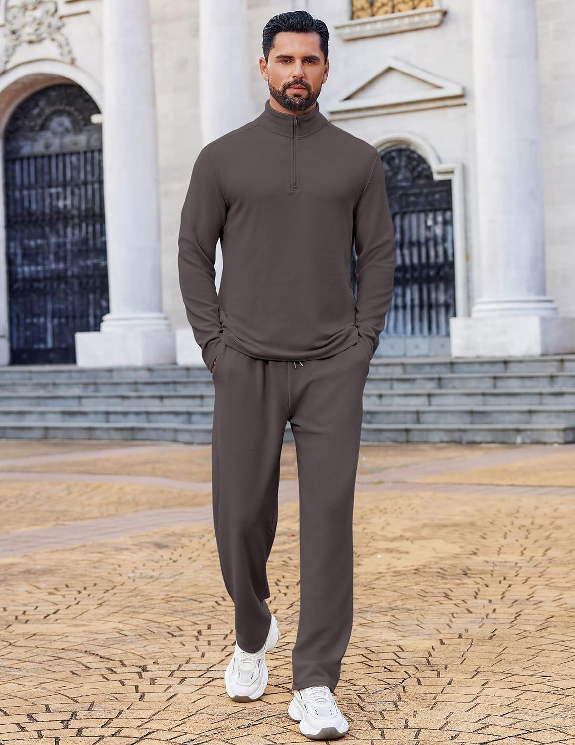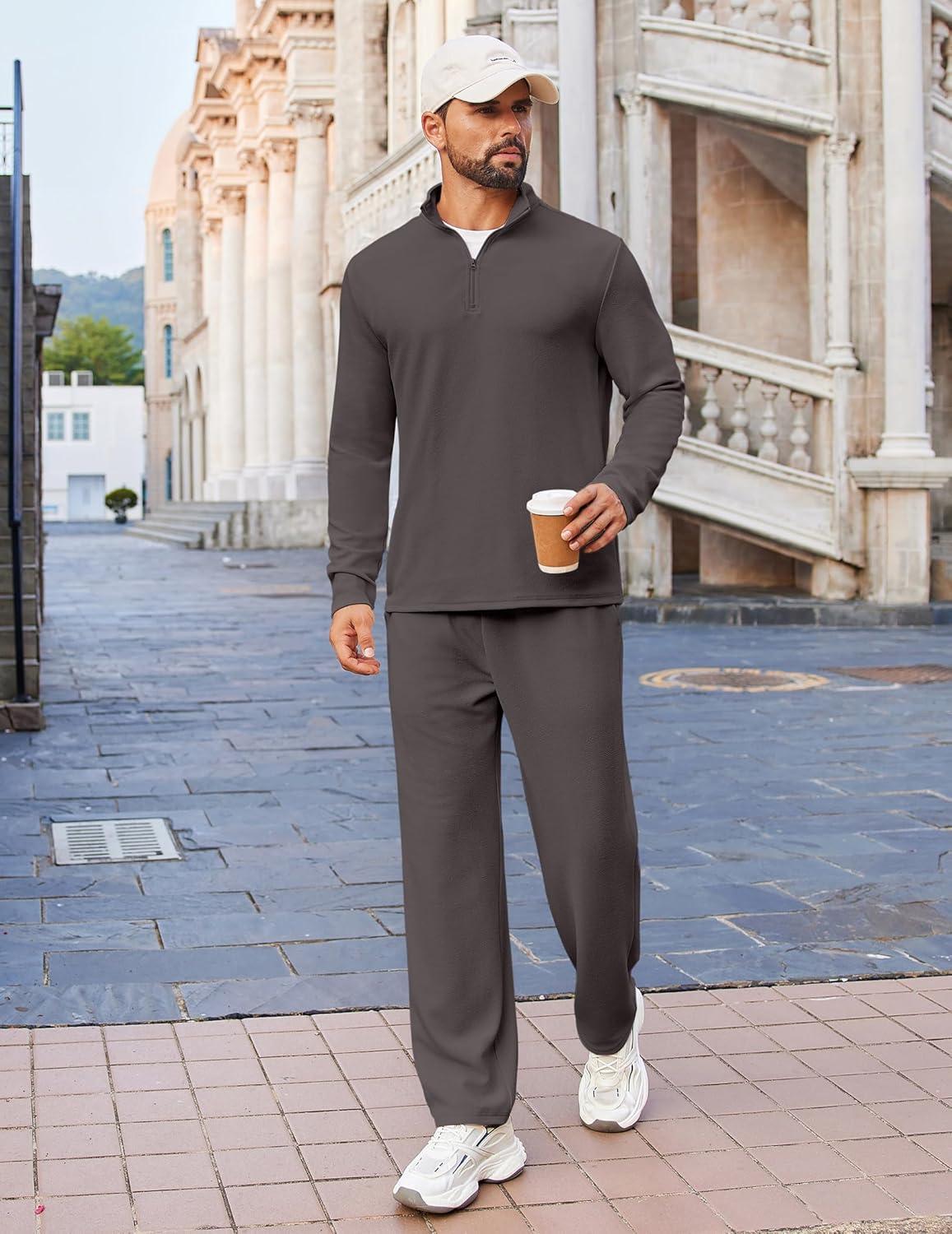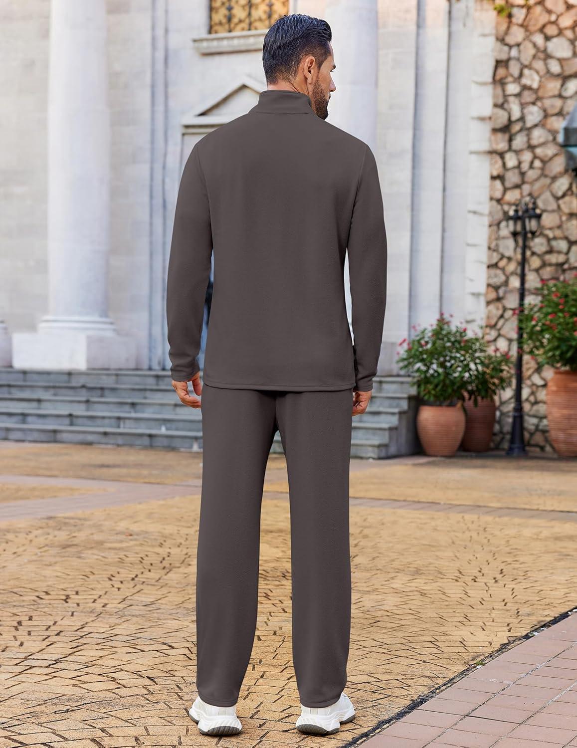 COOFANDY Men’s 2 Piece Tracksuit Set Quarter Zip Sweatsuit Athletic Running Suit Sets Long Sleeve Casual Outfits(Dark Grey)