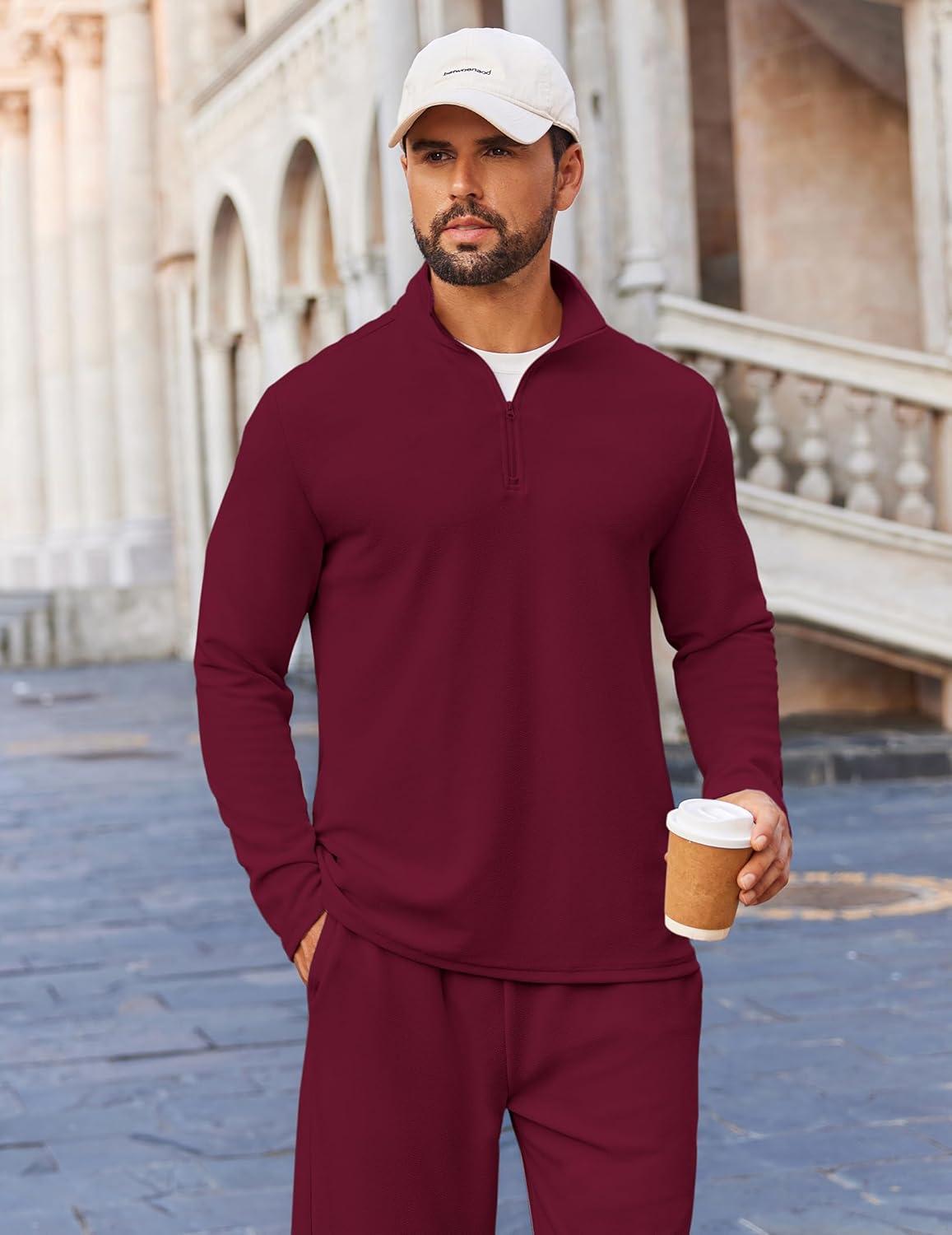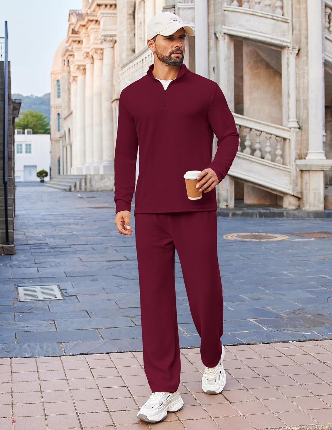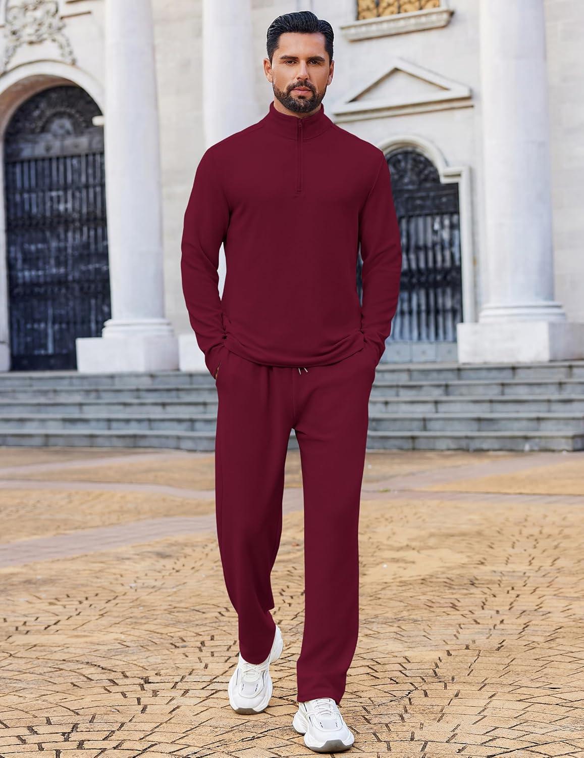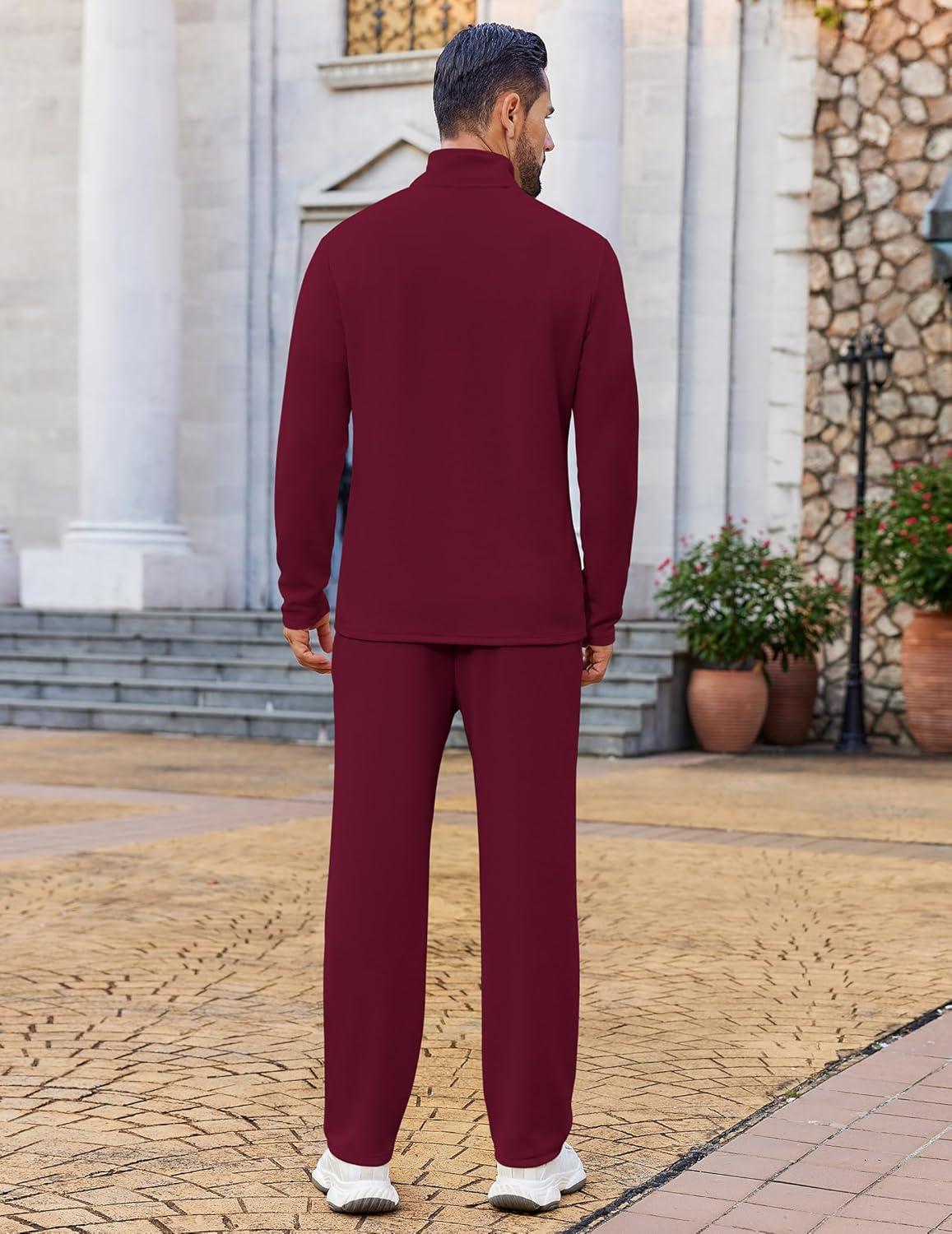 COOFANDY Men’s 2 Piece Tracksuit Set Quarter Zip Sweatsuit Athletic Running Suit Sets Long Sleeve Casual Outfits(Dark Red)
