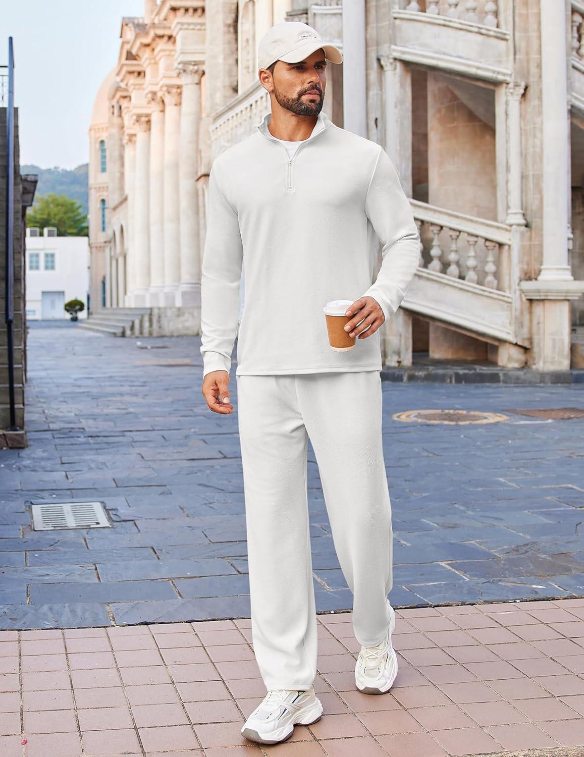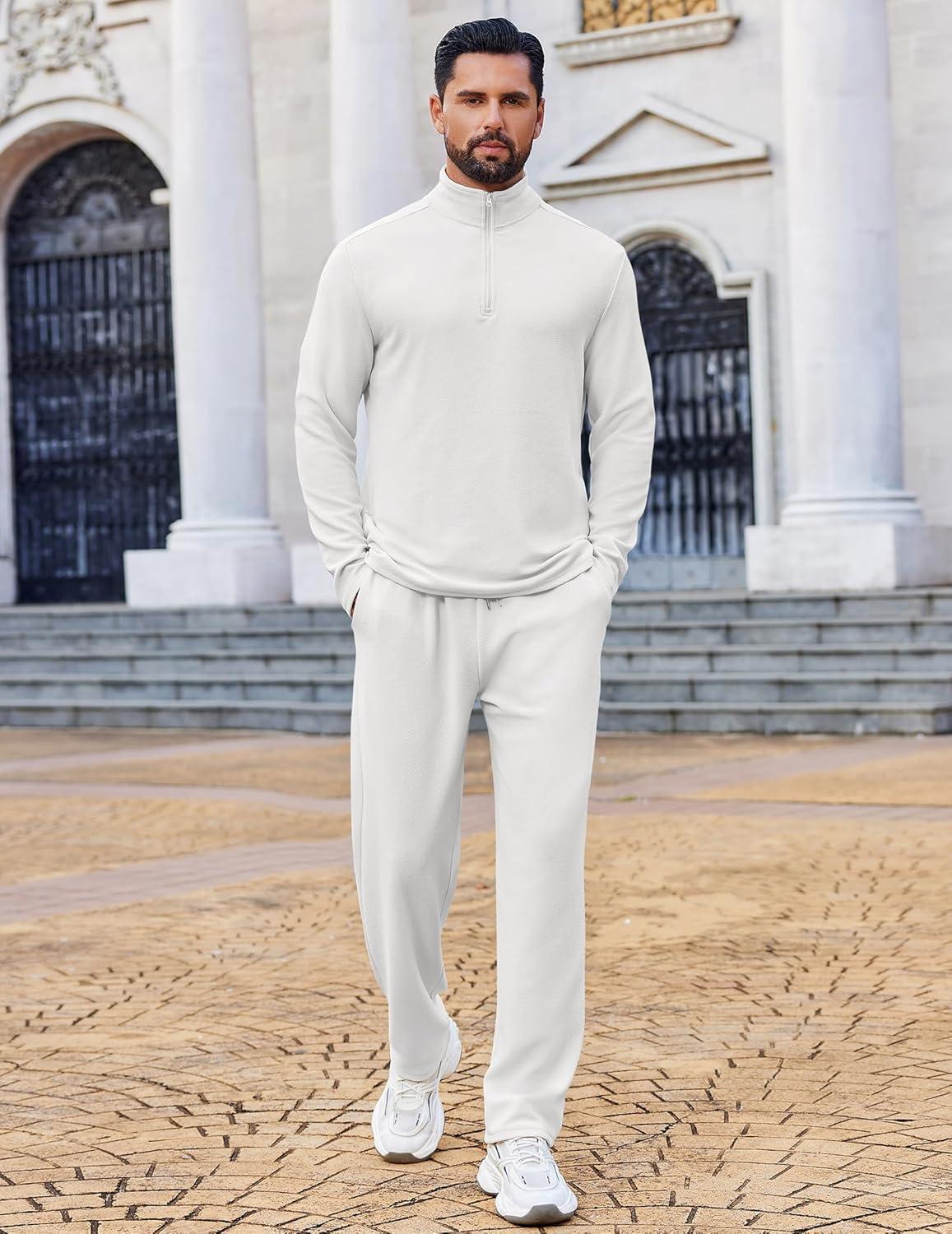 COOFANDY Men’s 2 Piece Tracksuit Set Quarter Zip Sweatsuit Athletic Running Suit Sets Long Sleeve Casual Outfits(White)