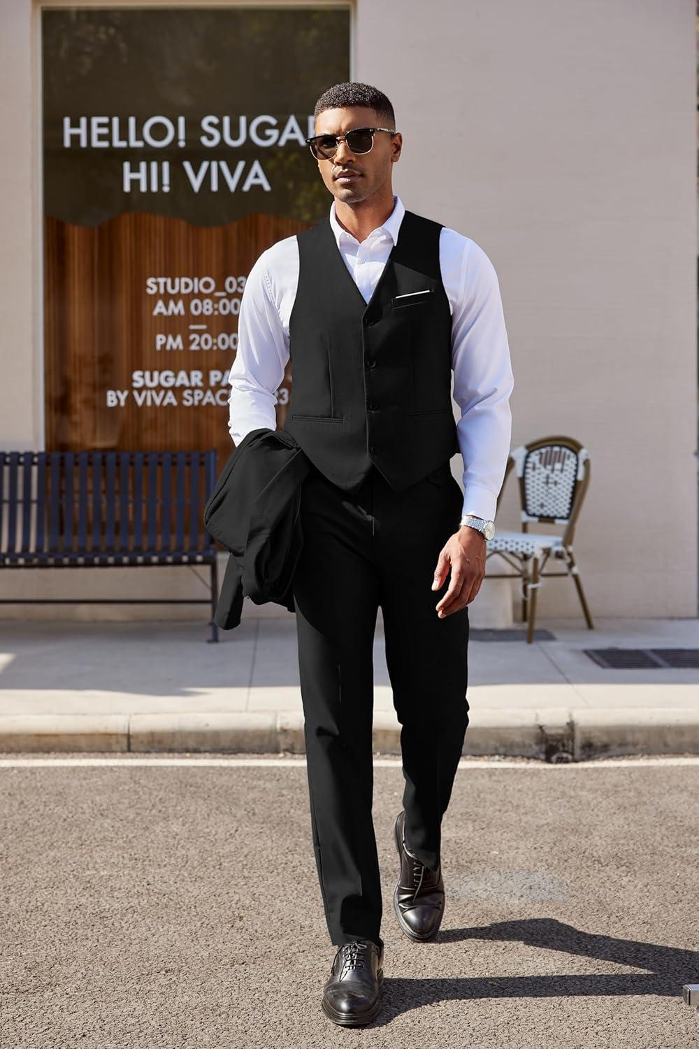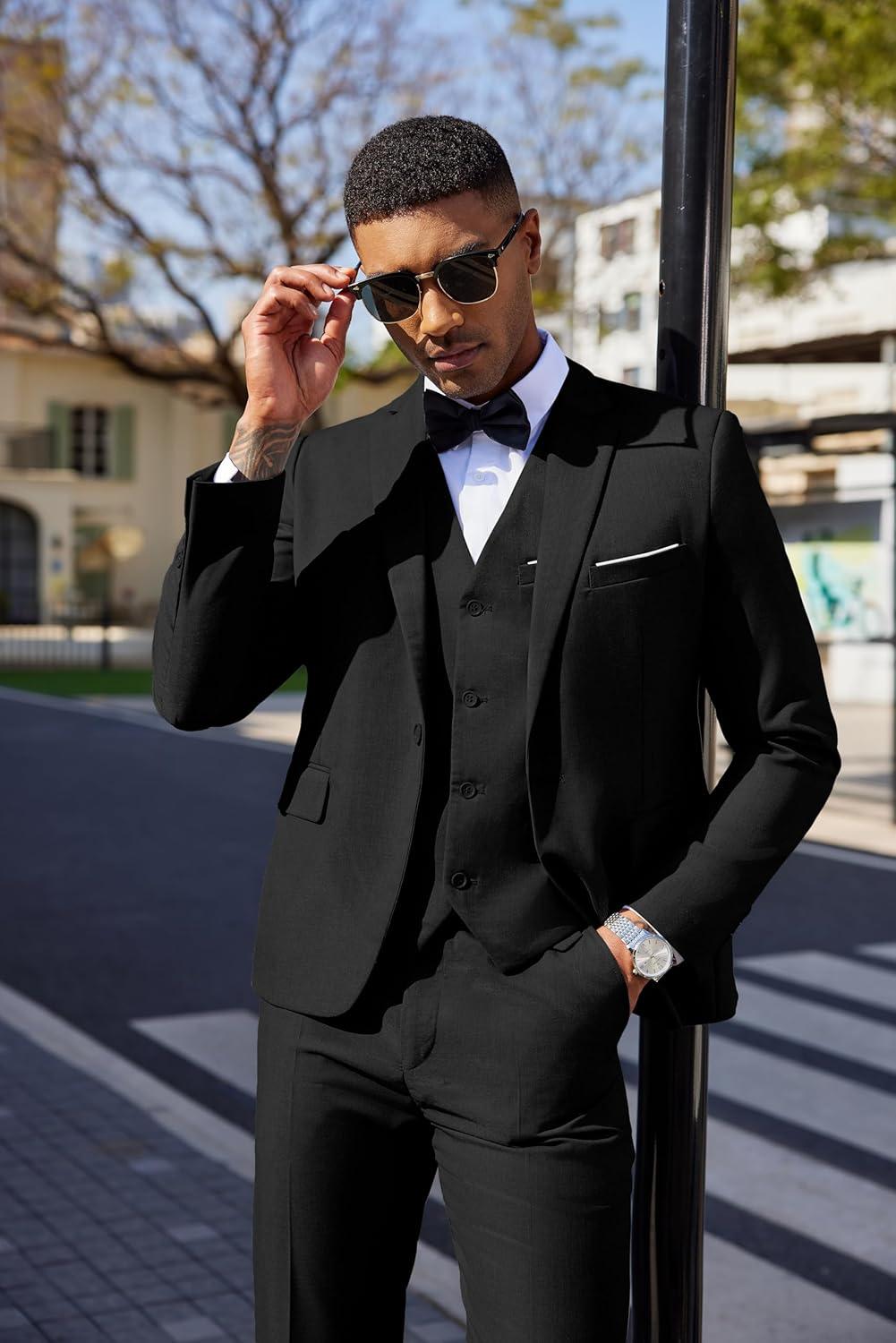 COOFANDY Men’s 3 Pieces Suit Classic One Button Single Breasted Slim Fit Blazer Jacket Vest Pants Set Wedding Busines(Black)