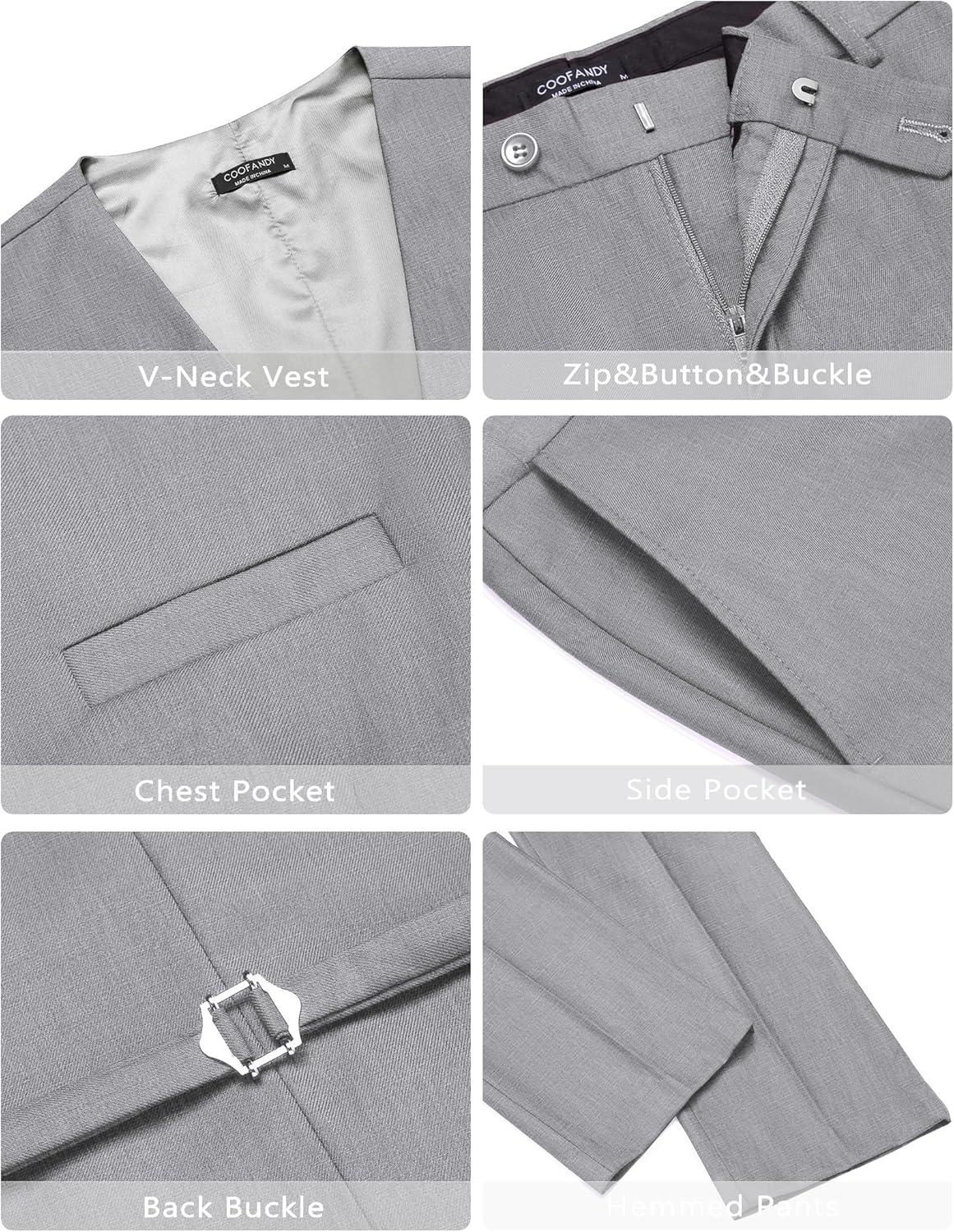 COOFANDY Men’s 3 Pieces Suit Slim Fit Tuxedo Set One Button Shawl Lapel Dinner Prom Jacket Vest Pants with Tie(Dgrey/Black)