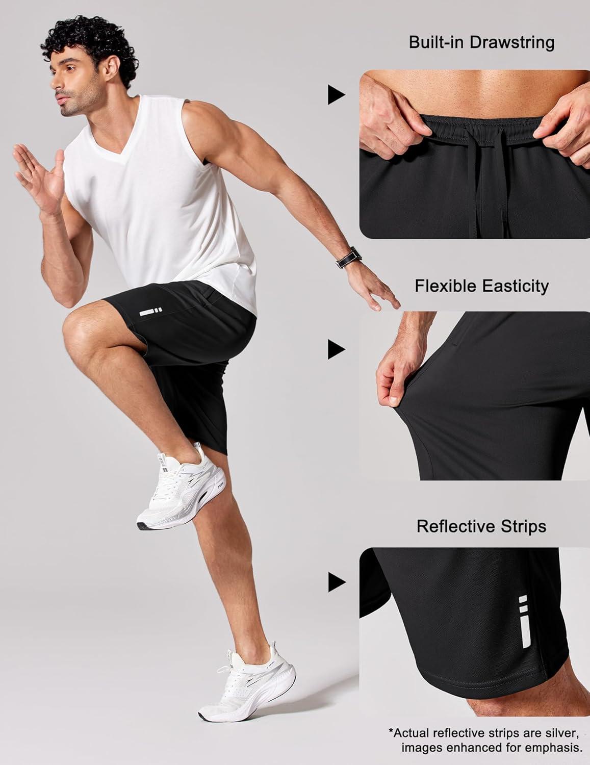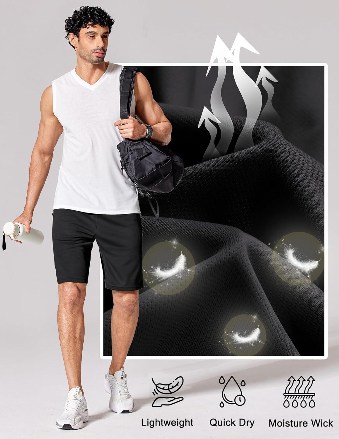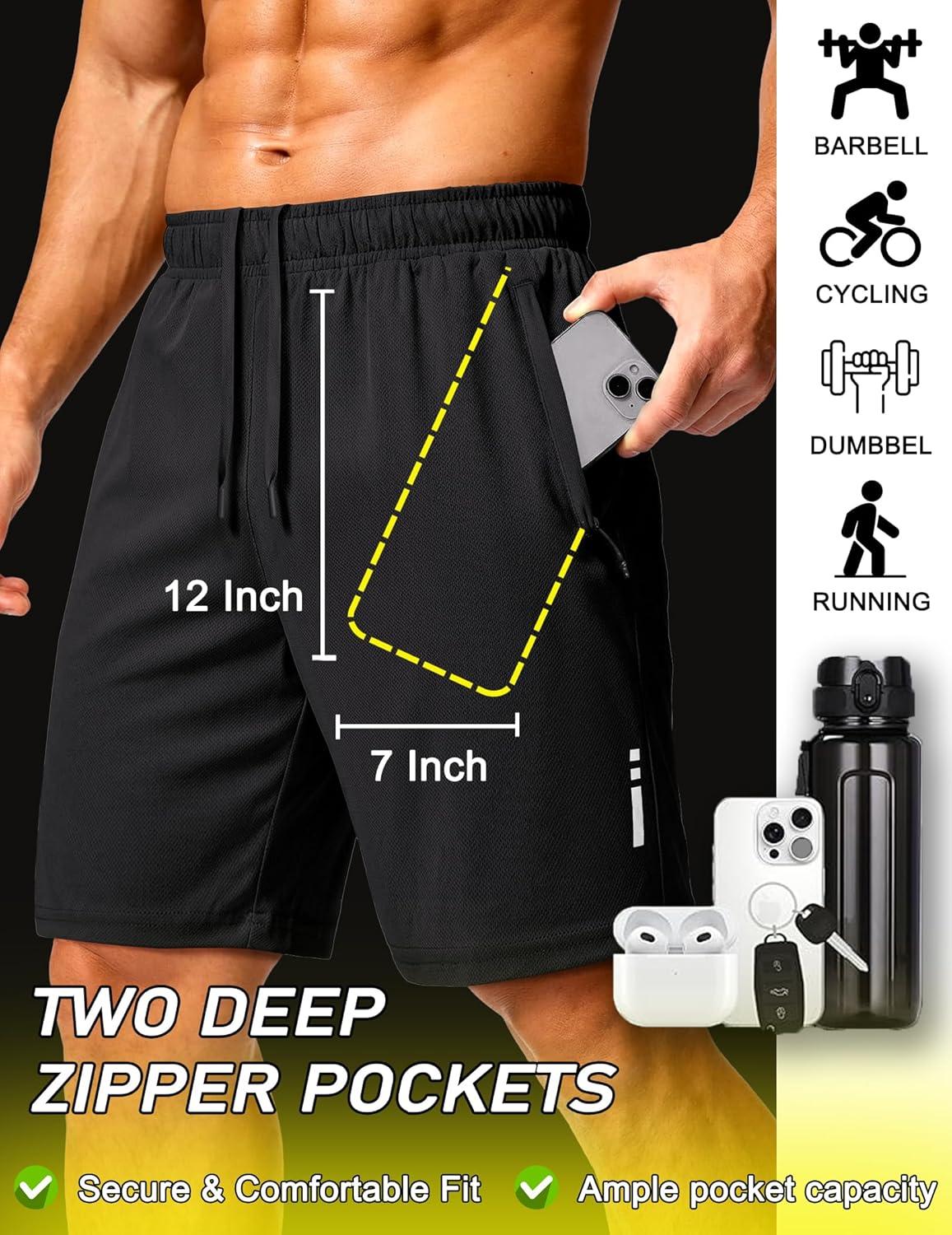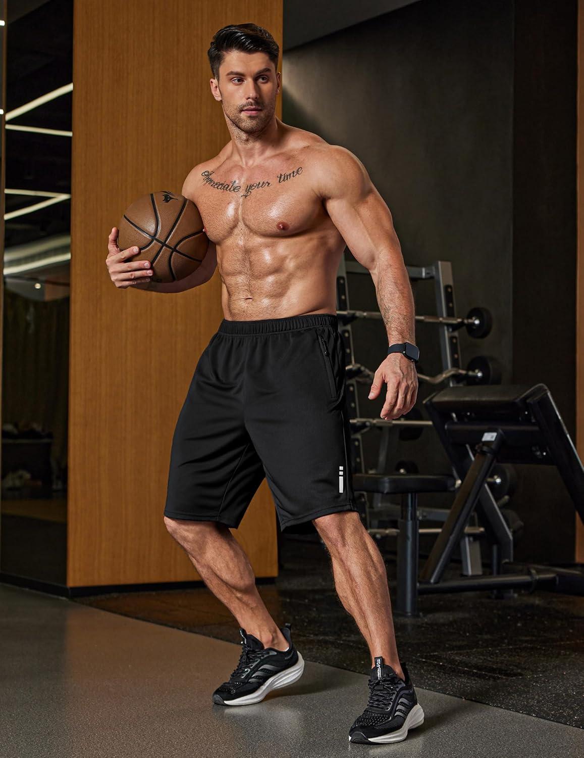 COOFANDY Mens Athletic Running Shorts 9″ Lightweight Quick Dry Drawstring Mesh Gym Shorts with Zipper Pockets(Black)