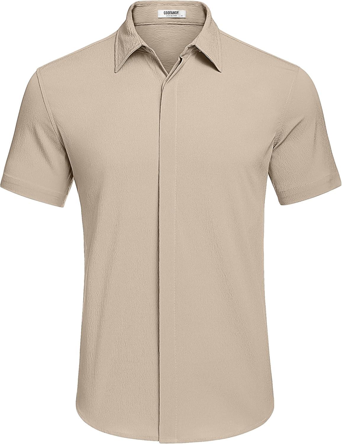 COOFANDY Mens Short Sleeve Button Down Shirts Casual Dress Shirts for Men Summer Untucked Shirts with Pocket(Dark Gray)