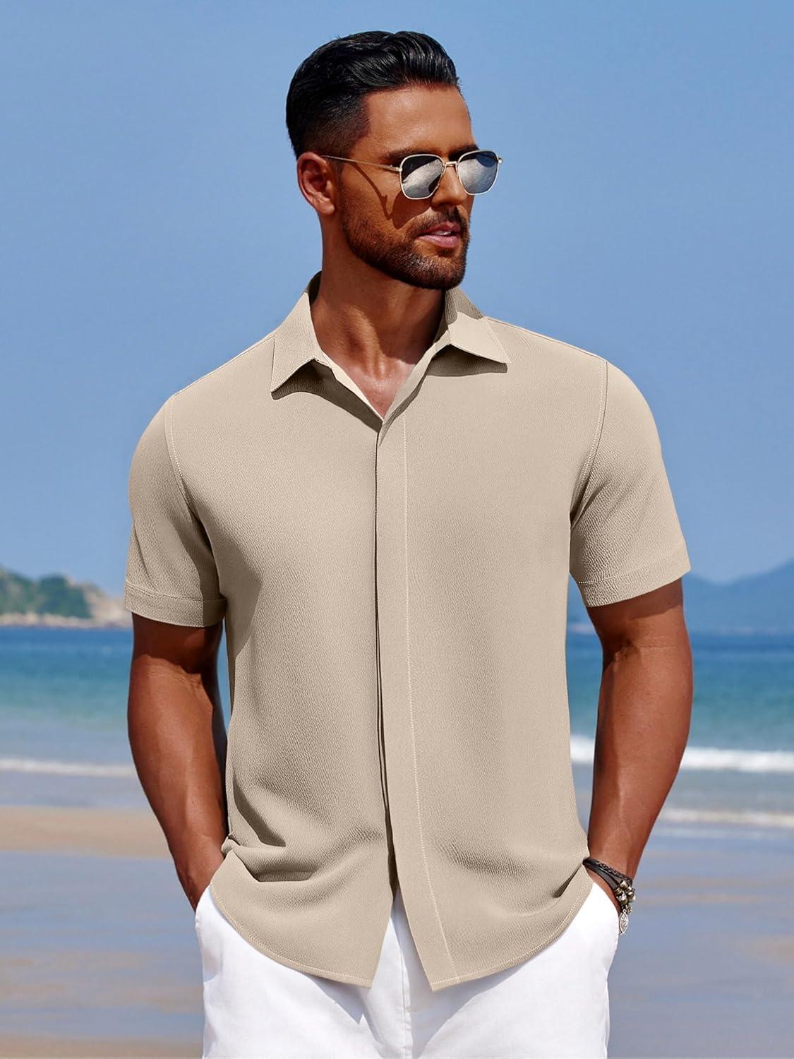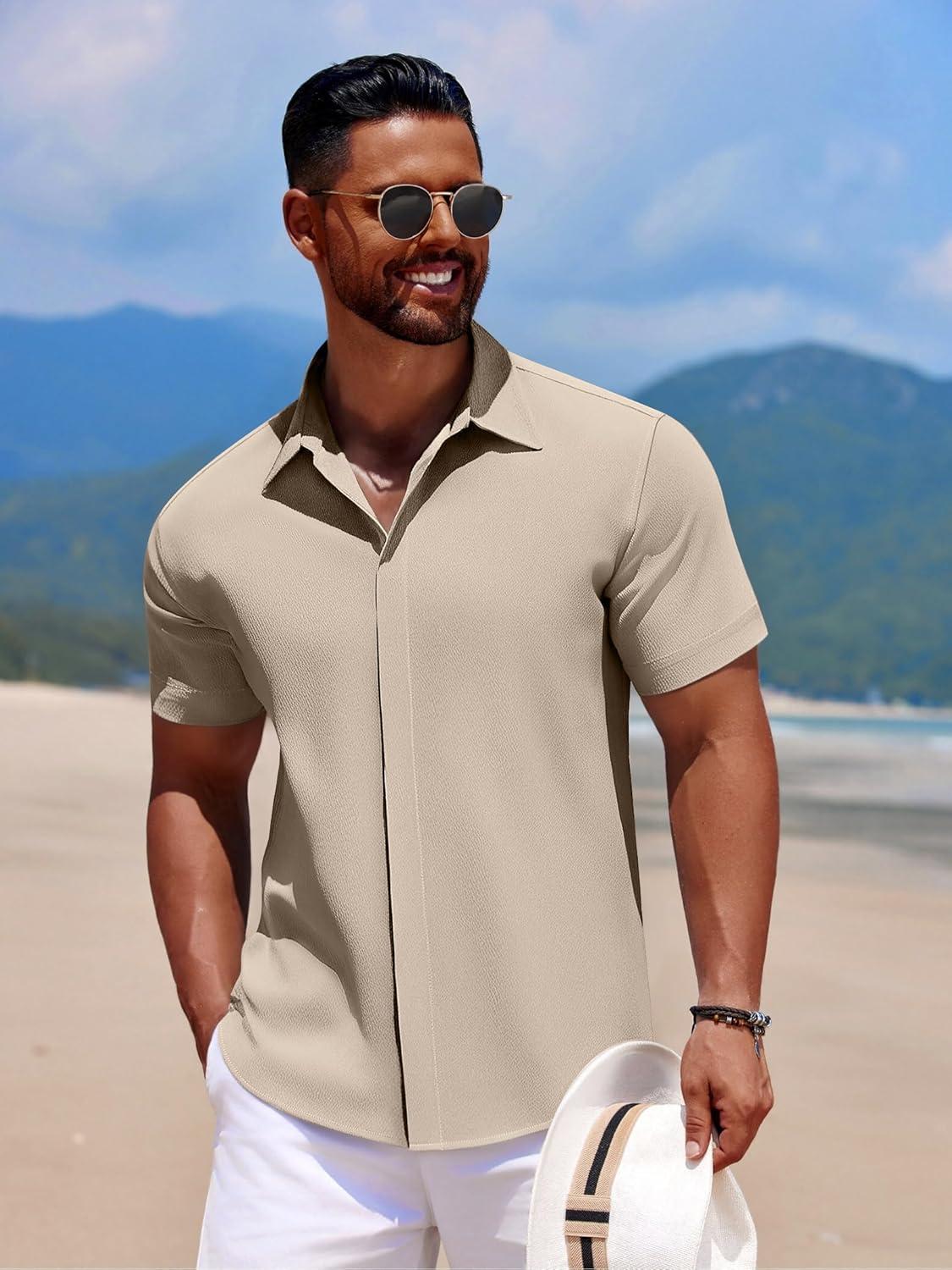 COOFANDY Mens Beach Shirt Short Sleeve Button Down Shirts Casual Cuban Collared Summer Vacation Tropical Shirts(Oyster Gray)
