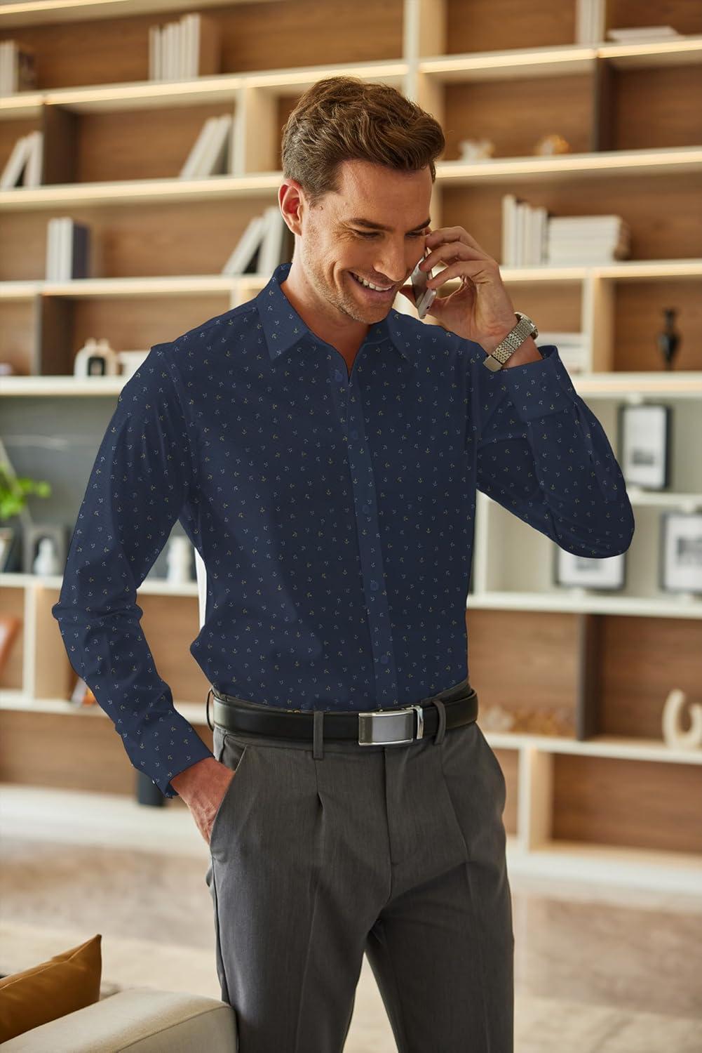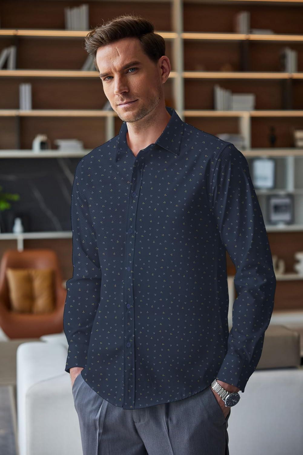 Get up to 70% off on COOFANDY Men’s Business Dress Shirts Wrinkle Free Long Sleeve Regular Fit Dress Shirt Textured Casual Button Down Shirts(Navy Anchor) styles during our end-of-season clearance event.