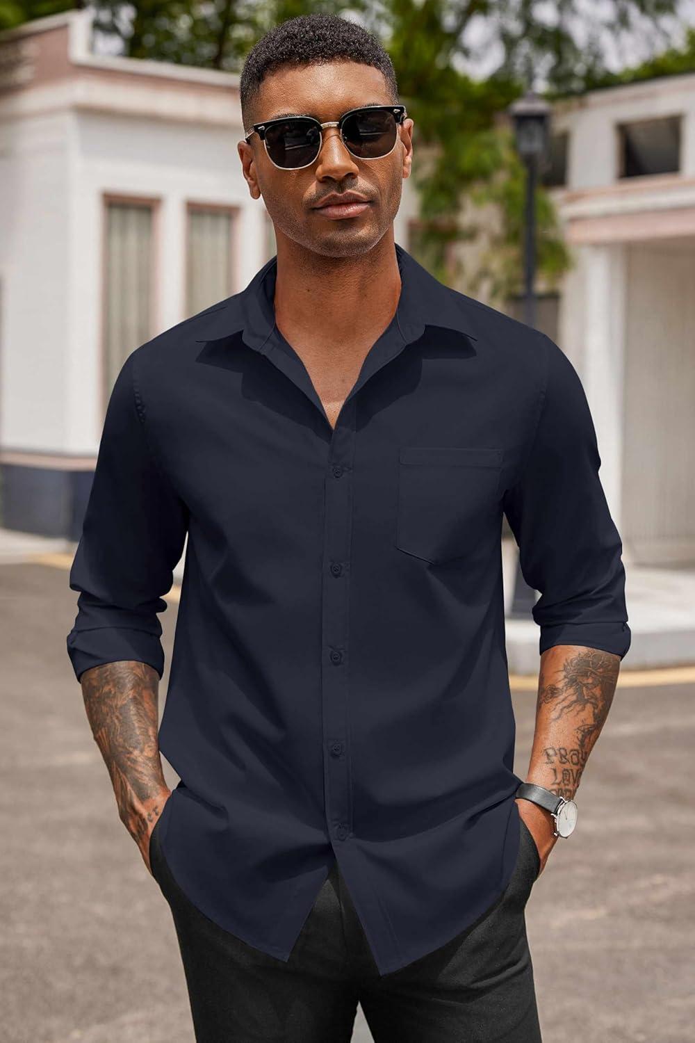 Get up to 70% off on COOFANDY Men’s Button Down Long Sleeve Shirt Casual Untucked Dress Shirt Regular Fit Wedding Shirts(Black Iris) styles during our end-of-season clearance event.