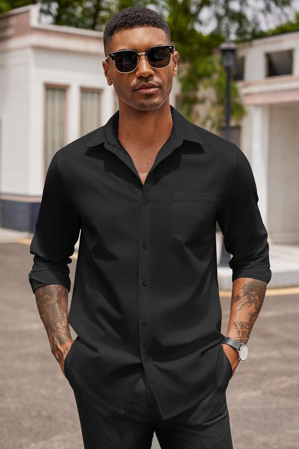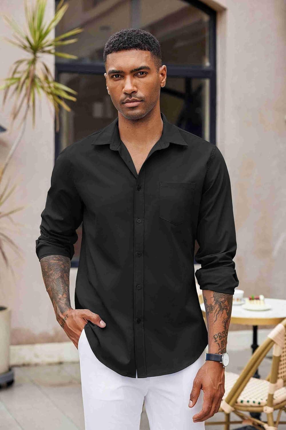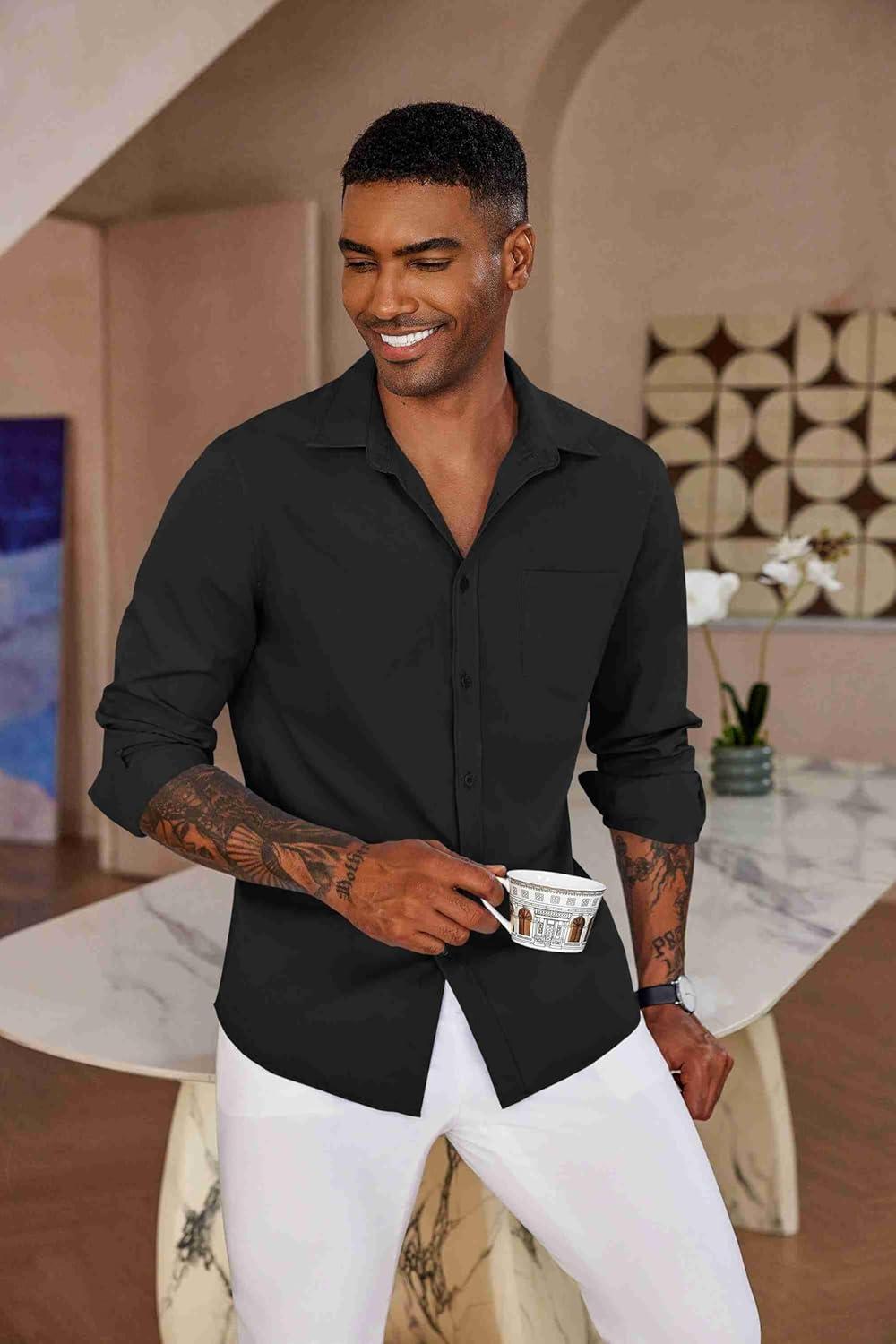 COOFANDY Men’s Button Down Long Sleeve Shirt Casual Untucked Dress Shirt Regular Fit Wedding Shirts(Black Onyx)