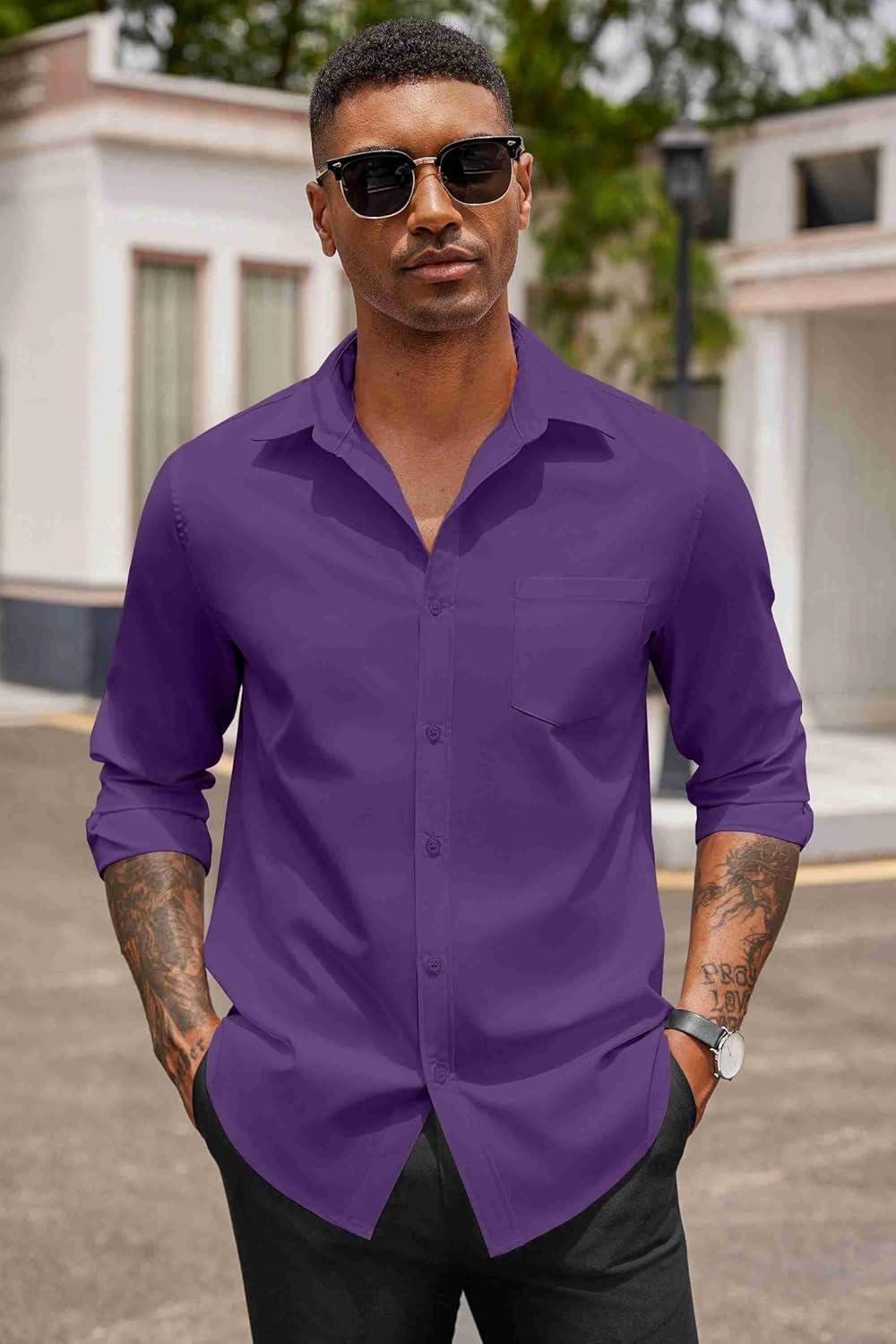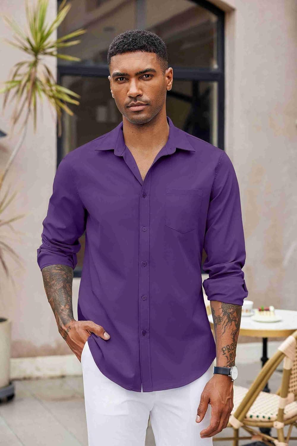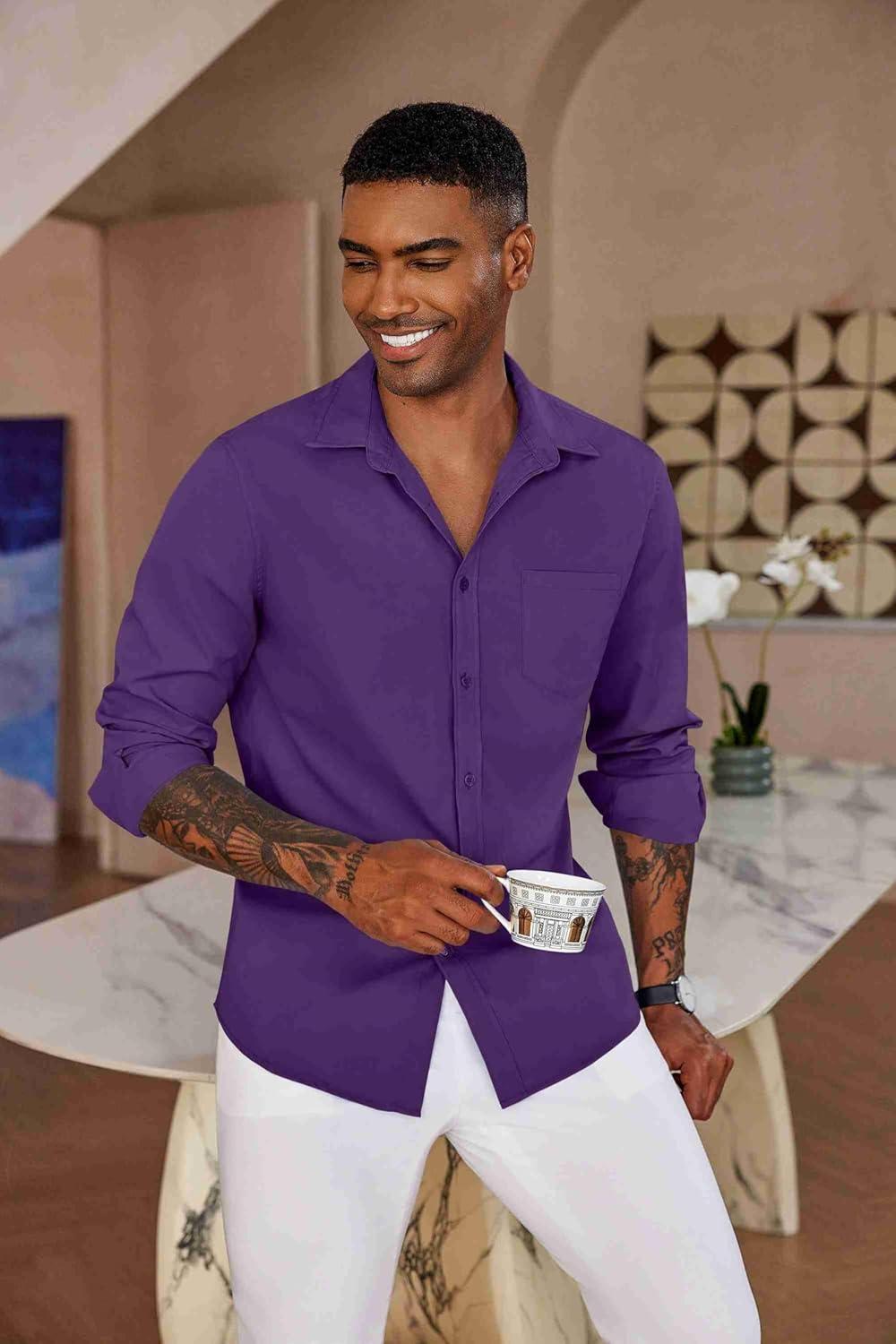 COOFANDY Men’s Button Down Long Sleeve Shirt Casual Untucked Dress Shirt Regular Fit Wedding Shirts(Imperial Purple)