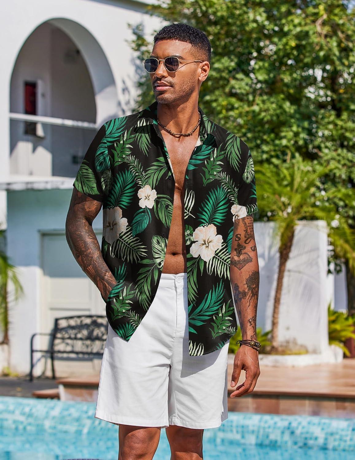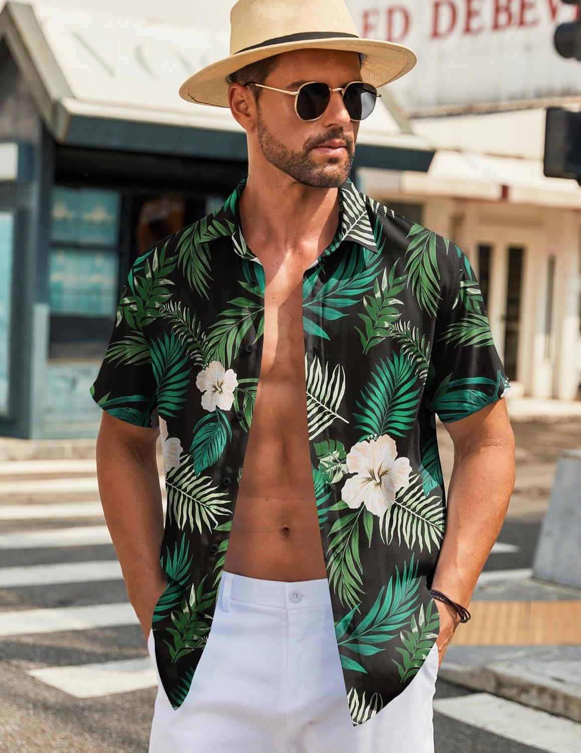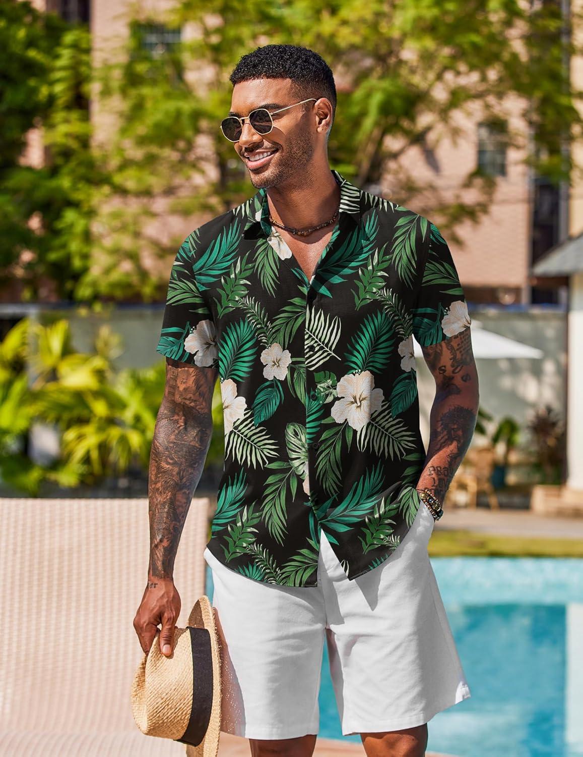 COOFANDY Mens Button Down Shirts Short Sleeve Casual Shirt Summer Beach Wedding Shirts(Black – Floral)