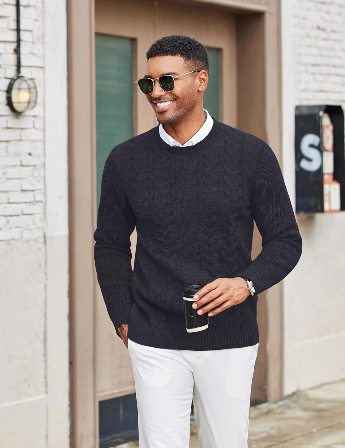 COOFANDY Mens Cable Knit Sweater Casual Long Leeve Crewneck Pullover Sweaters Twist Textured Fisherman Sweater(Dark Grey)