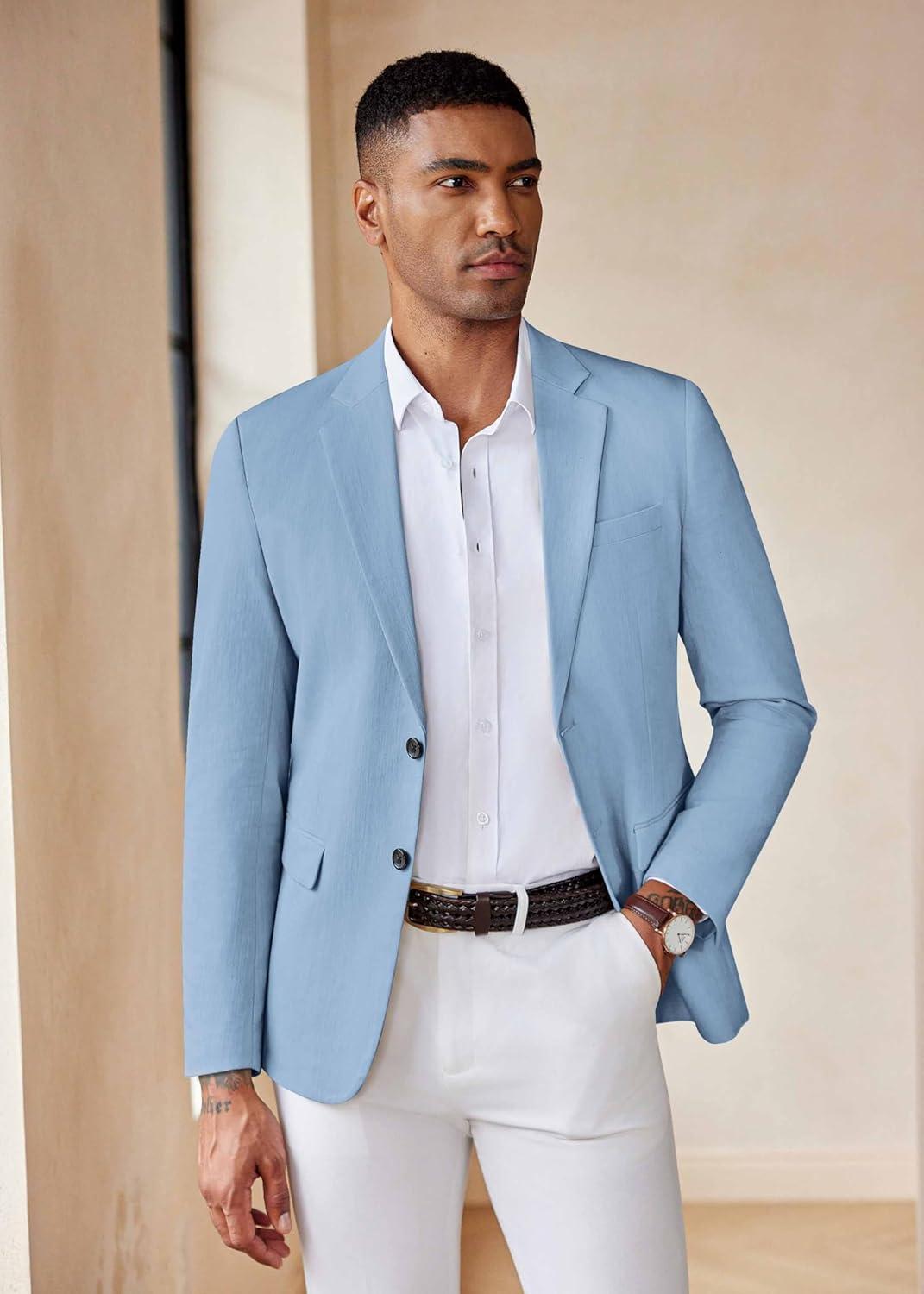 COOFANDY Men’s Casual Blazer Lightweight Slim Fit Suit Jacket Two Button Cotton Sport Coats(Light Blue)