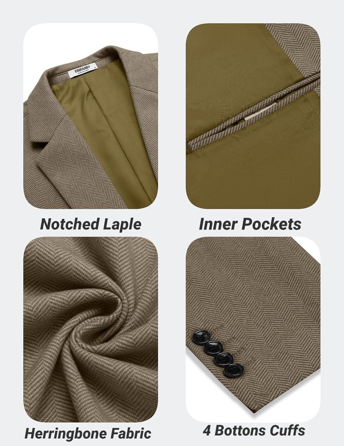 imageCOOFANDY Mens Casual Blazer One Button Sports Coat Tweed Herringbone Suit Jackets Formal Dress BlazersBlack