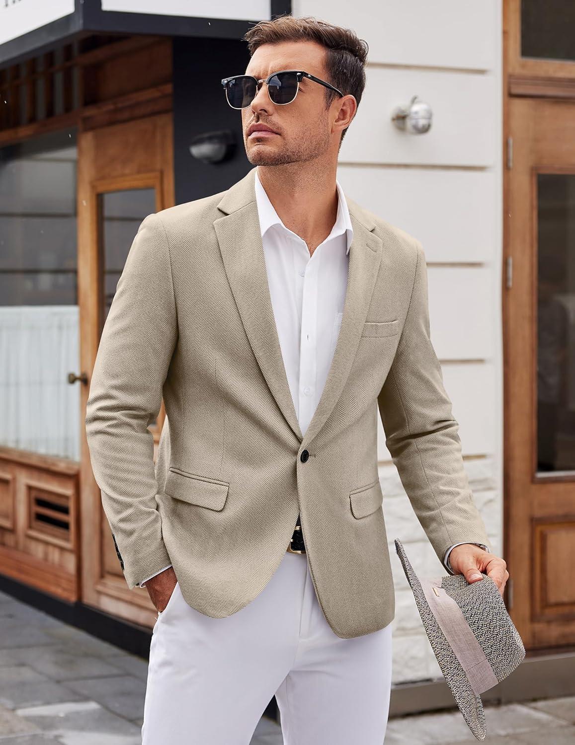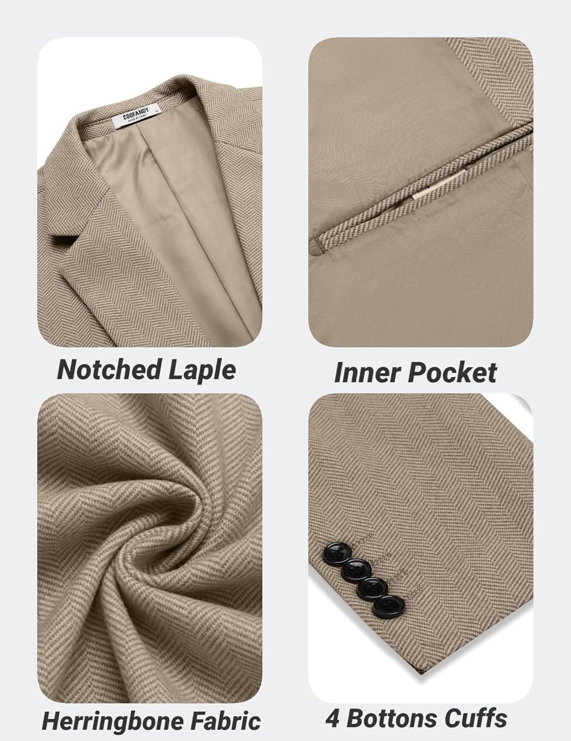 COOFANDY Men’s Casual Blazer One Button Sports Coat Tweed Herringbone Suit Jackets Formal Dress Blazers(Khaki)