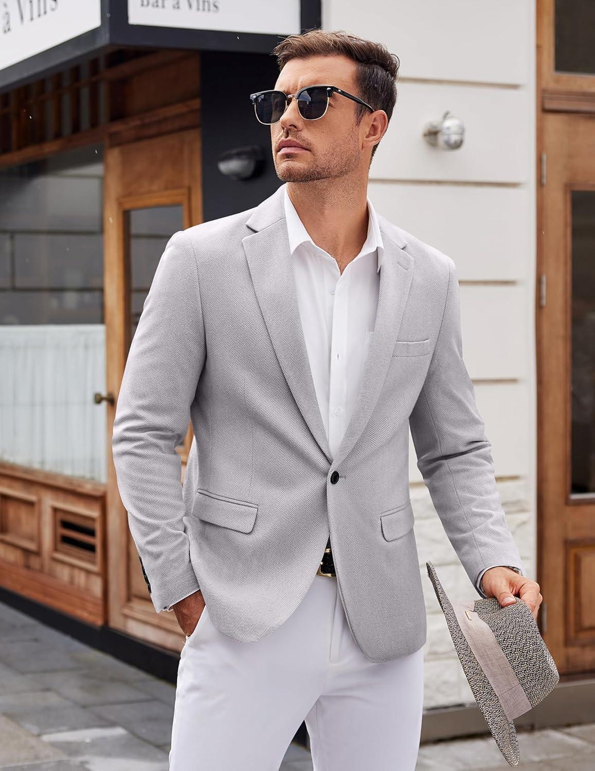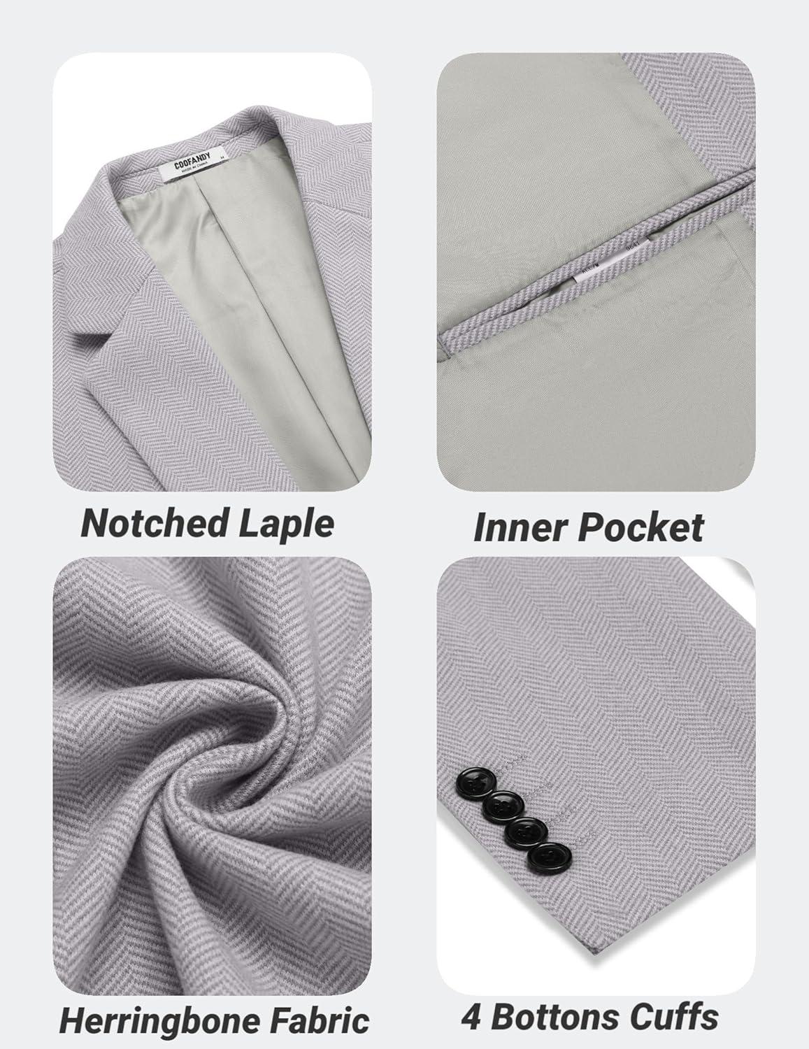 COOFANDY Men’s Casual Blazer One Button Sports Coat Tweed Herringbone Suit Jackets Formal Dress Blazers(Light Grey)