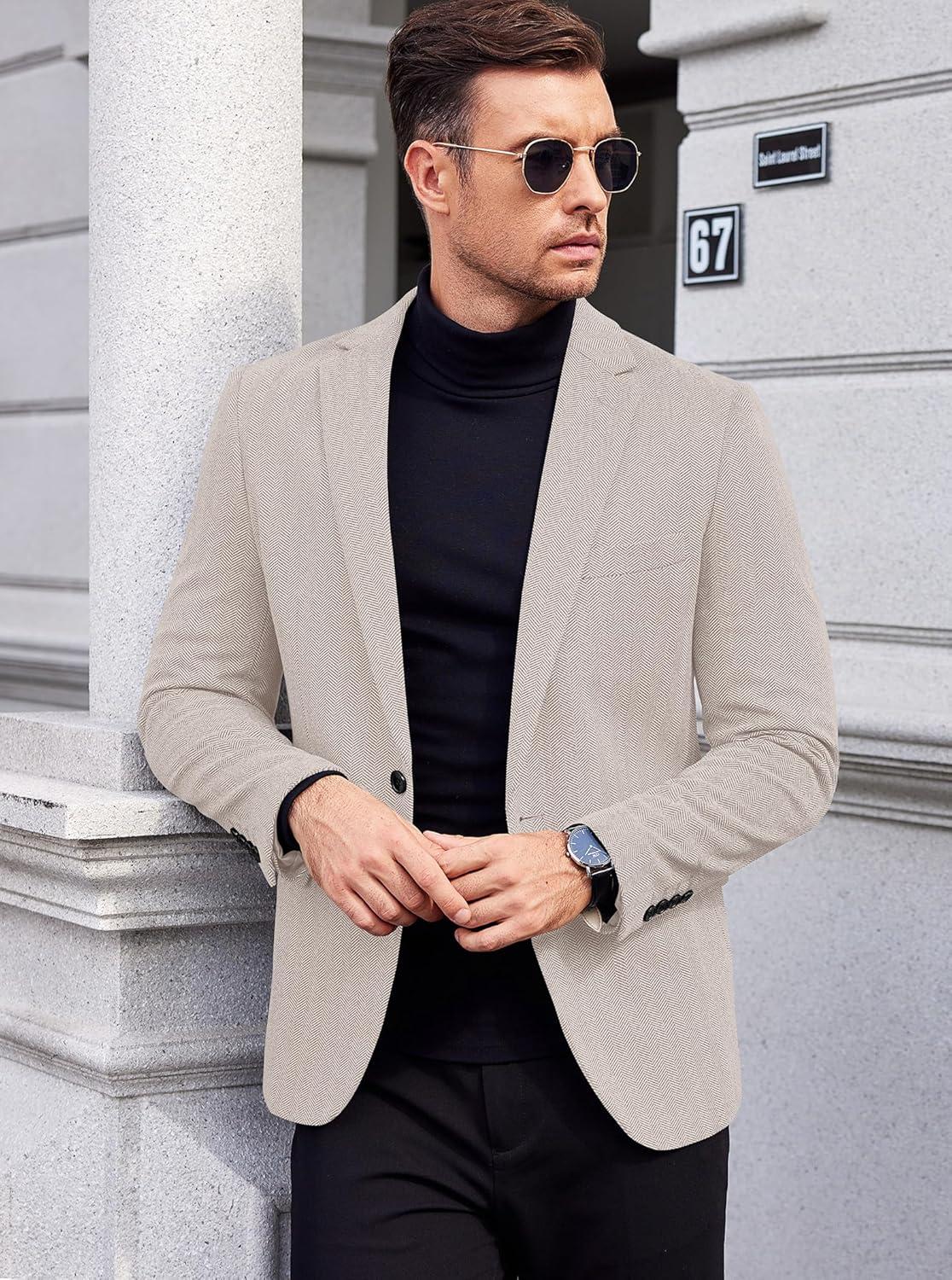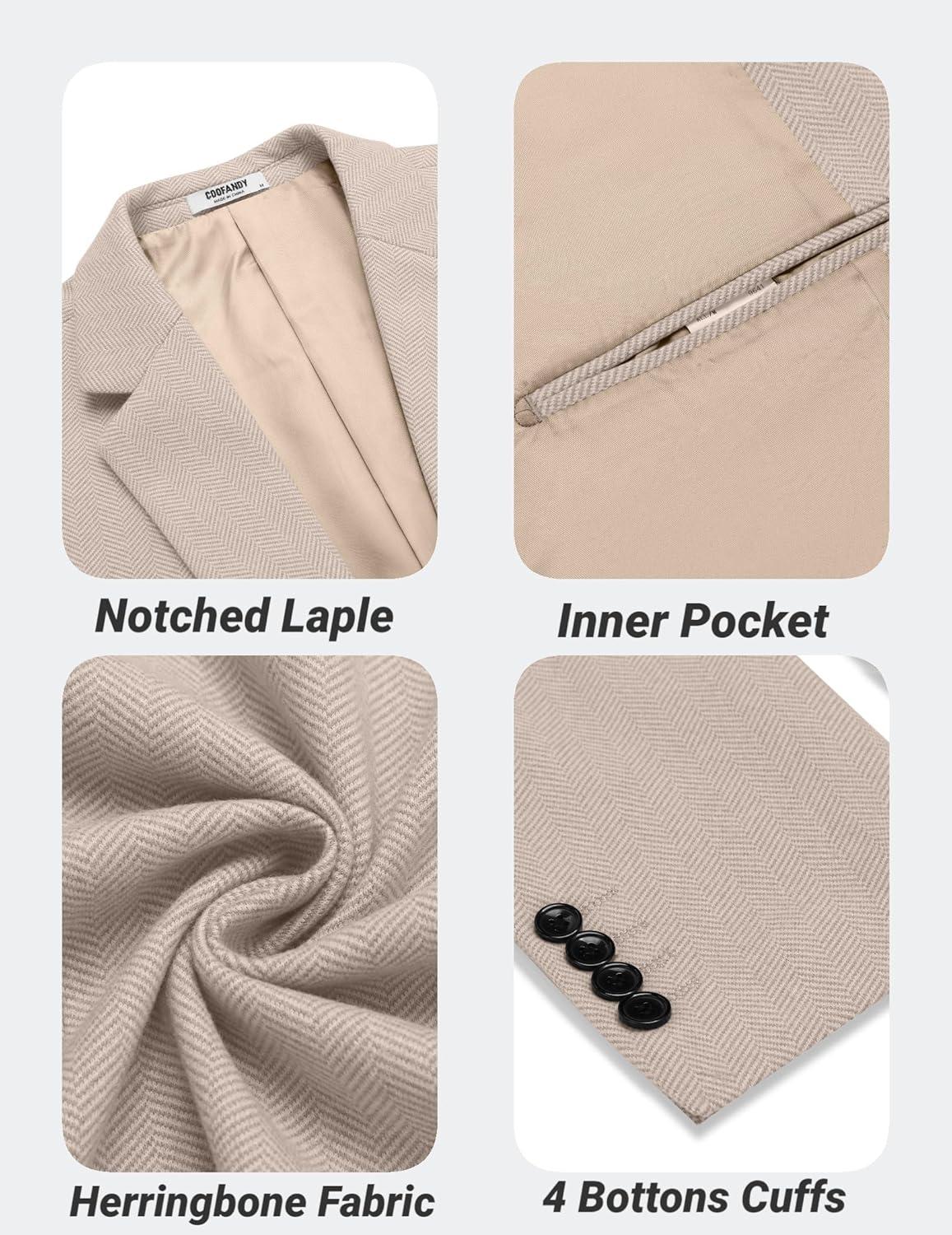 COOFANDY Men’s Casual Blazer One Button Sports Coat Tweed Herringbone Suit Jackets Formal Dress Blazers(Light Khaki)