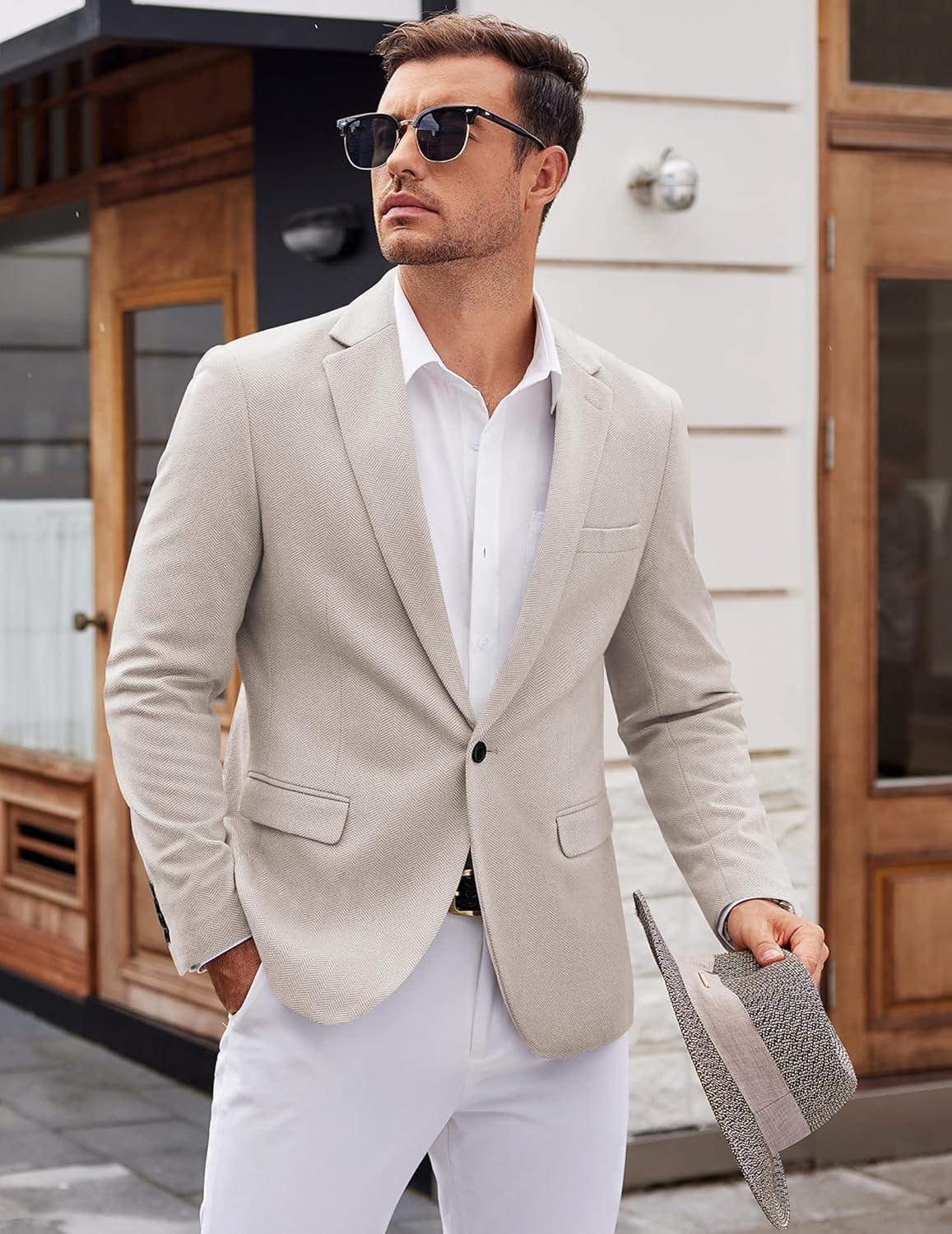 COOFANDY Men’s Casual Blazer One Button Sports Coat Tweed Herringbone Suit Jackets Formal Dress Blazers(Light Grey)