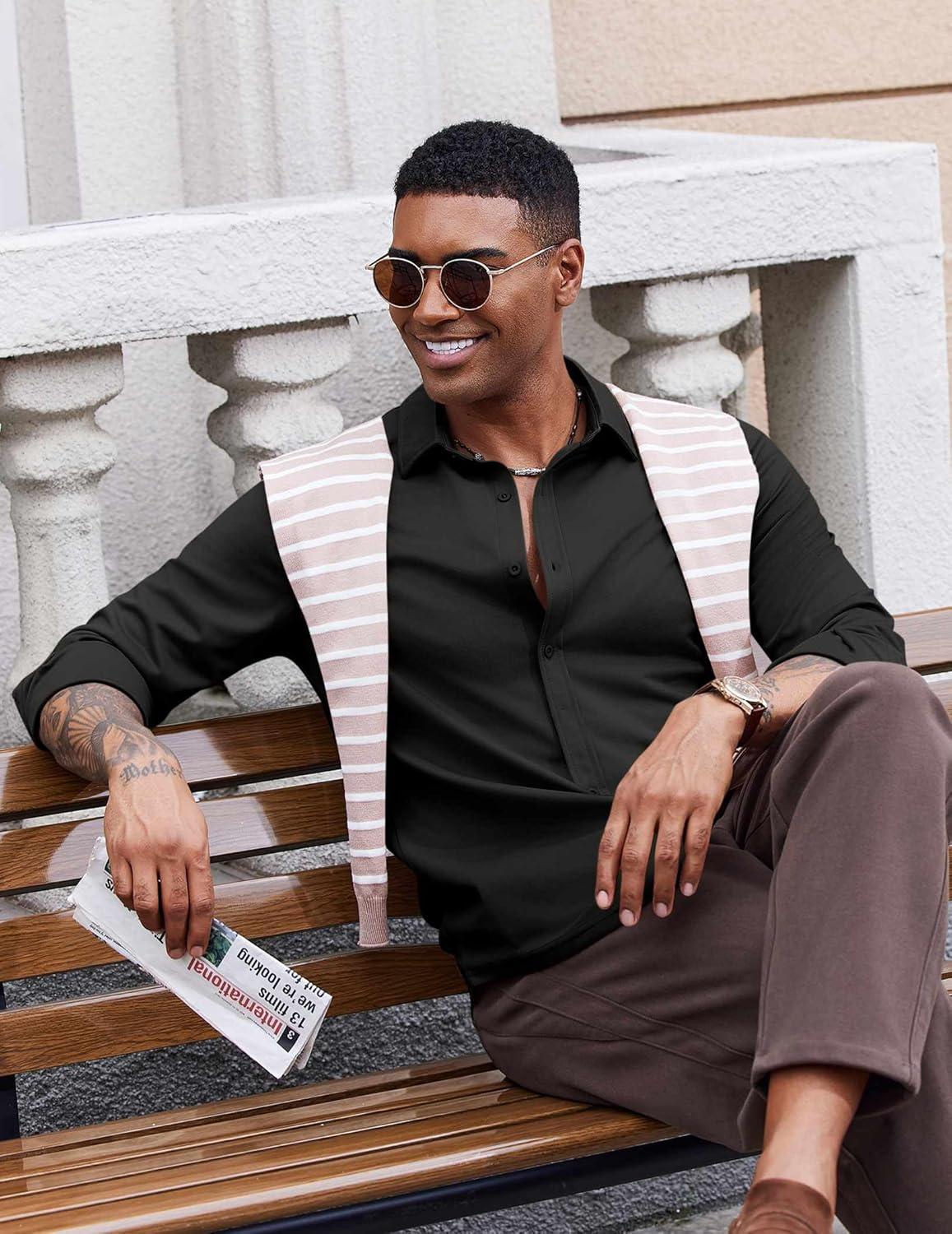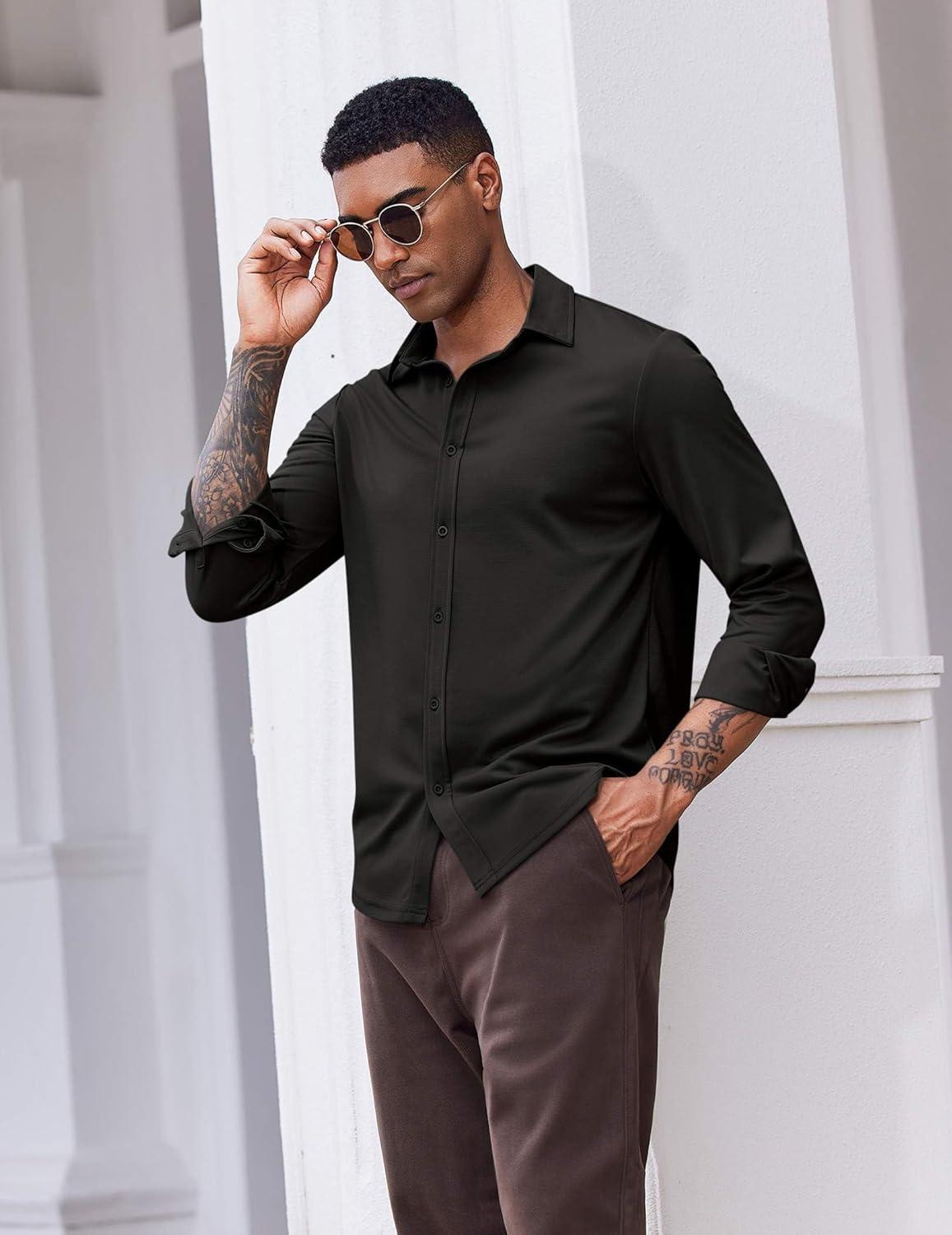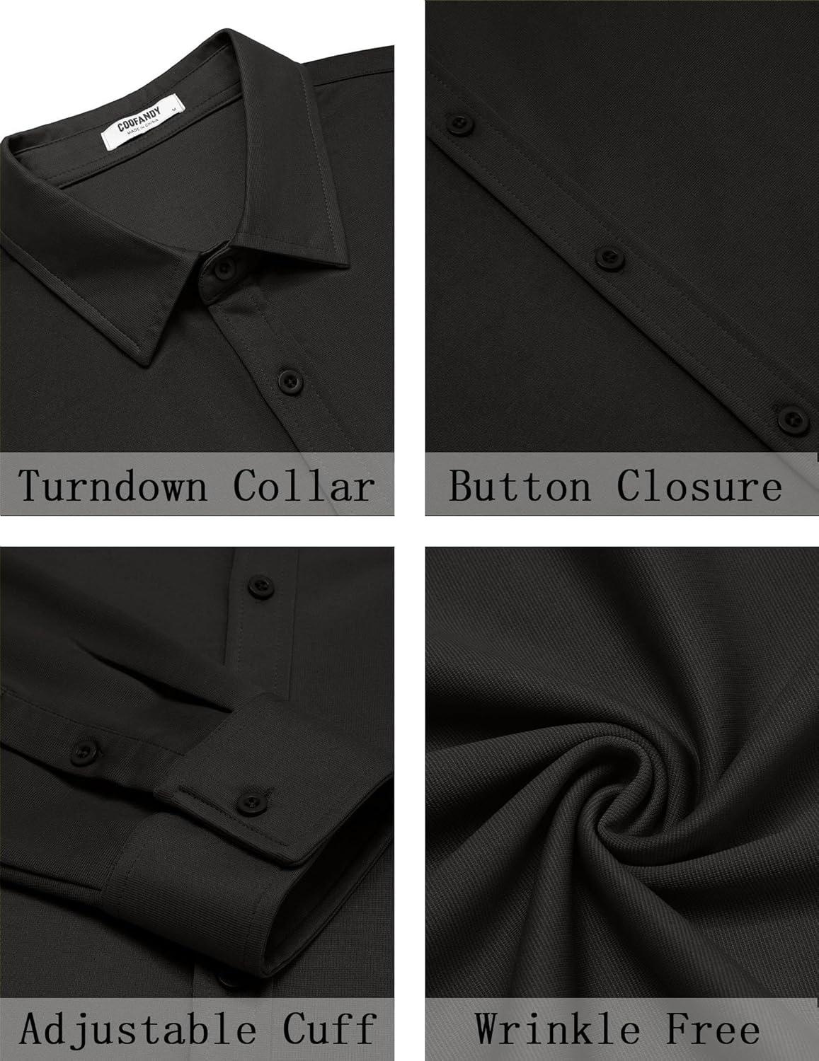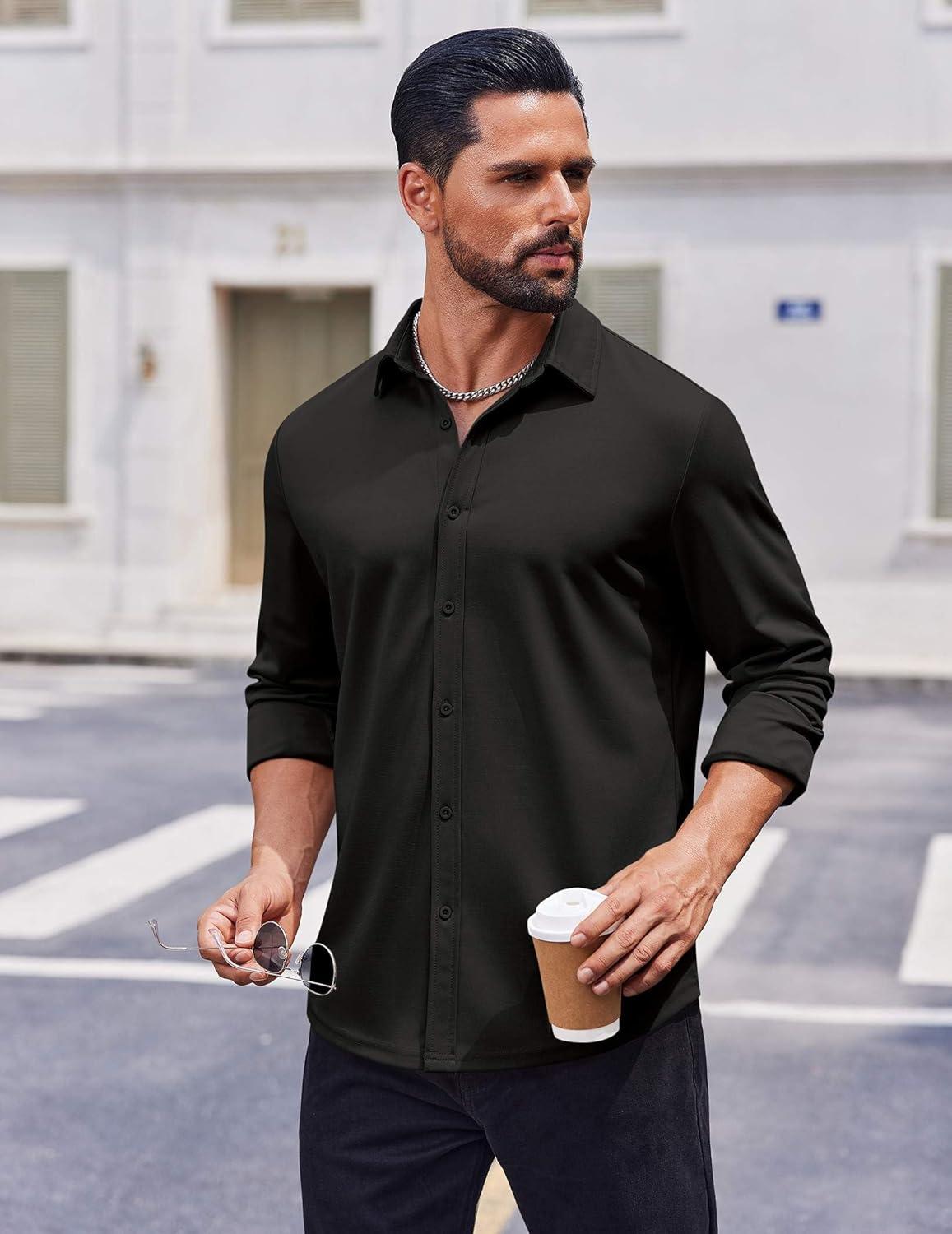 COOFANDY Mens Casual Button Down Shirt Long Sleeve Wrinkle Free Shirts Stretch Dress Shirt(Black)