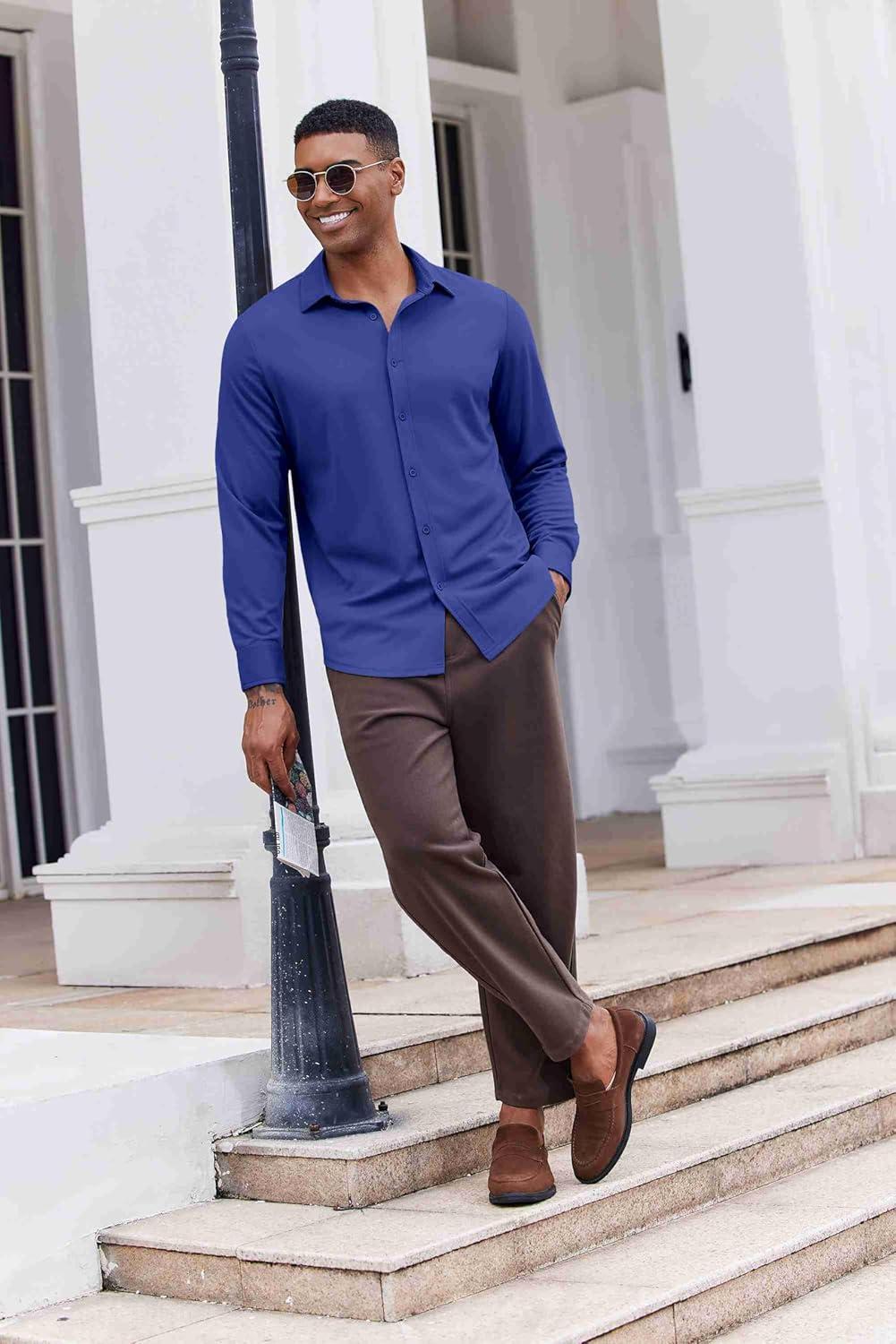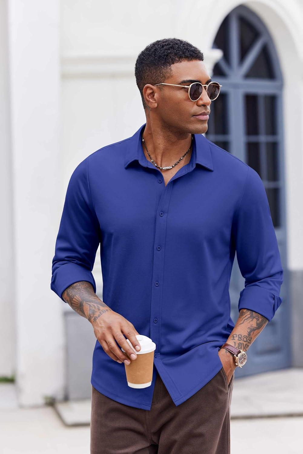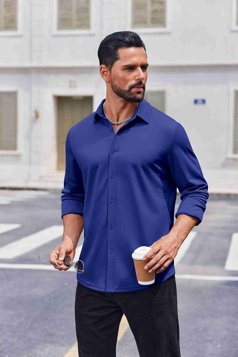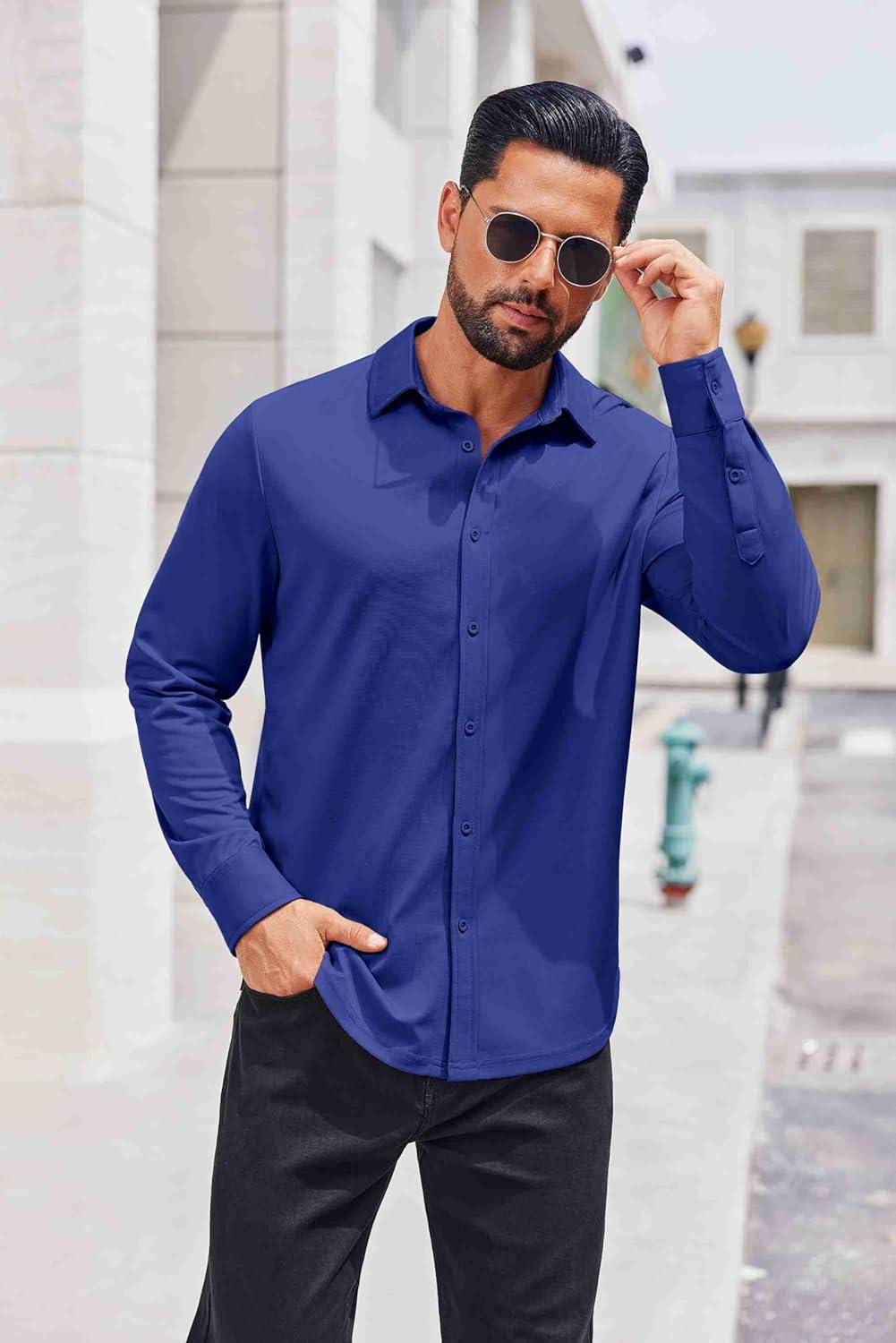 COOFANDY Mens Casual Button Down Shirt Long Sleeve Wrinkle Free Shirts Stretch Dress Shirt(Royal Blue)