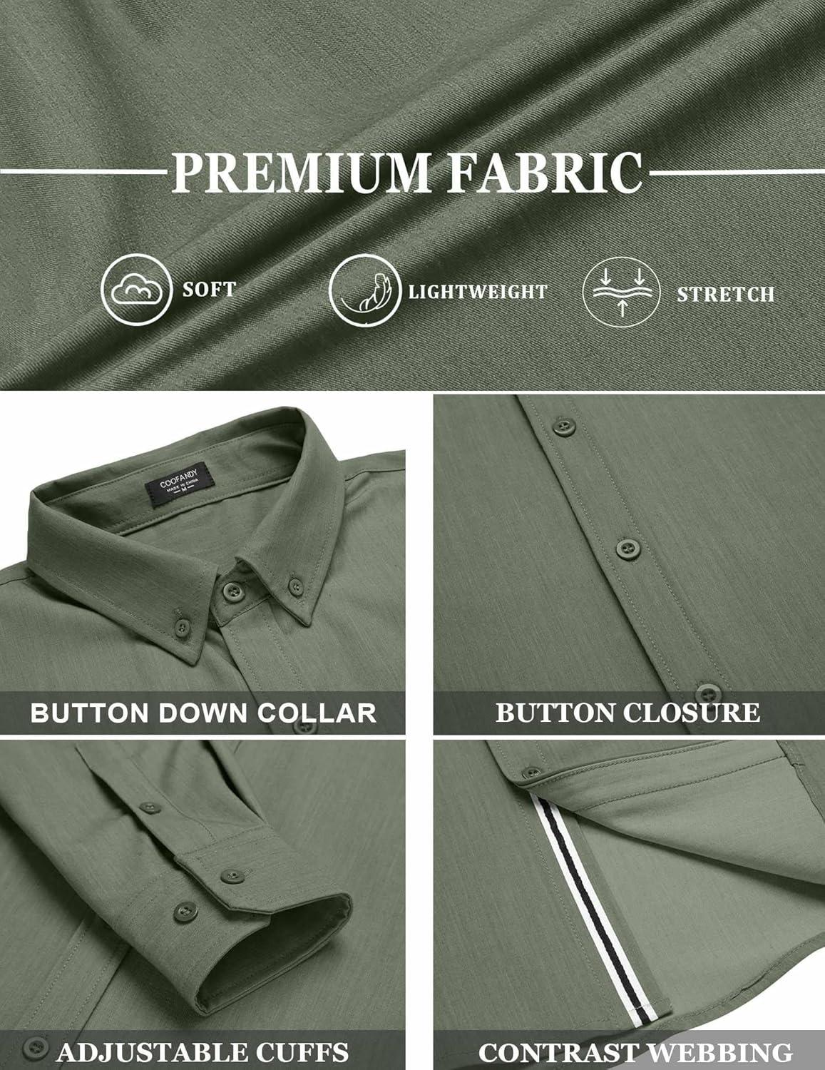COOFANDY Mens Casual Button Down Shirt Untucked Long Sleeve Stretch Denim Dress Shirt(Army Green)