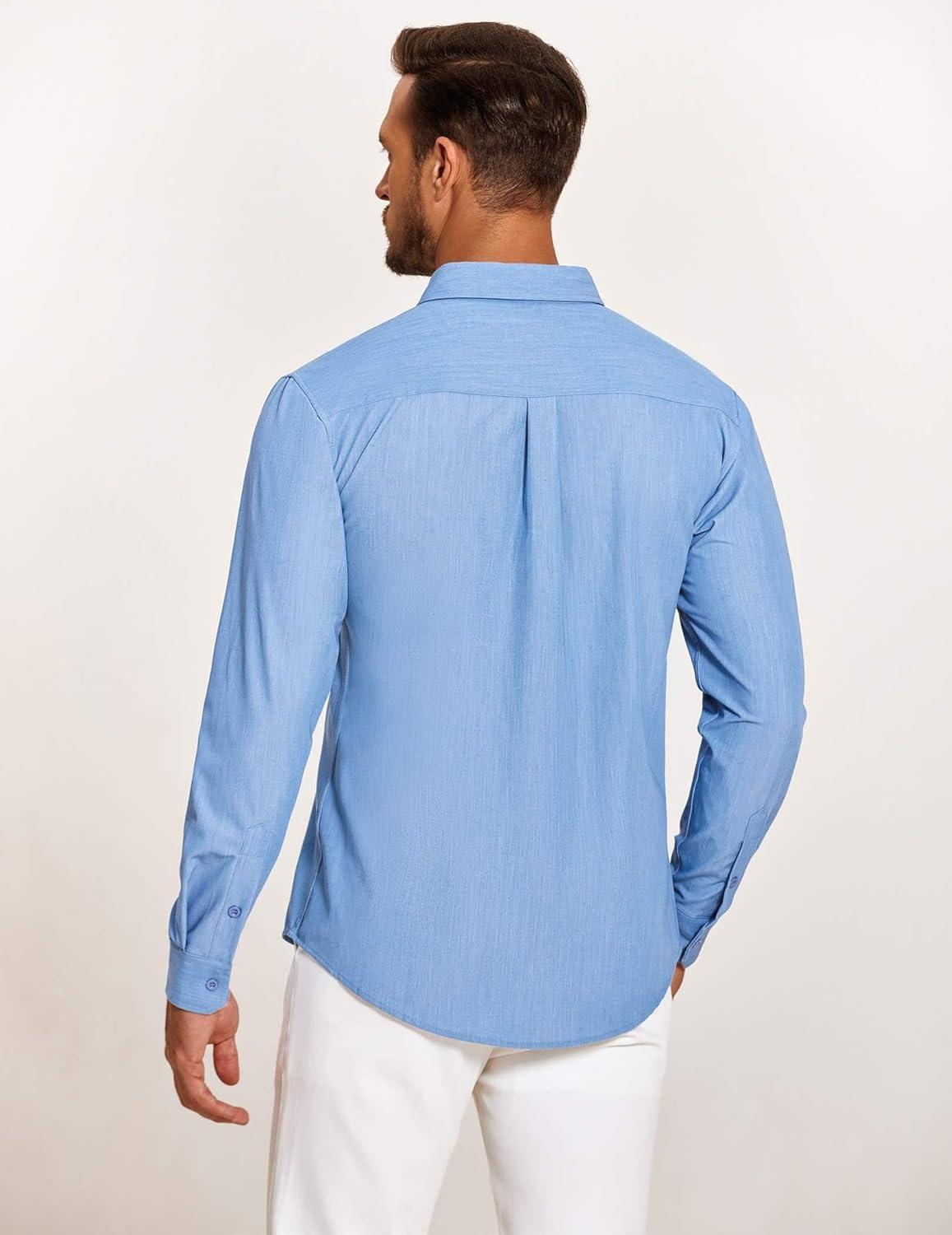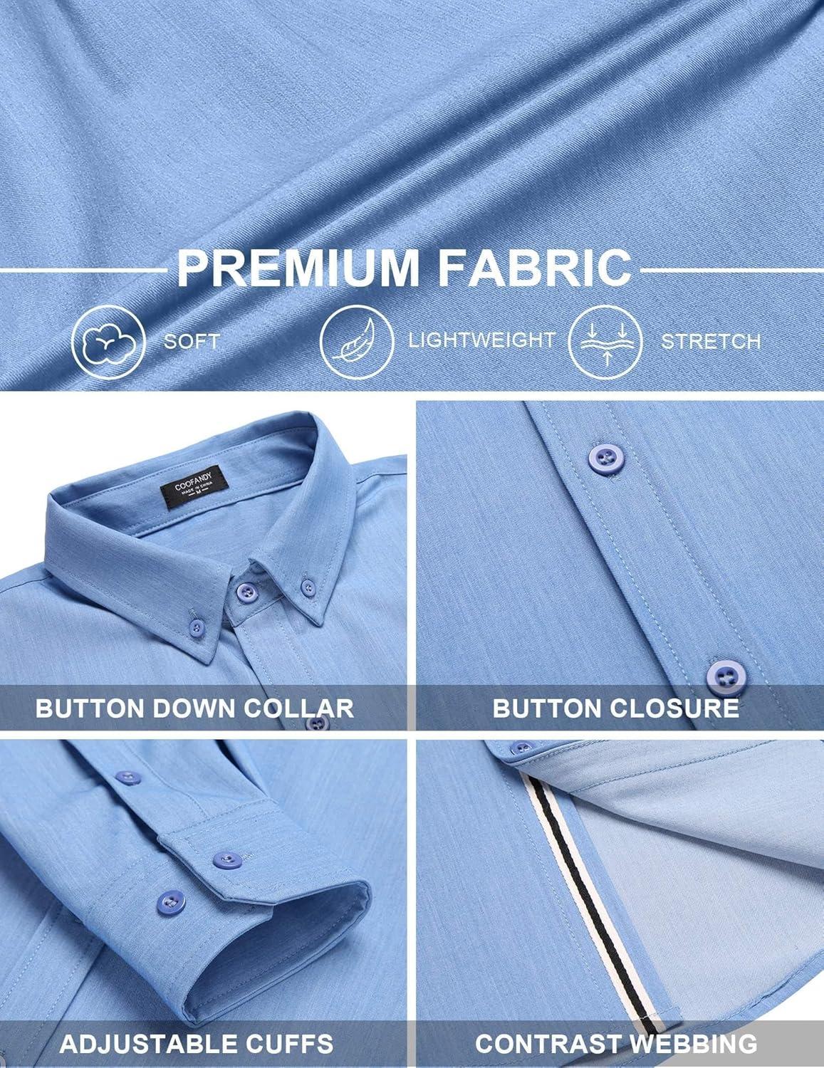COOFANDY Mens Casual Button Down Shirt Untucked Long Sleeve Stretch Denim Dress Shirt(Light Blue)