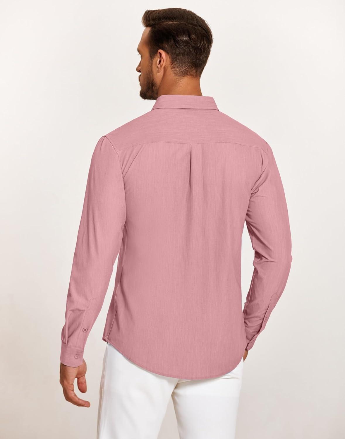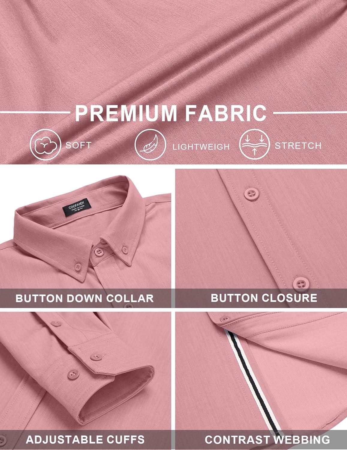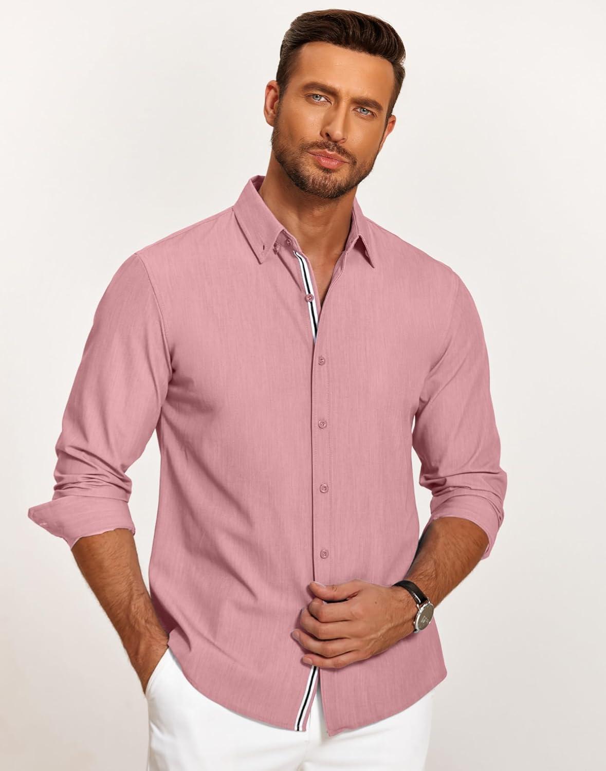 COOFANDY Mens Casual Button Down Shirt Untucked Long Sleeve Stretch Denim Dress Shirt(Pink)