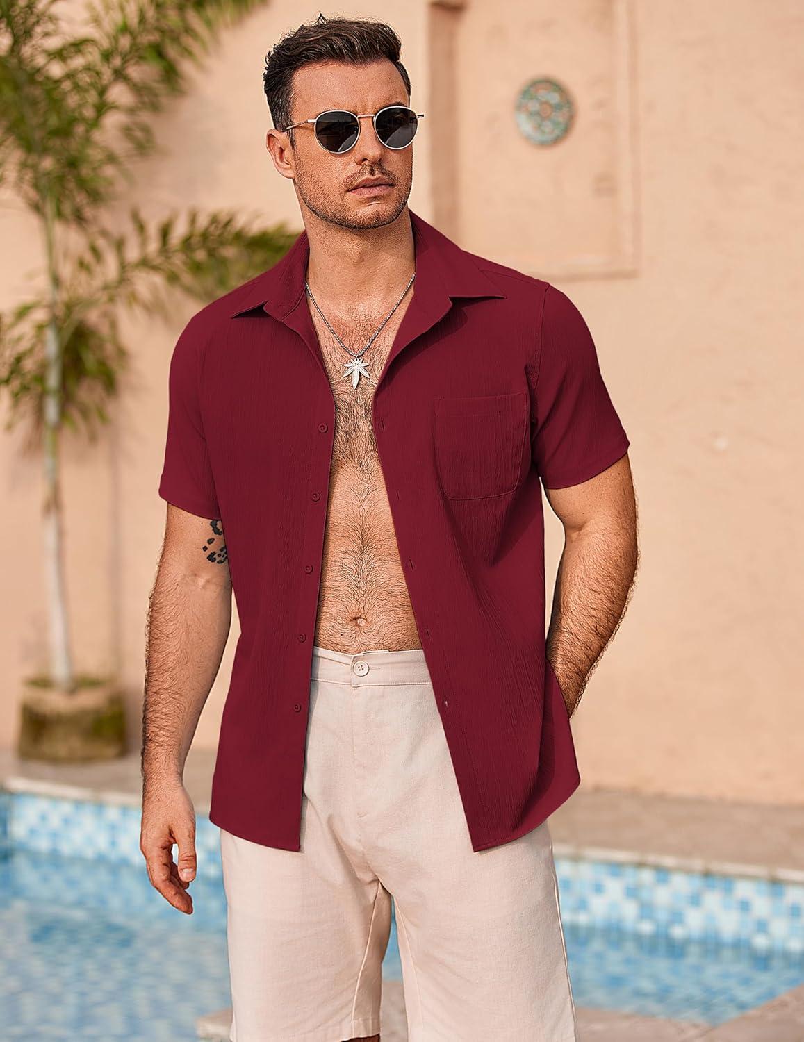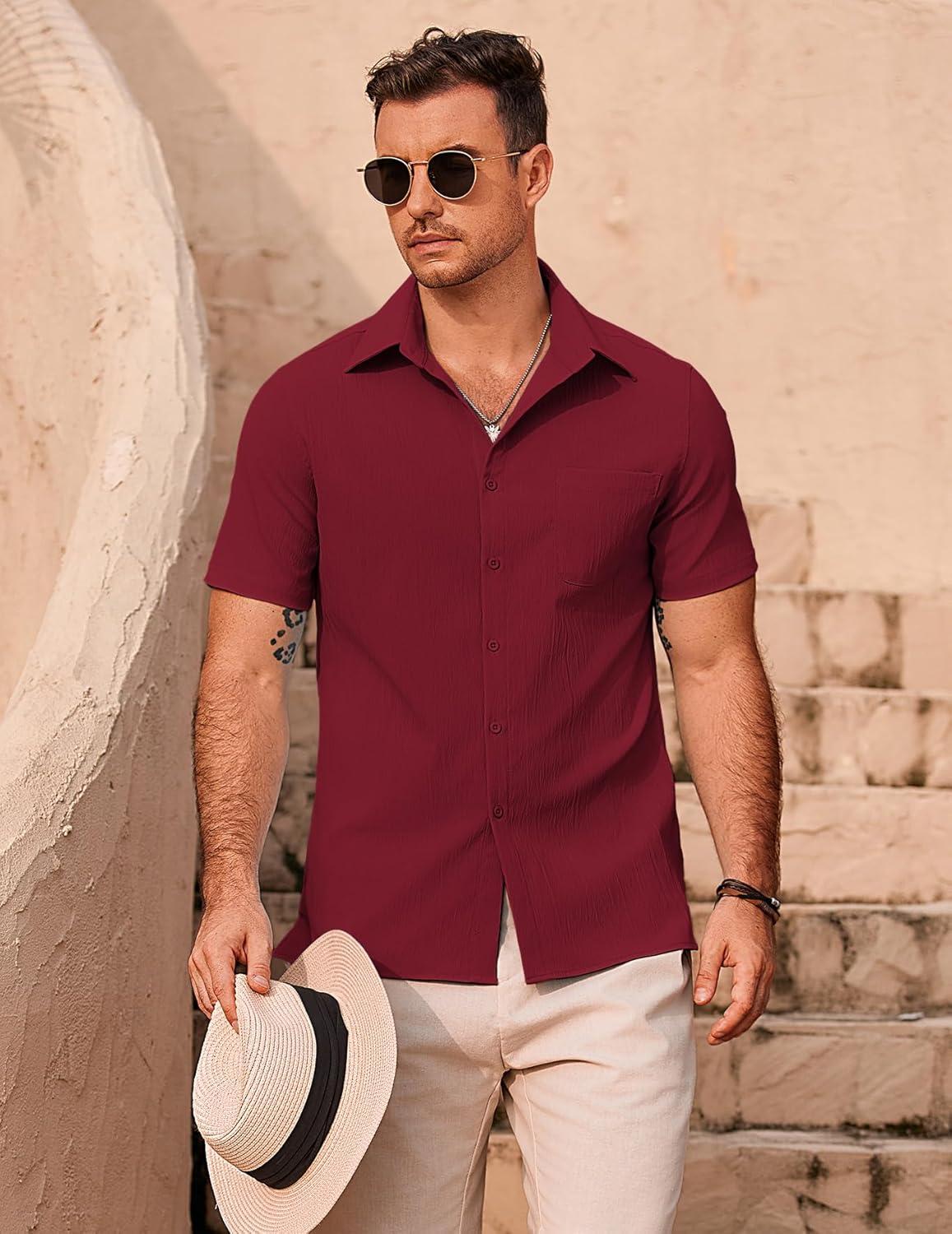 Save big on COOFANDY Mens Casual Button Down Shirts Short Sleeve Summer Beach Vacation Shirts(Dark Red) and accessories during our BOGO sale. Buy one, get one 50% off!
